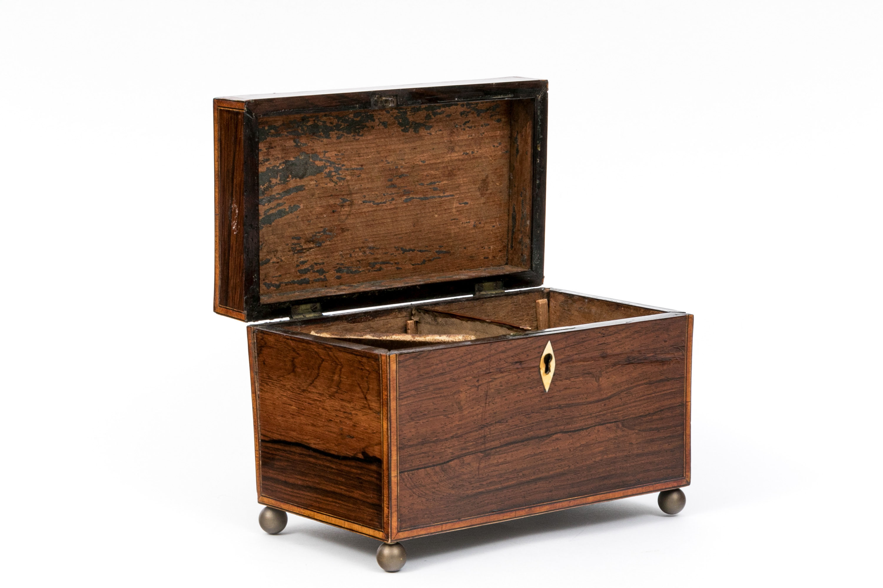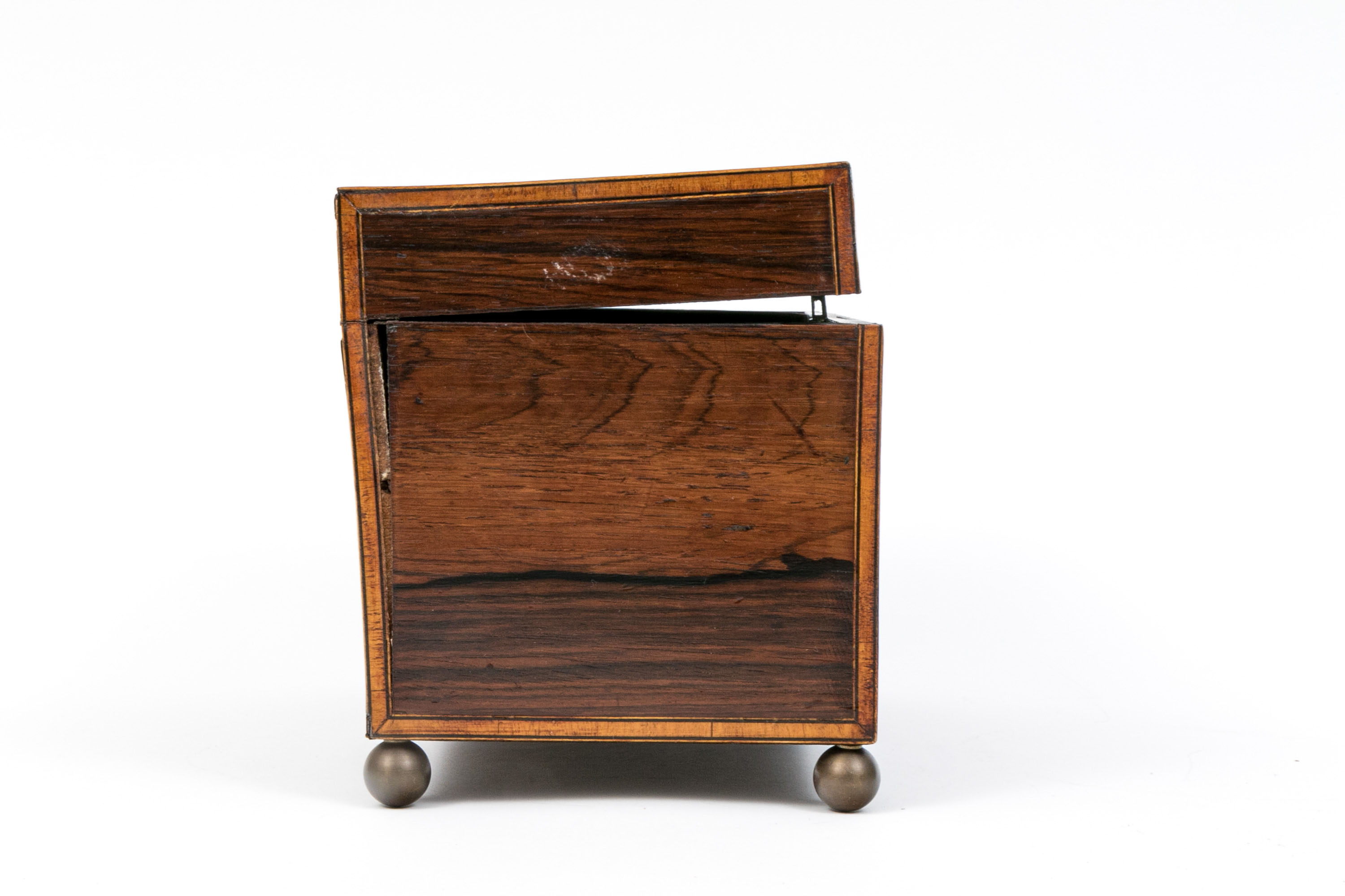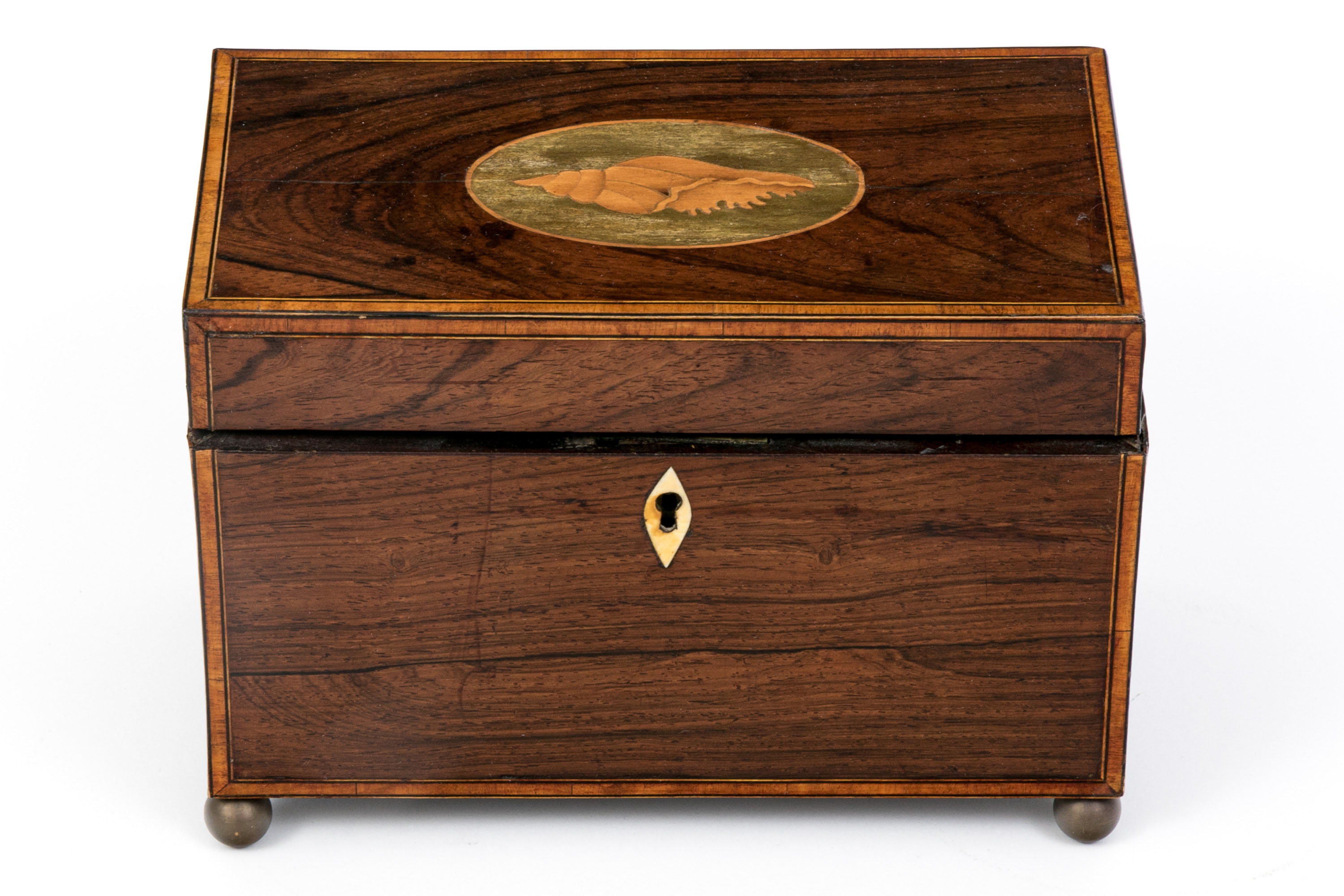 Raised on four ball form feet with satinwood banded trim and a central oval inlaid shell motif.