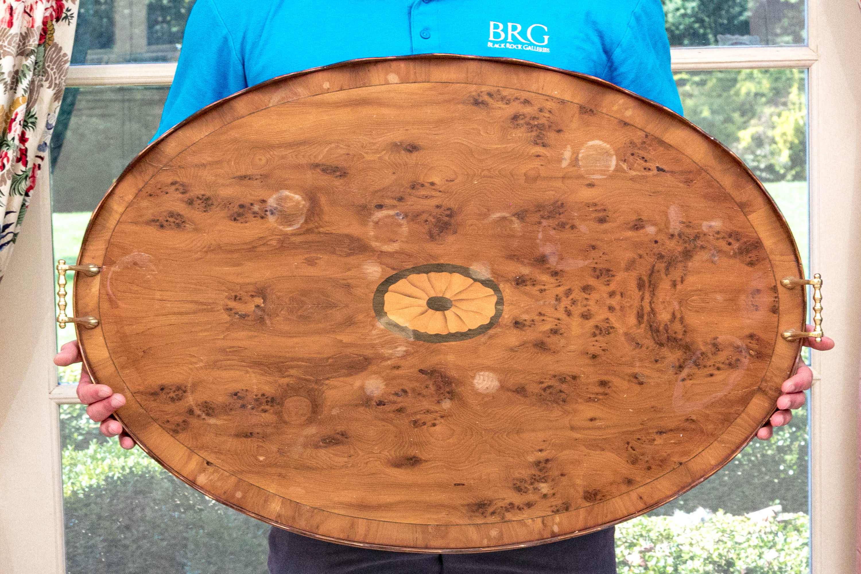 Antique Marquetry And Satinwood Banded Twin Handled Oval Tray #290292. Black Rock Galleries provides high end estate liquidation services through online estate auctions and a 50,000 sq ft designer showroom. estate liquidator, estate sale, online auction, antiques, fine art, liquidation, clean outs, auction, consignment, interior design, fine jewelry, collectibles, appraisals, estate appraisals, estate services, decor, furniture, furniture consignment, antique center, consignment shop. We offer appraisal services and specialize in fine art, jewelry, antiques and decorative arts. Sell with us. Black Rock Galleries is the tri-state's largest estate liquidator serving New England and the greater New York City area. We are the trusted source for expert appraisals, auction services, estate sales, and consignments. Black Rock Galleries is the east coast's largest and most trusted estate liquidator, with locations in Connecticut, greater Boston, MA and Raleigh, NC, Fairfield, Southport, Apex, TX. We are the best source for expert appraisals, auction services, estate sales and consignments. We have served thousands of families and estates with compassion, professionalism and expertise. BRG works with attorneys, executors, realtors and families to bring the greatest return on personal and estate property in the current market. Our unique combination of services make us the easy choice to get the job done in a timely and stress-free manner. We are with you from the initial consultation to the final clean out. Our house-built online auction software platform offers clients a dynamic approach to liquidating their personal property. This venue is most successful in bringing the best return with the least amount of disruption for our clients. See our services page for a complete description of this offering. Antique Marquetry And Satinwood Banded Twin Handled Oval Tray #290292