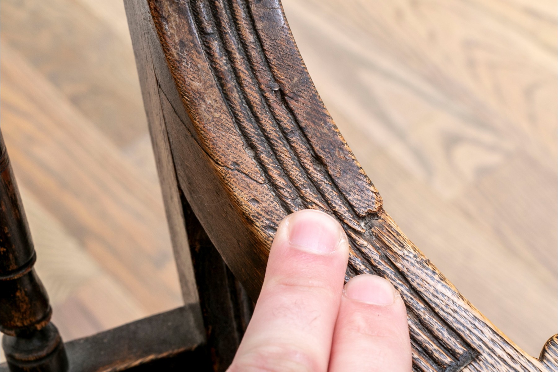 Condition: Previous repairs apparent to both arms. Wear throughout frame from age and use but overall very sturdy and well crafted.