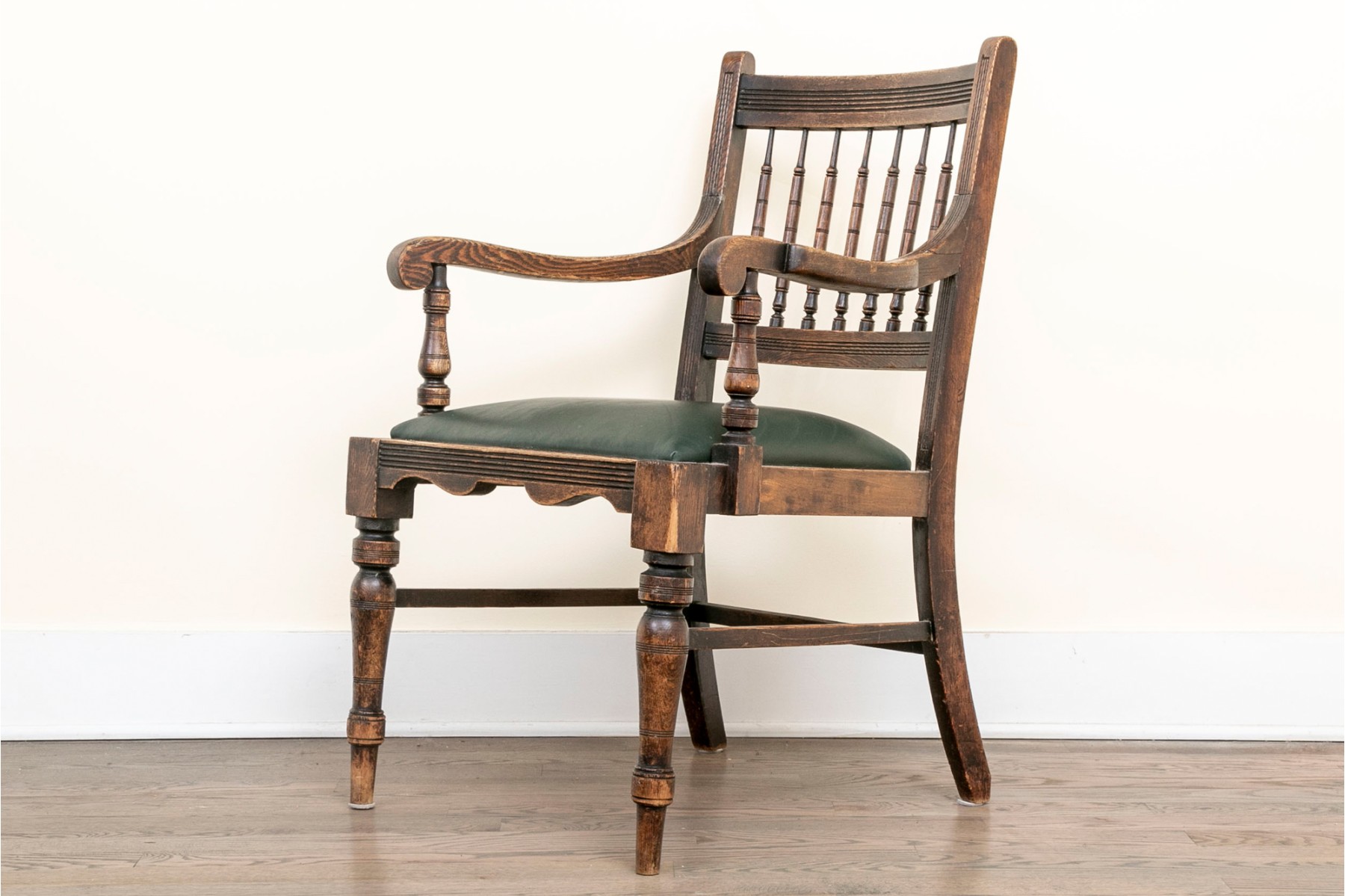 Antique Oak Spindle Back Chair Leather Upholstered #296256. Black Rock Galleries provides high end estate liquidation services through online estate auctions and a 50,000 sq ft designer showroom. estate liquidator, estate sale, online auction, antiques, fine art, liquidation, clean outs, auction, consignment, interior design, fine jewelry, collectibles, appraisals, estate appraisals, estate services, decor, furniture, furniture consignment, antique center, consignment shop. We offer appraisal services and specialize in fine art, jewelry, antiques and decorative arts. Sell with us. Black Rock Galleries is the tri-state's largest estate liquidator serving New England and the greater New York City area. We are the trusted source for expert appraisals, auction services, estate sales, and consignments. Black Rock Galleries is the east coast's largest and most trusted estate liquidator, with locations in Connecticut, greater Boston, MA and Raleigh, NC, Fairfield, Southport, Apex, TX. We are the best source for expert appraisals, auction services, estate sales and consignments. We have served thousands of families and estates with compassion, professionalism and expertise. BRG works with attorneys, executors, realtors and families to bring the greatest return on personal and estate property in the current market. Our unique combination of services make us the easy choice to get the job done in a timely and stress-free manner. We are with you from the initial consultation to the final clean out. Our house-built online auction software platform offers clients a dynamic approach to liquidating their personal property. This venue is most successful in bringing the best return with the least amount of disruption for our clients. See our services page for a complete description of this offering. Antique Oak Spindle Back Chair Leather Upholstered #296256