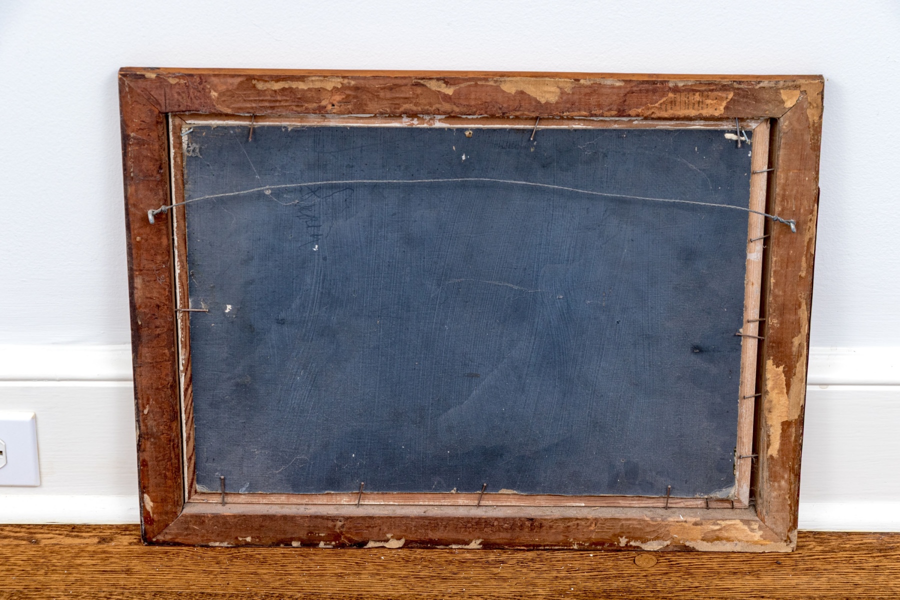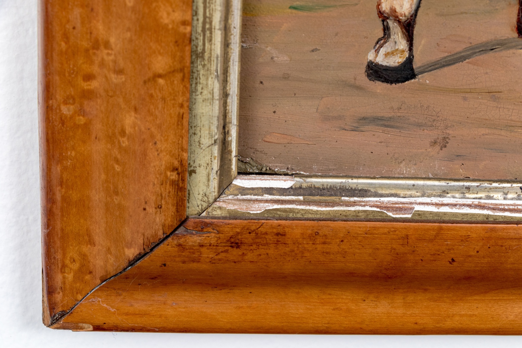 Some spots of wear to the painting, mainly wear to the board at the lower left but minor. Notable finish wear and gesso loss to the fillet. Overall the artwork presents well.