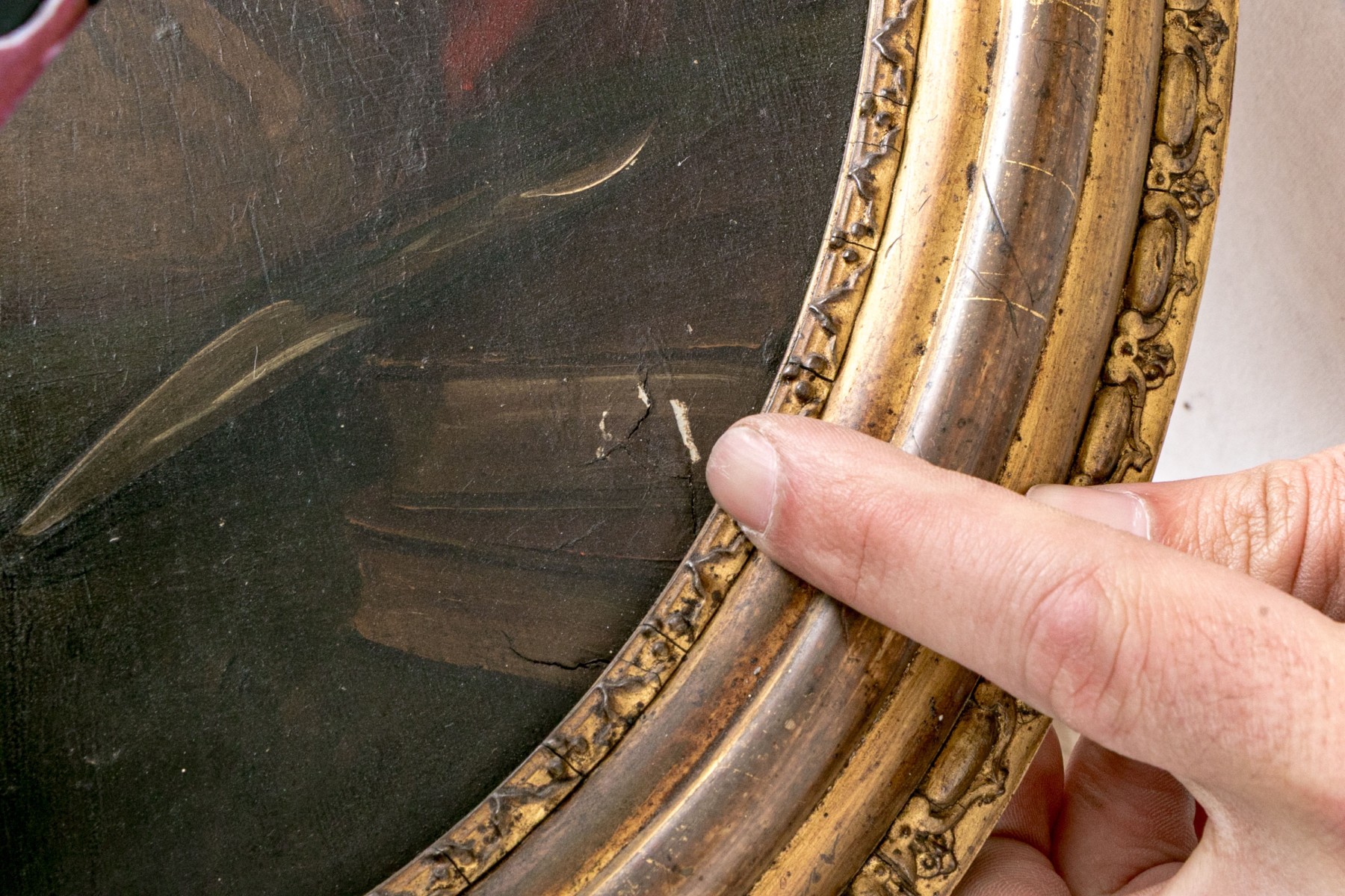 Some spots of damage to the lower right and wear to the frame but overall presents well.