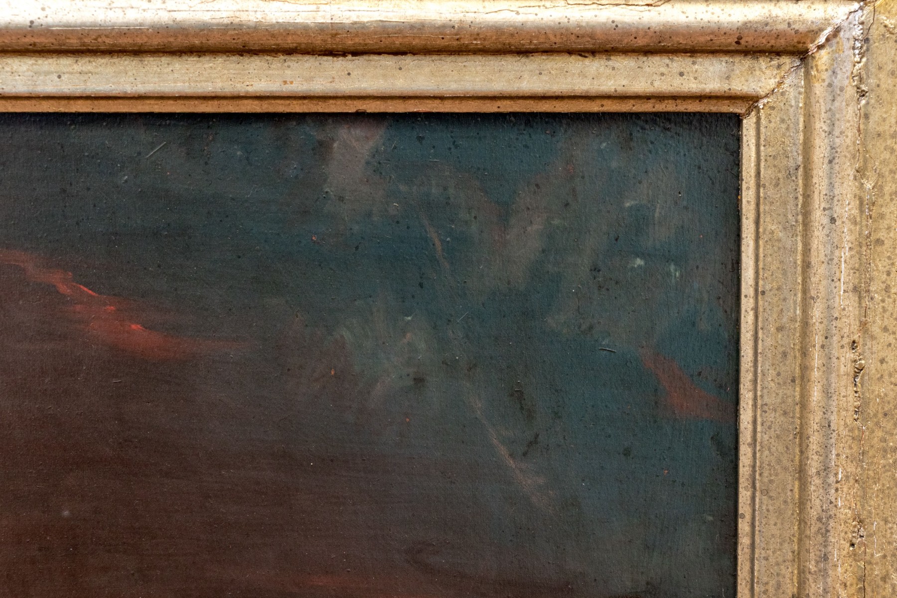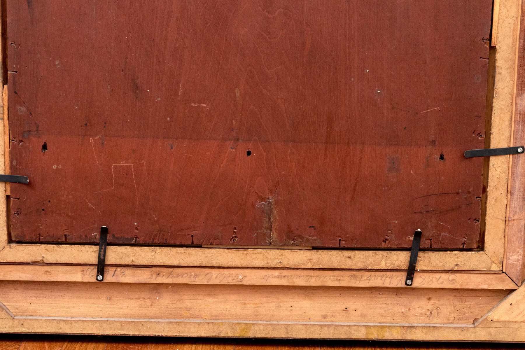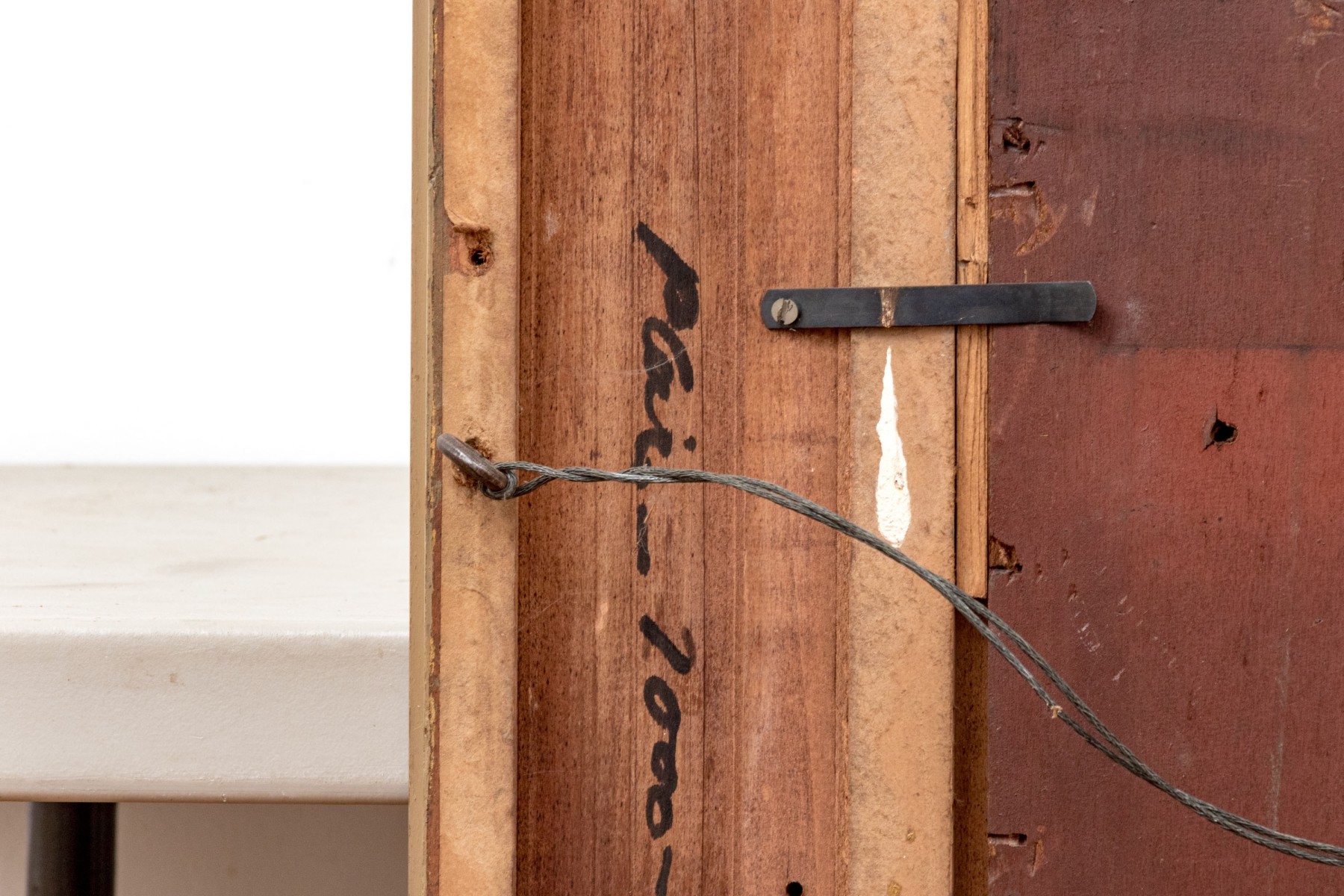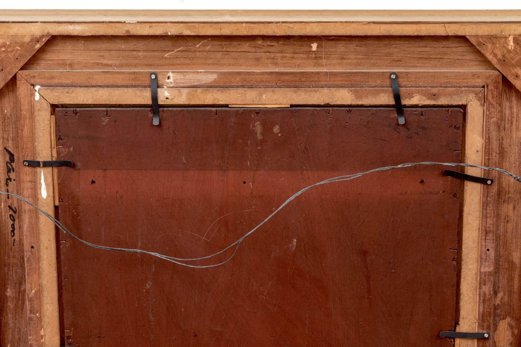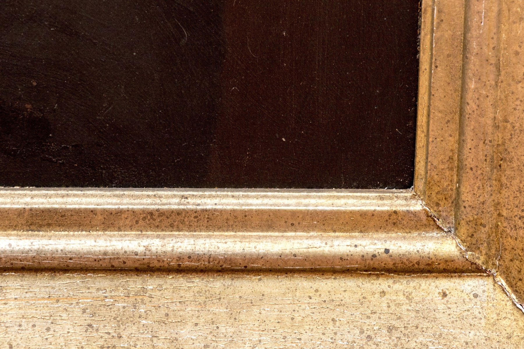 Displayed in a heavy, well built gilt and beveled wood frame.