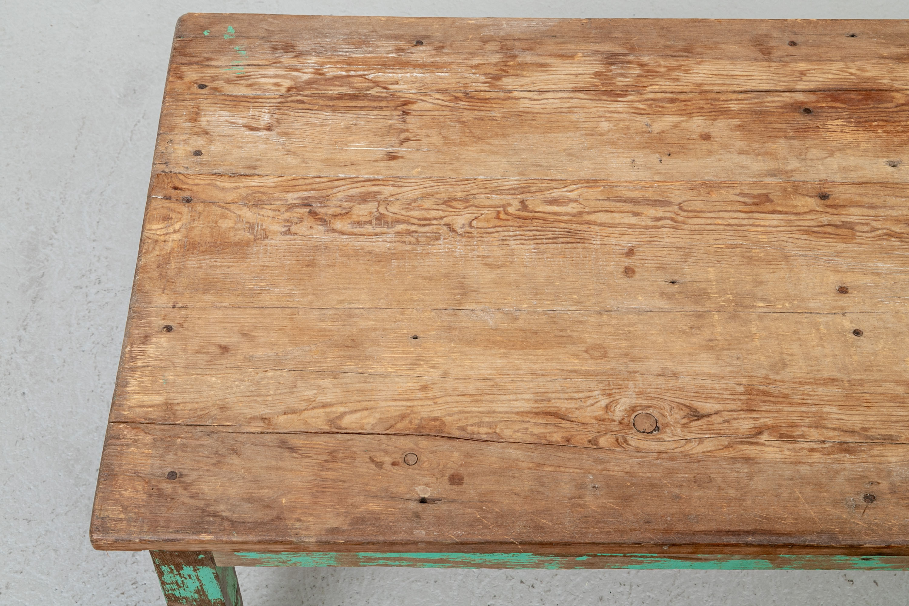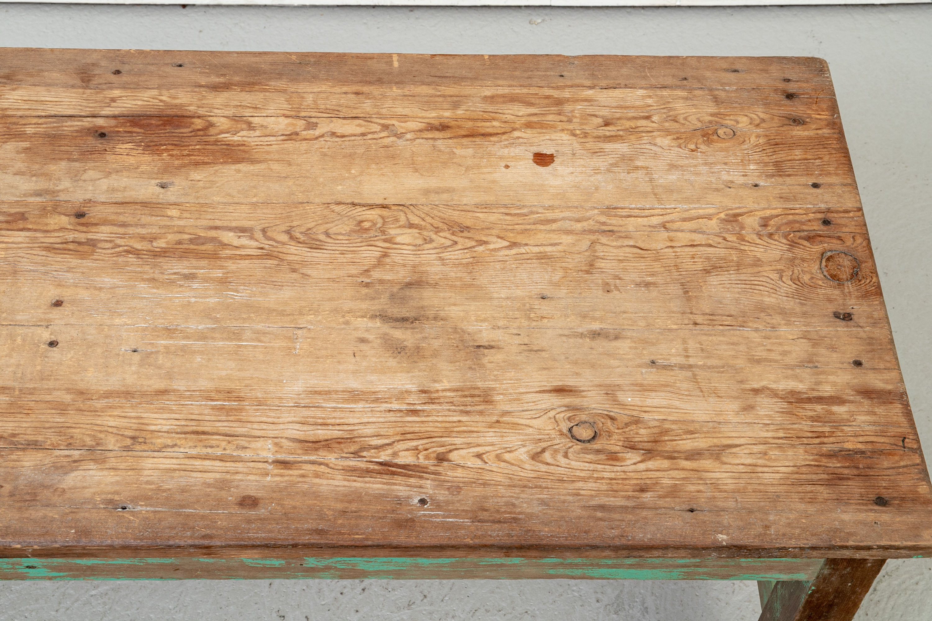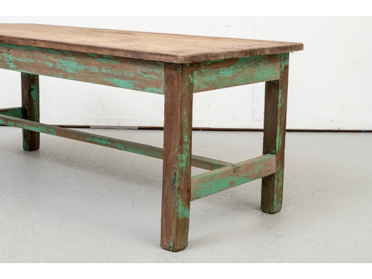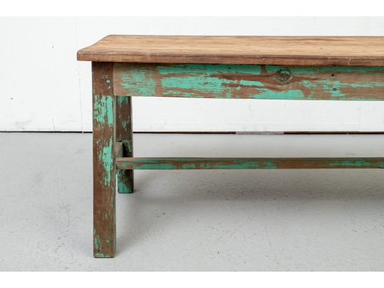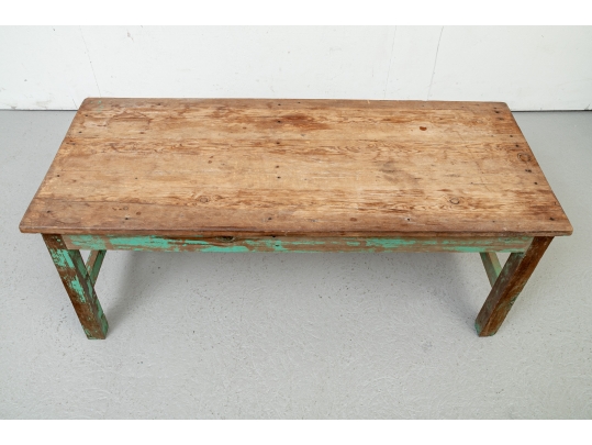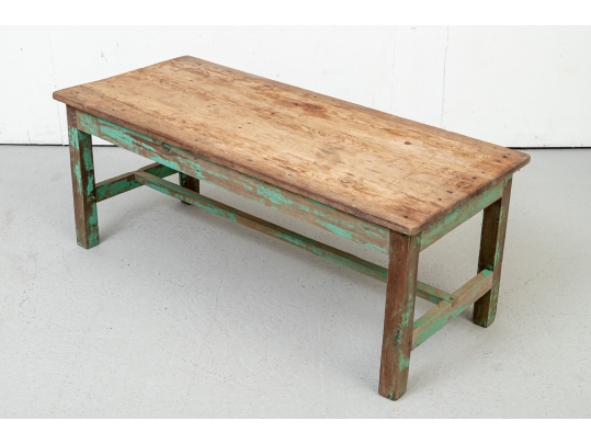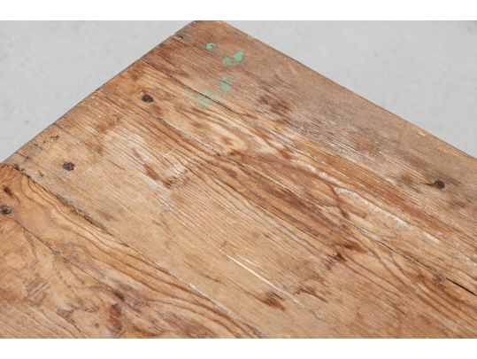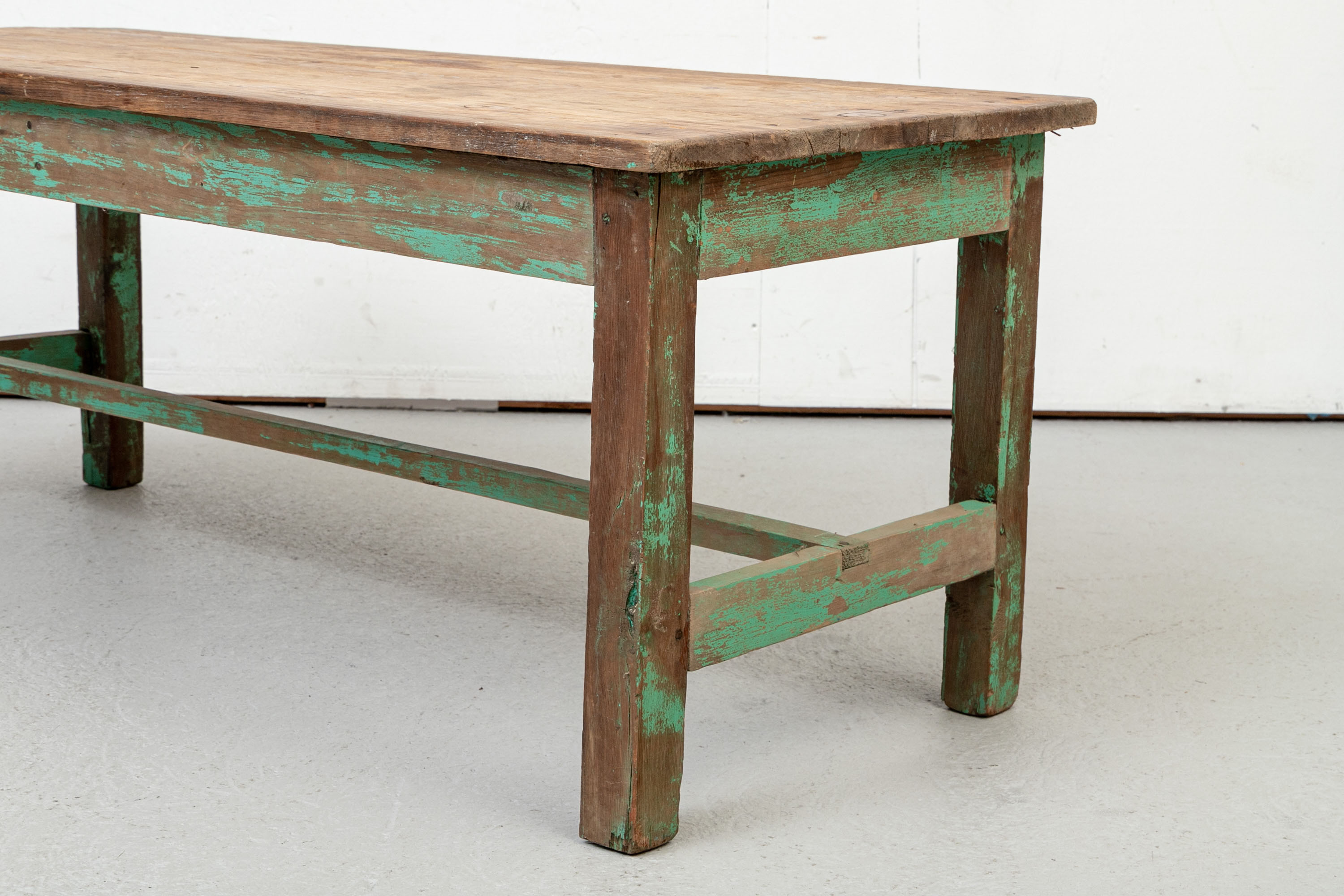 Originally acquired at the iconic New Preston, Connecticut design shop J. Seitz. A very well made Antique Table from New Mexico with Natural Wood plank top and having wonderful Sage Green traces of paint on the frame. A charming and simple Primitive Table in all original condition.