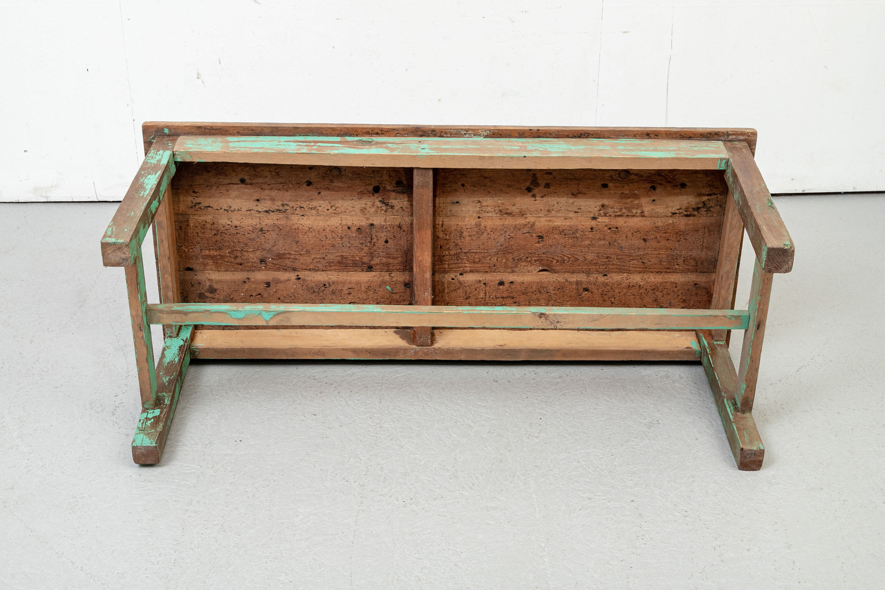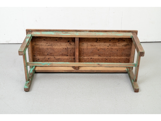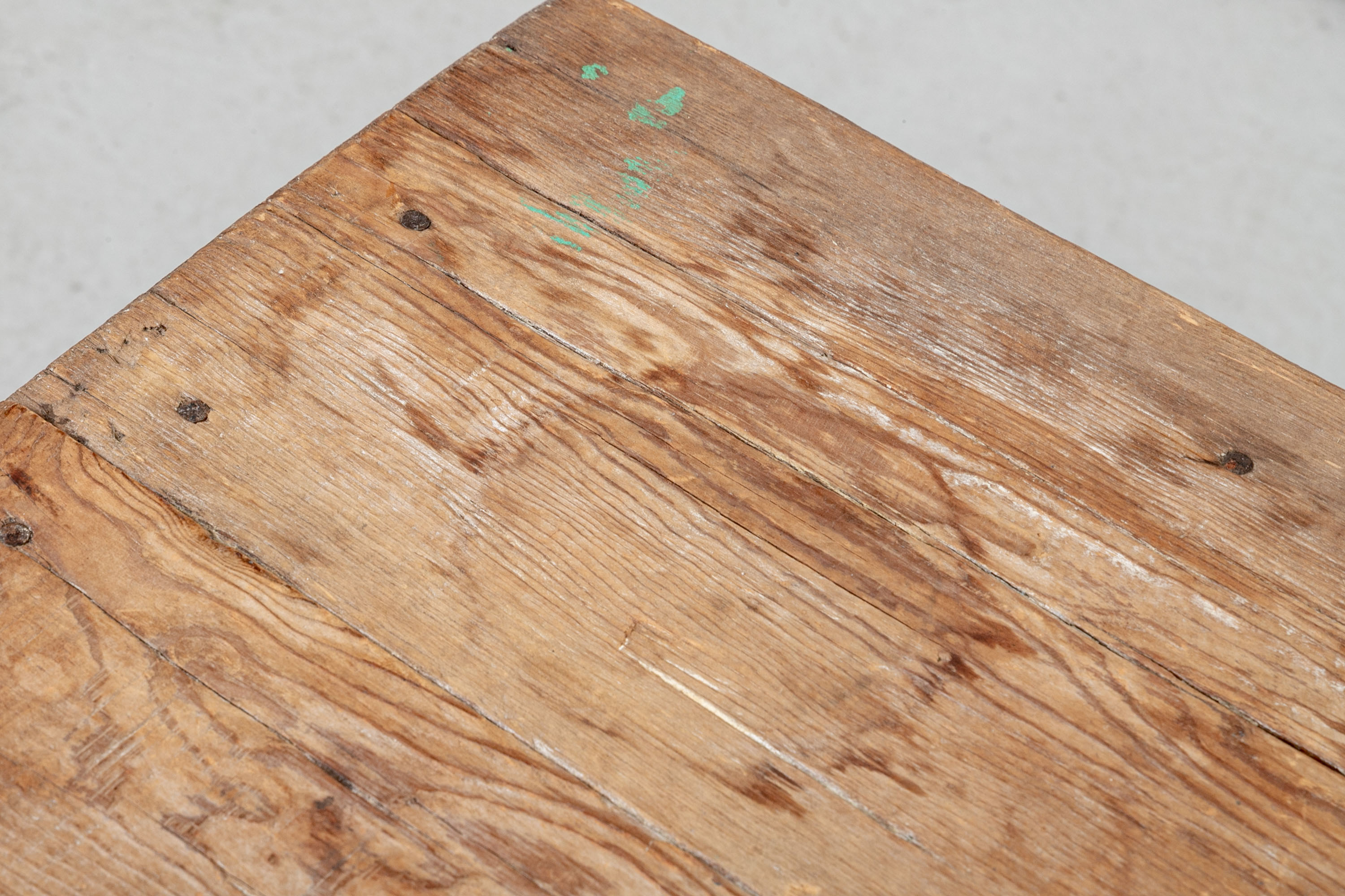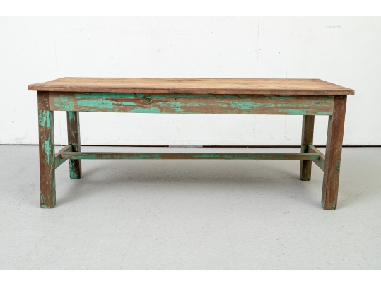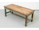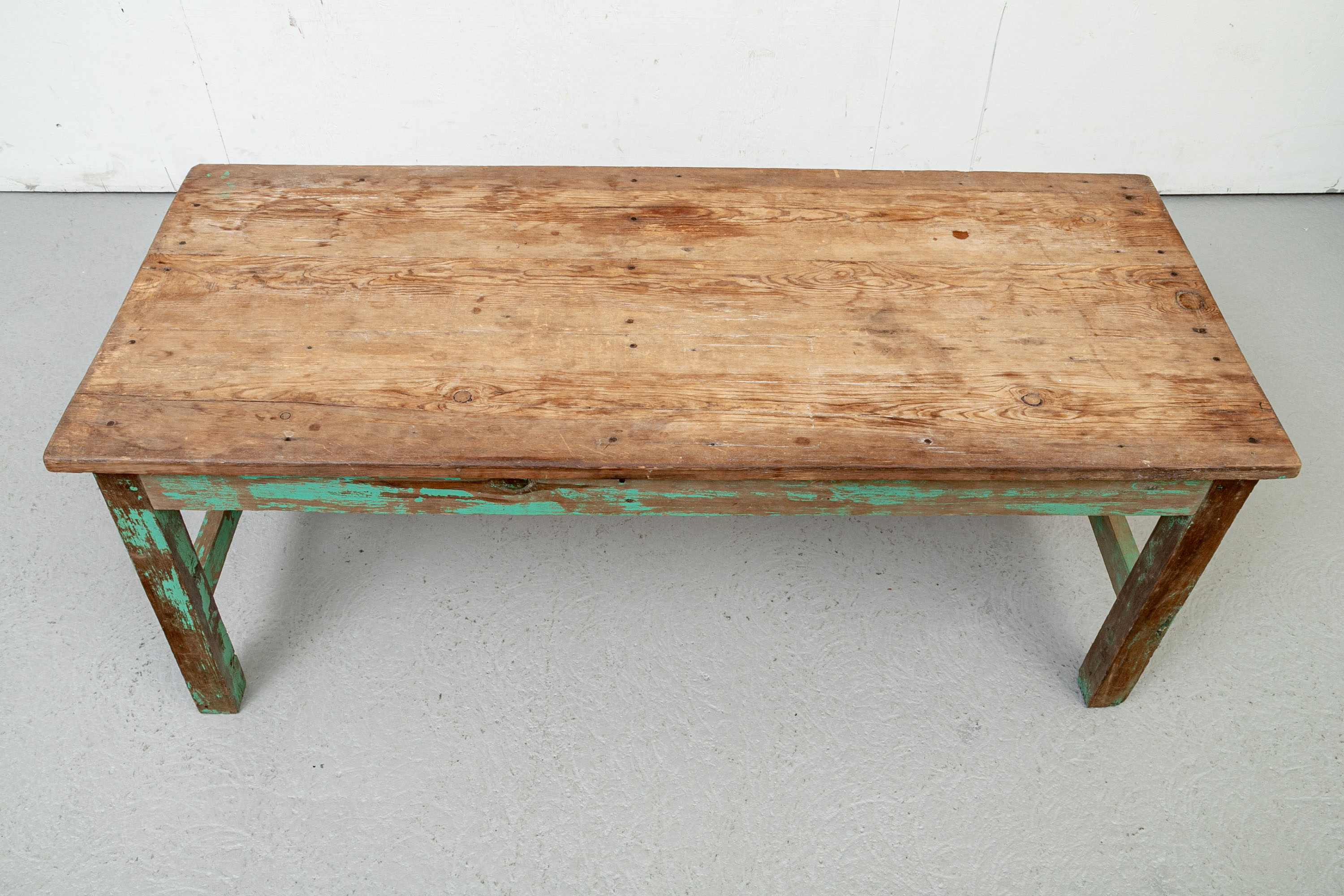 Originally acquired at the iconic New Preston, Connecticut design shop J. Seitz. A very well made Antique Table from New Mexico with Natural Wood plank top and having wonderful Sage Green traces of paint on the frame. A charming and simple Primitive Table in all original condition.