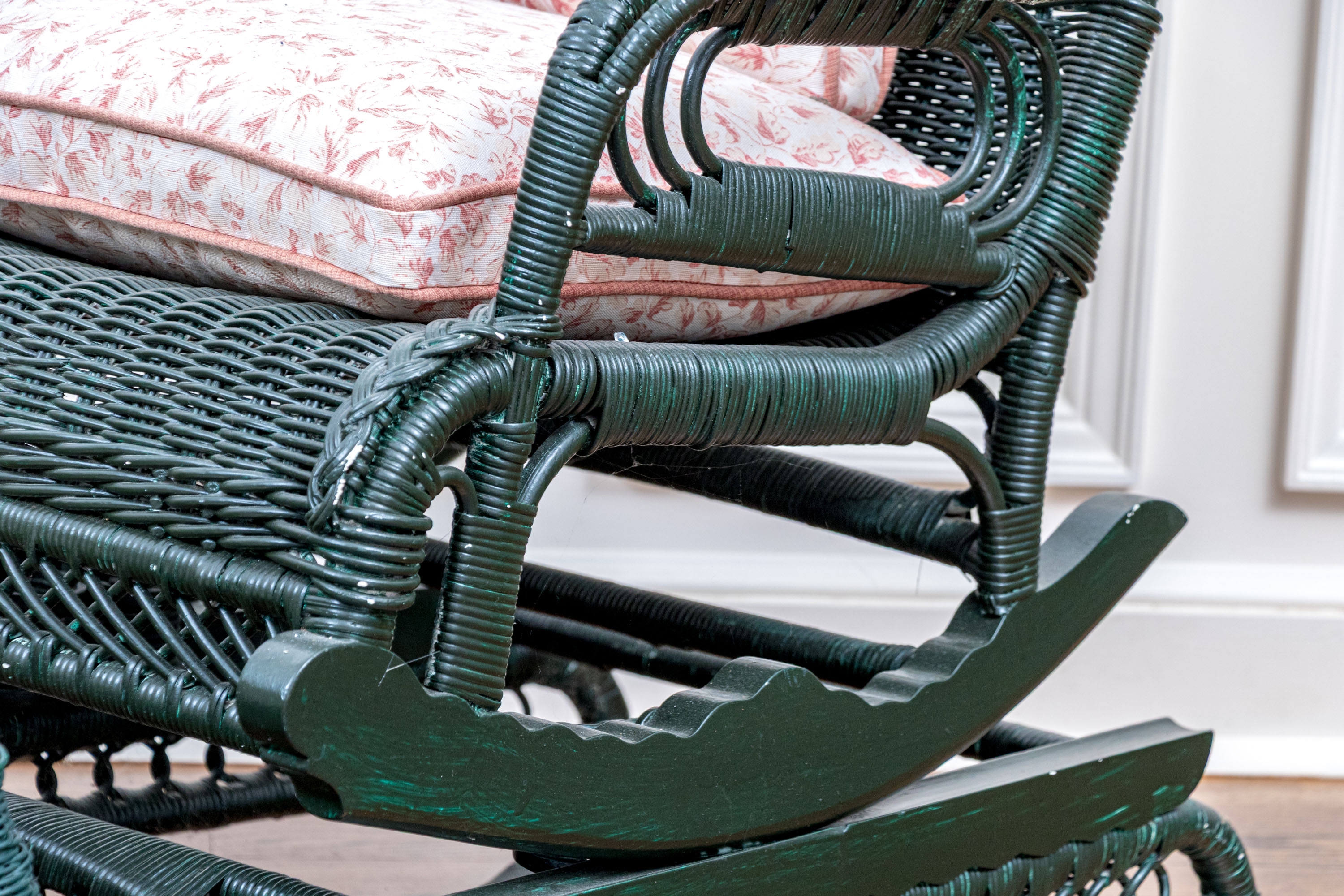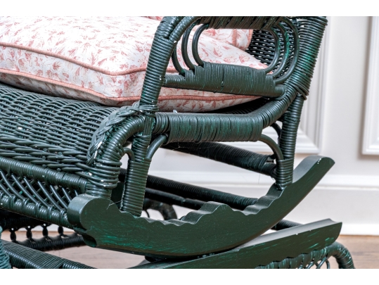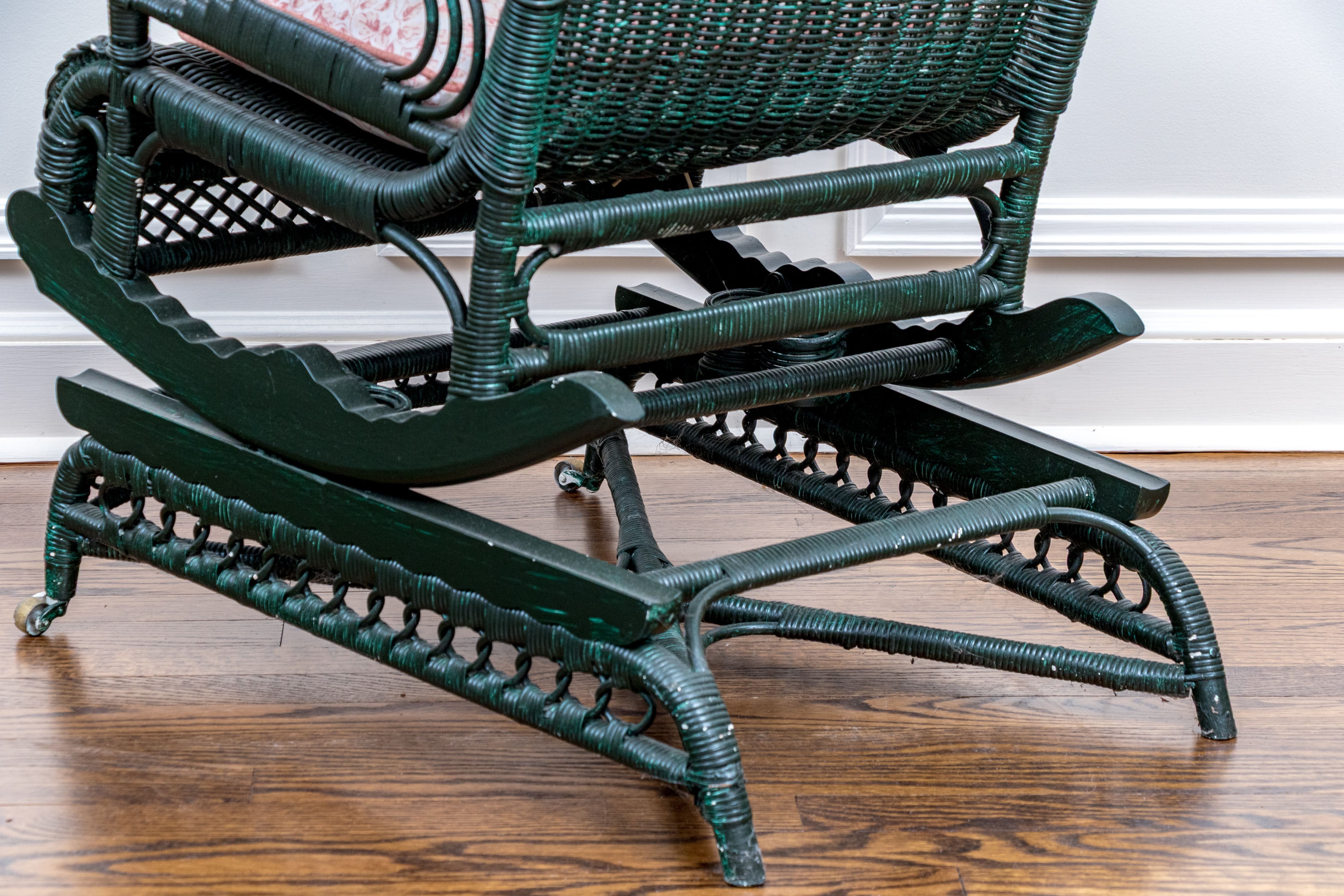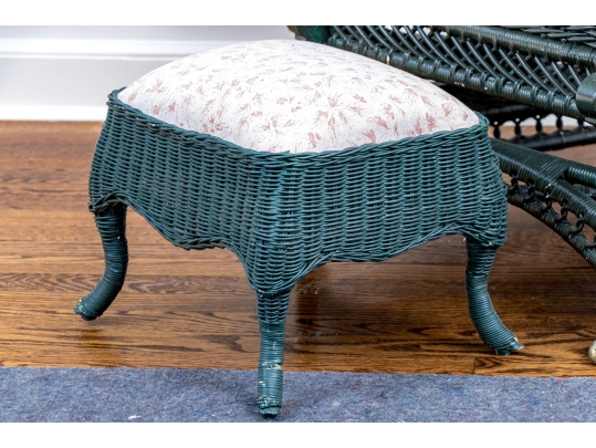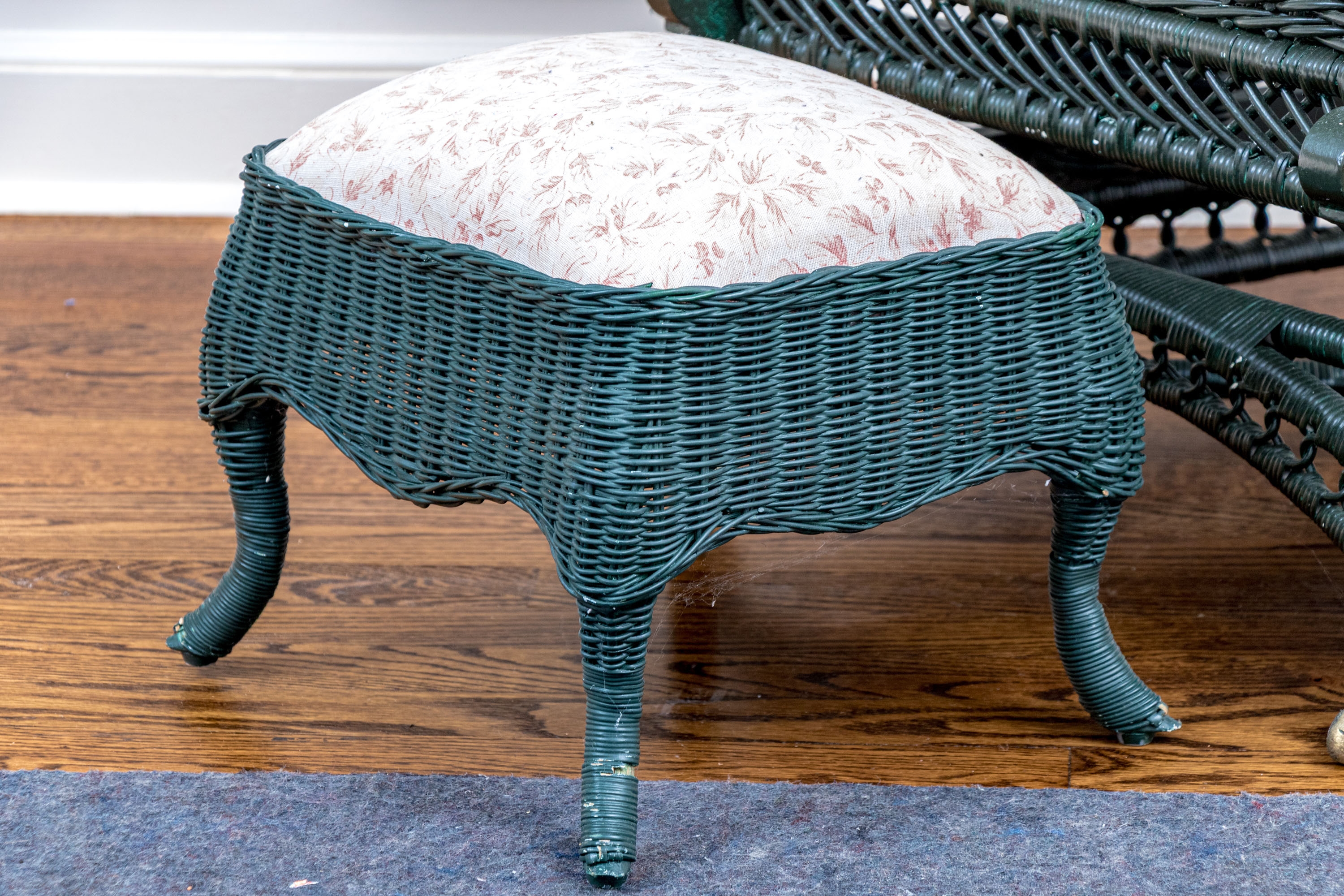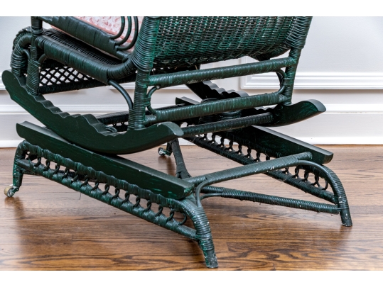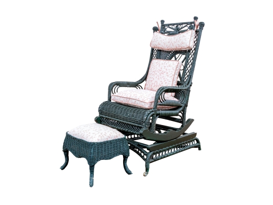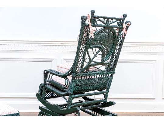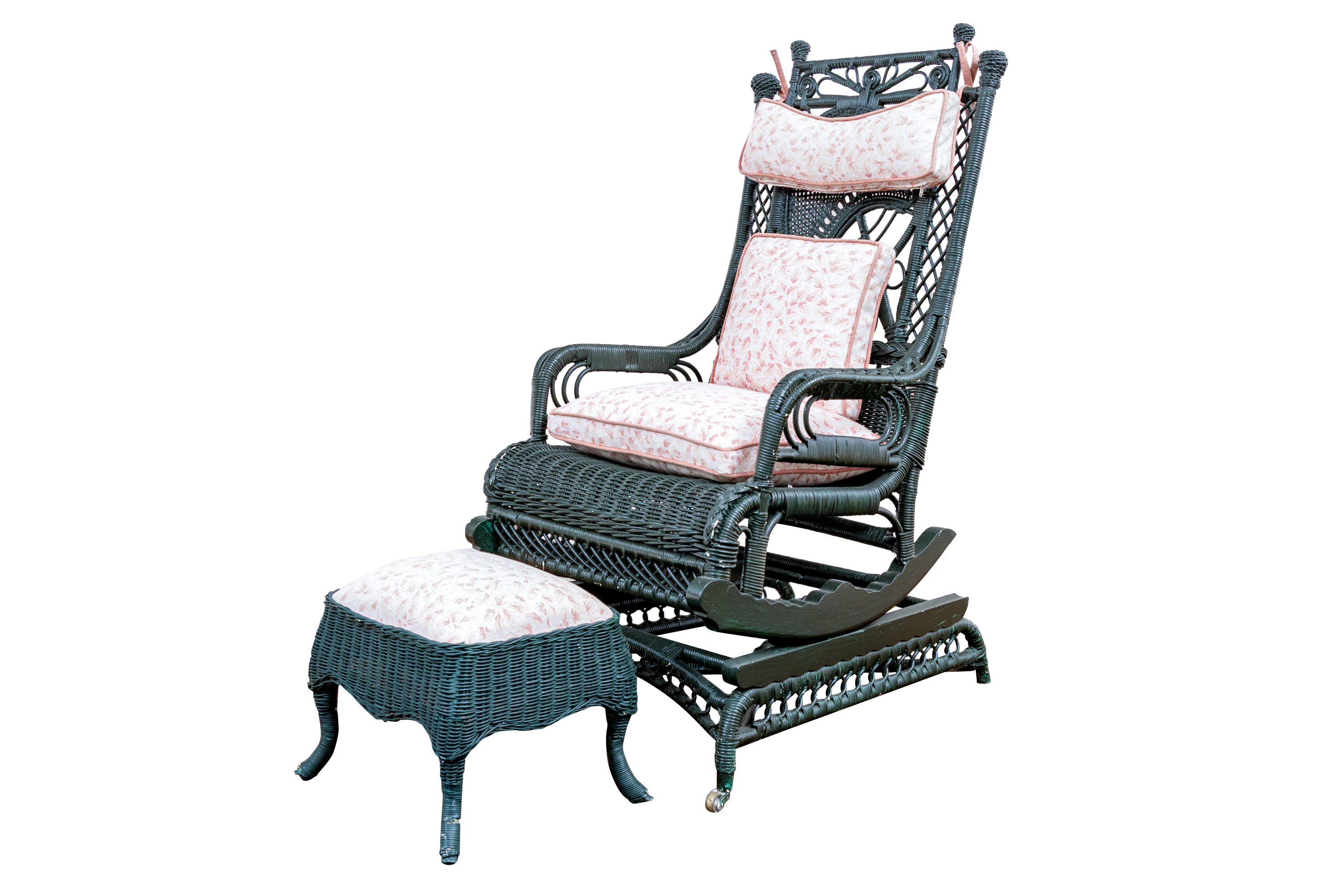 Antique Painted Wicker Platform Or Patent Rocker And Footstool