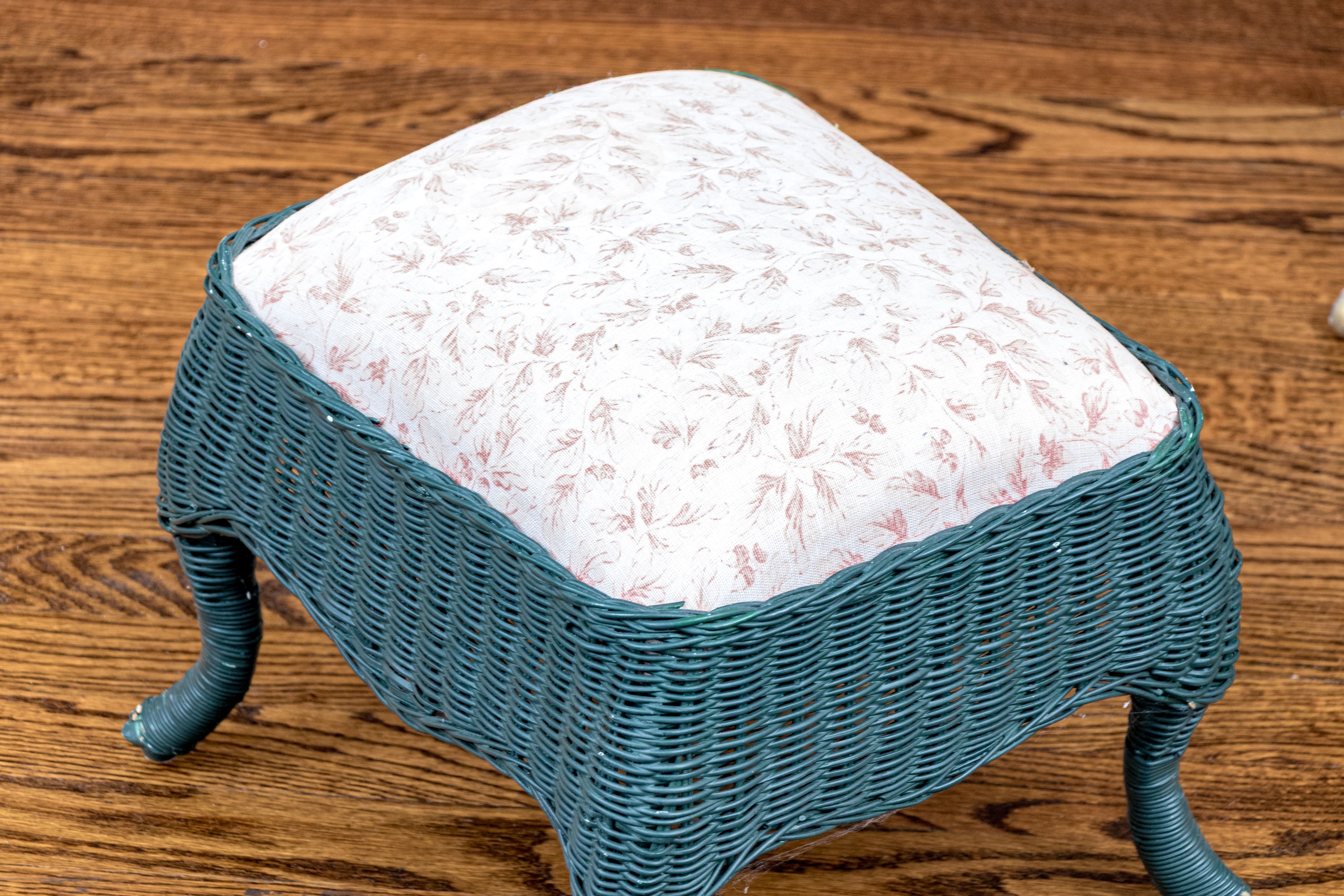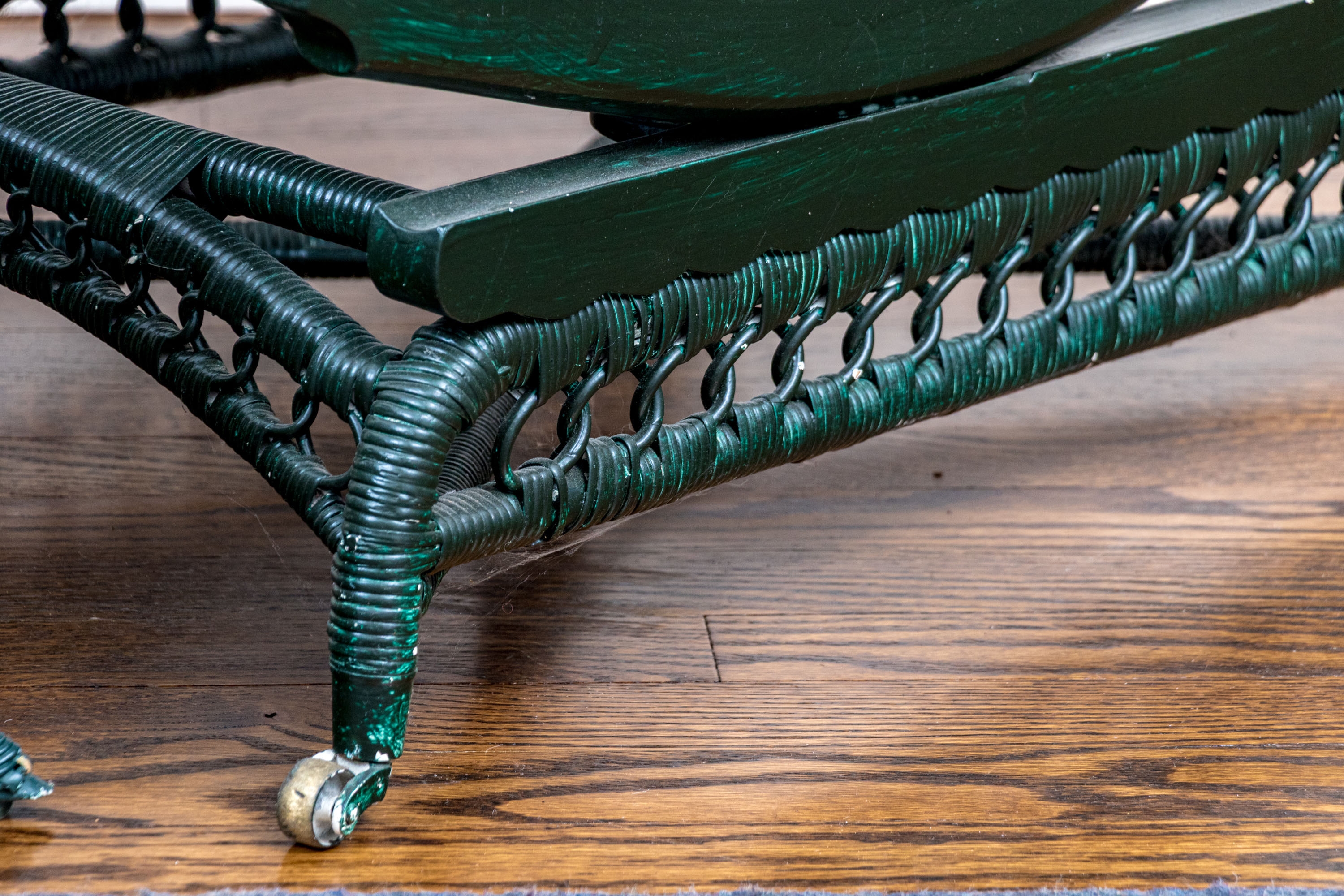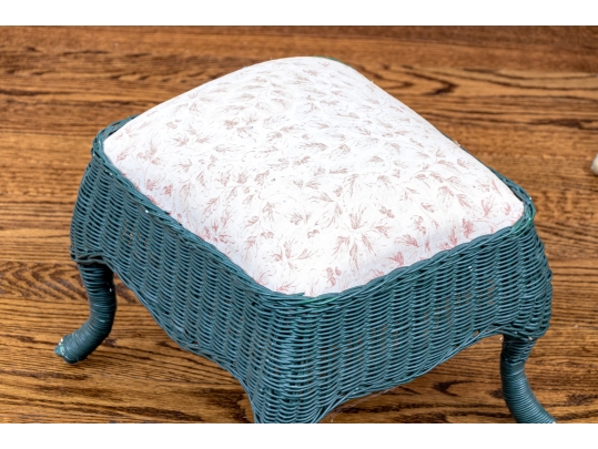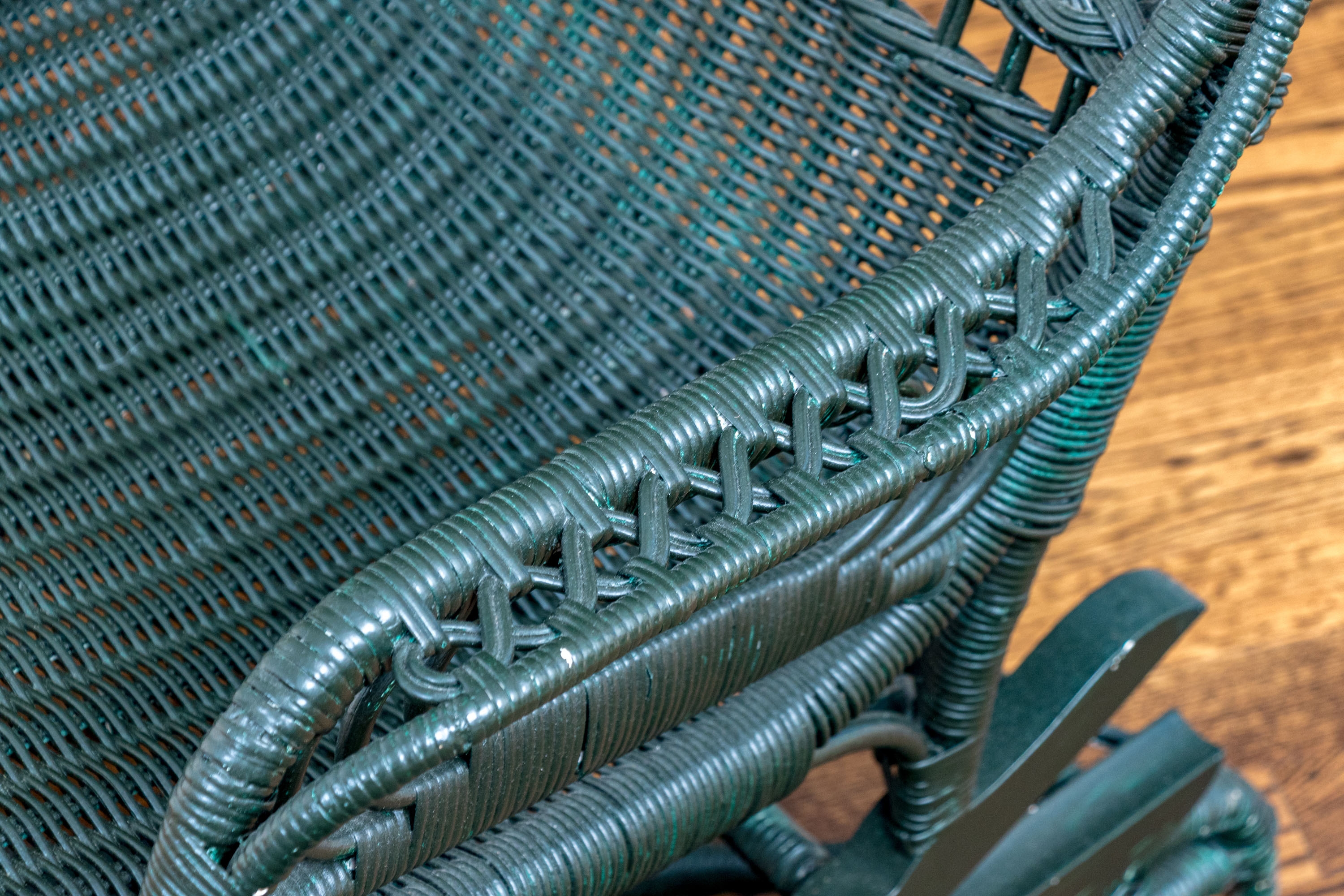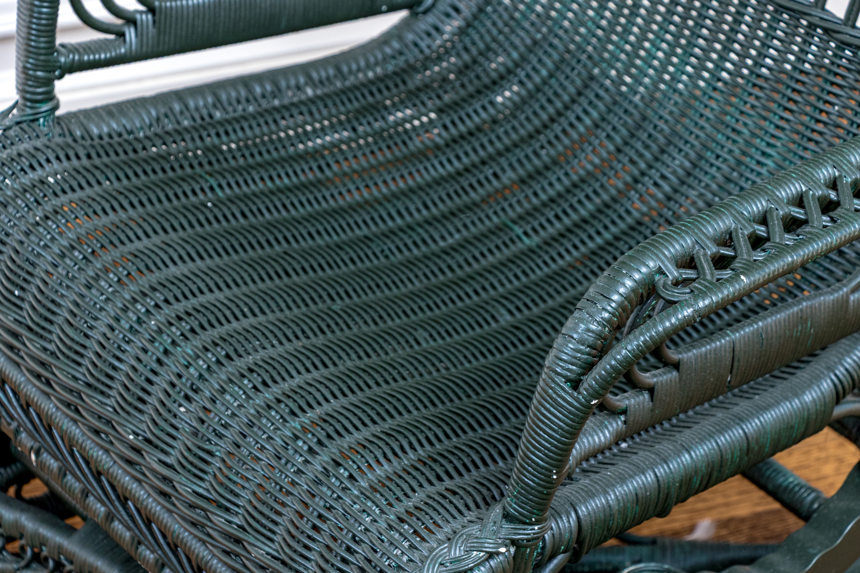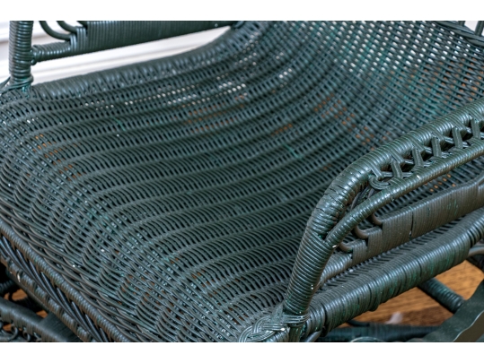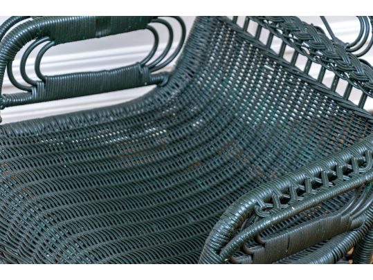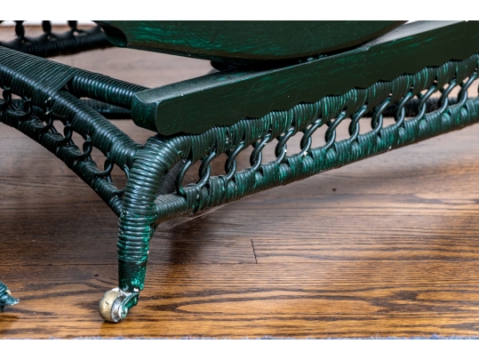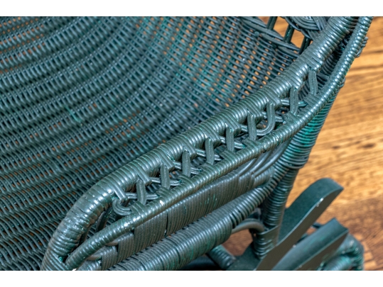 Antique Painted Wicker Platform Or Patent Rocker And Footstool