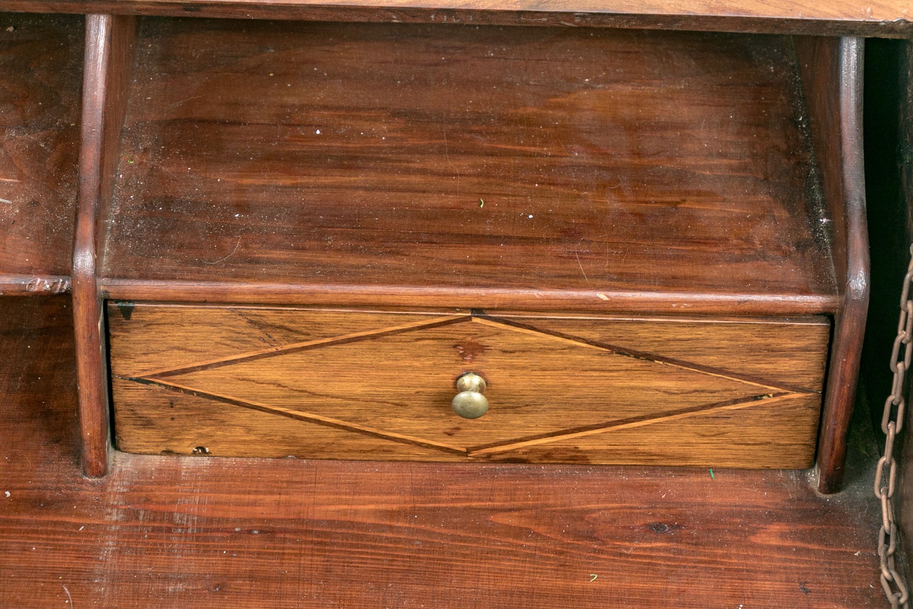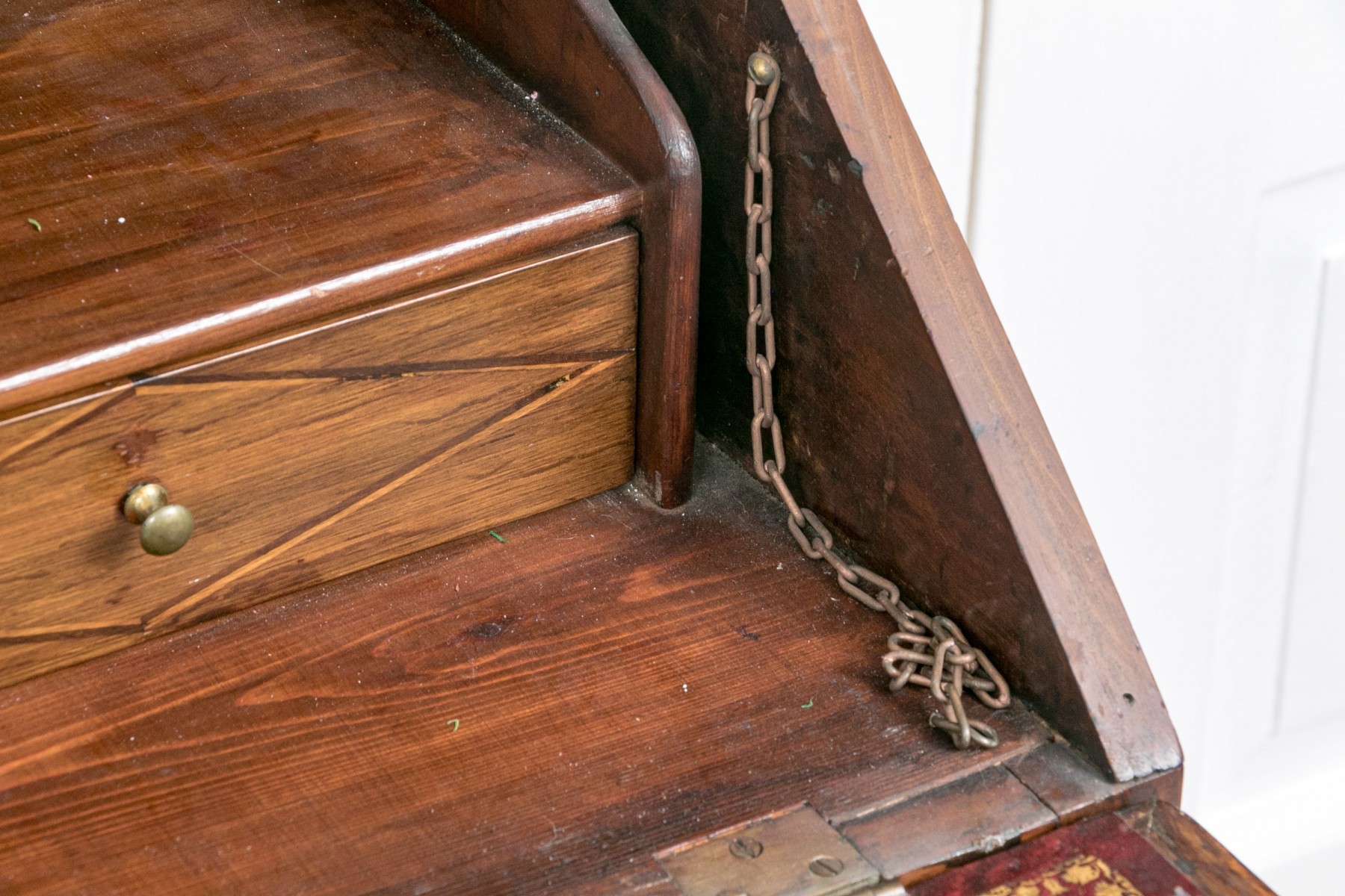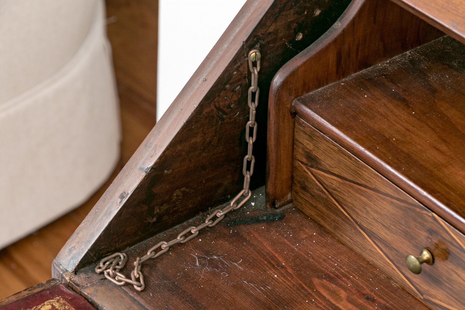 Fair antique condition with minor surface scratches. Chip to the edge of the desk and the chain needs to be reconnected