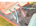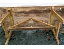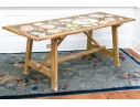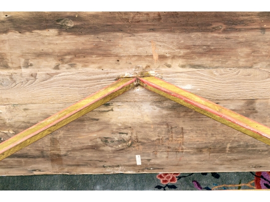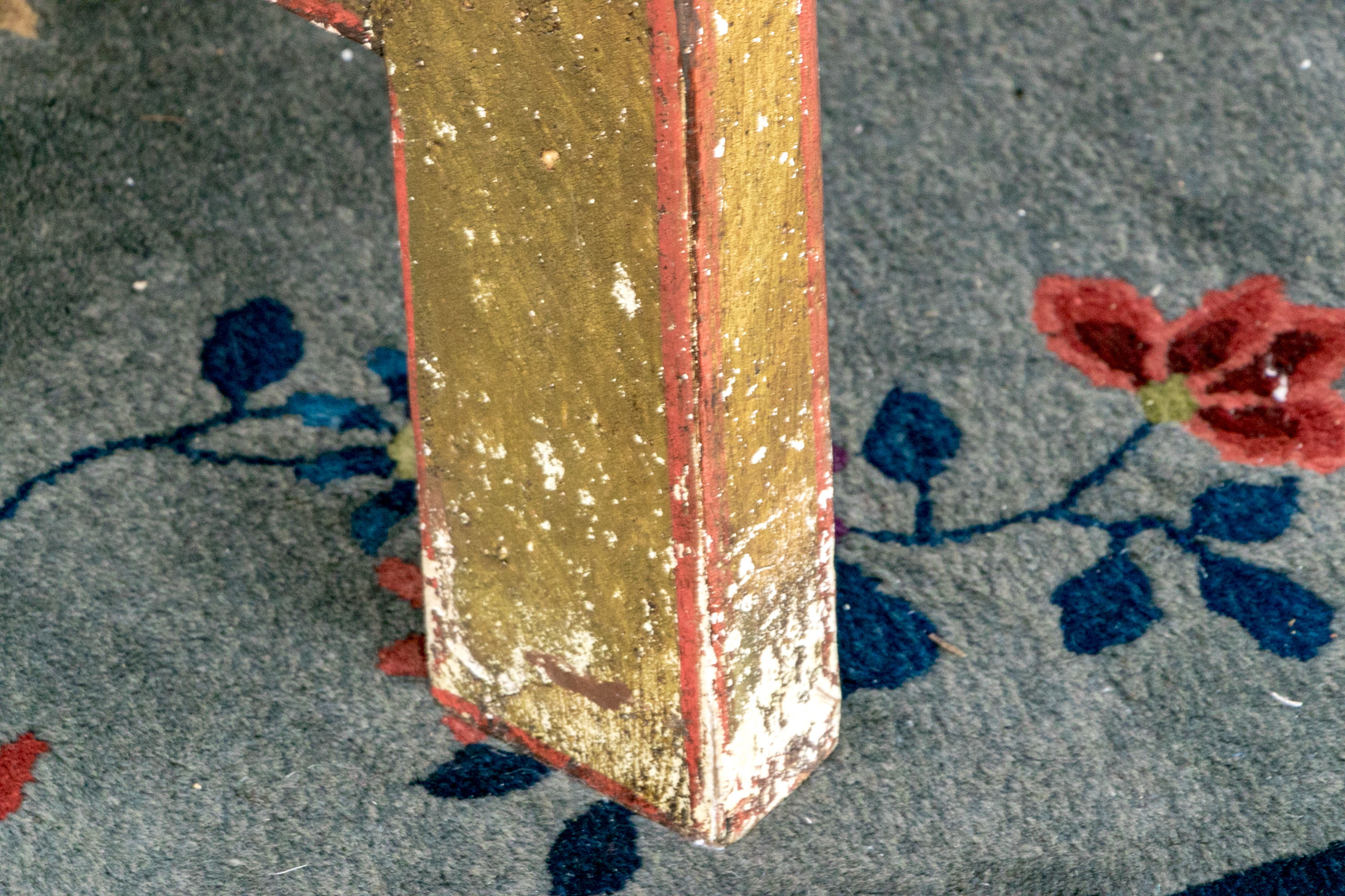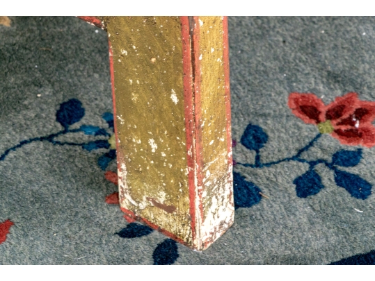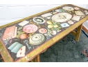 Condition: Please see detail photos. some scrapes to the table edges overall with some chips there and on the top. Some discoloration to the top decoration.