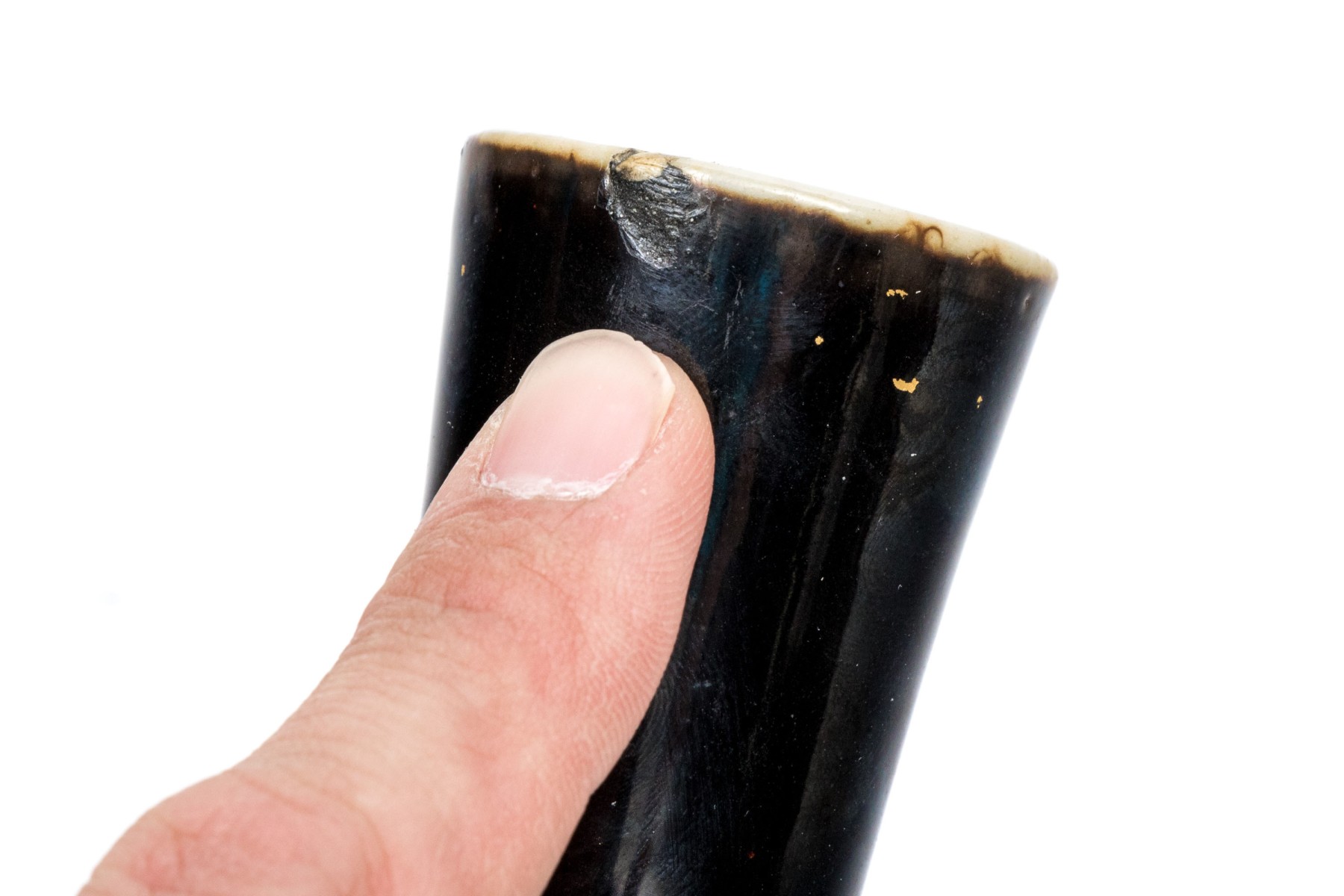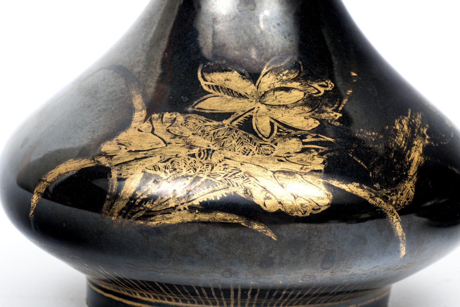 Cobalt glazed with gilt foliate decoration for embellishment.
