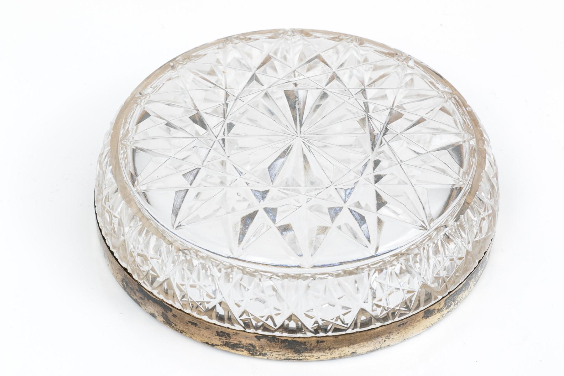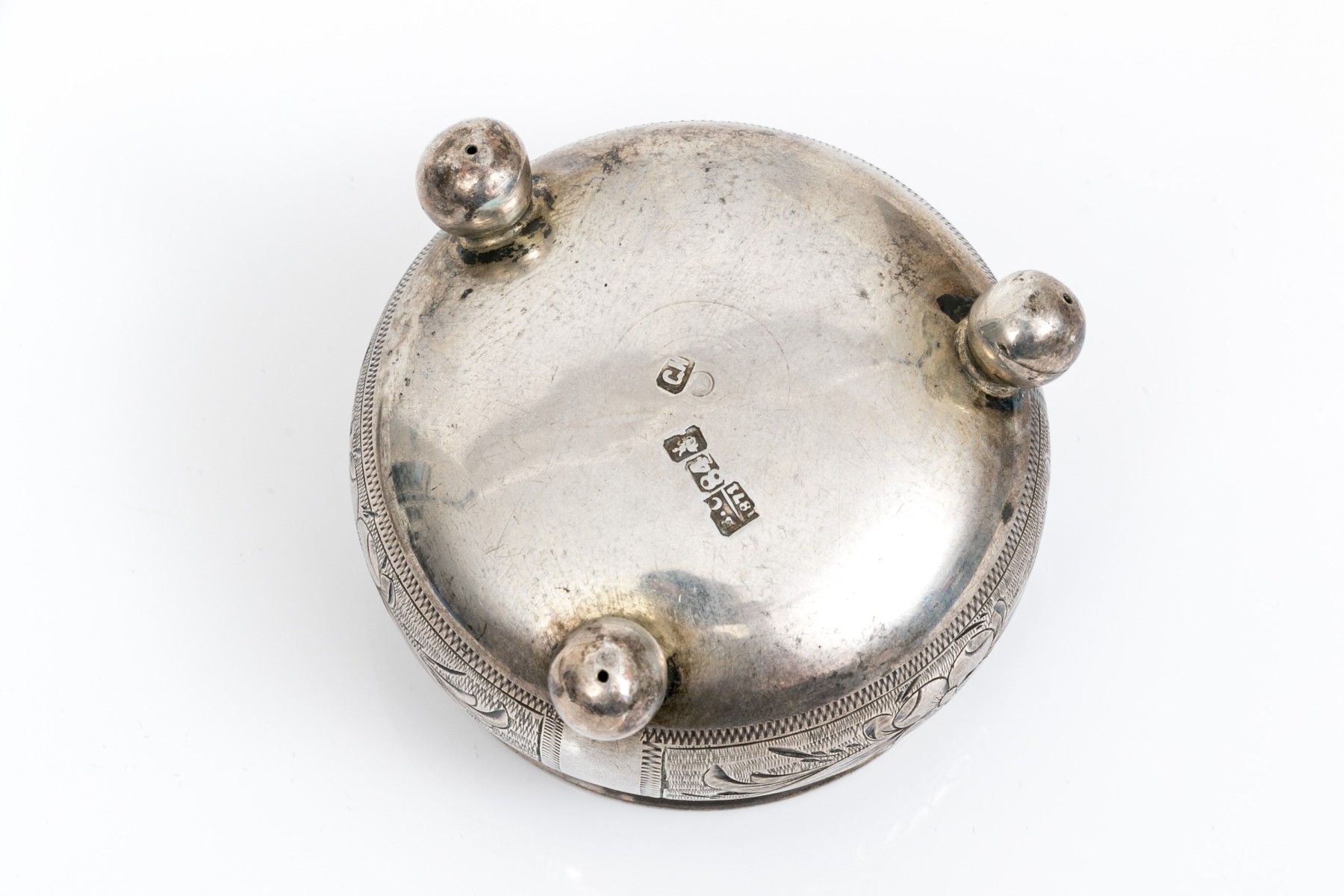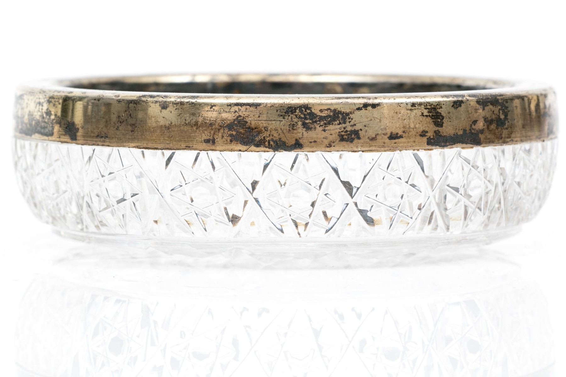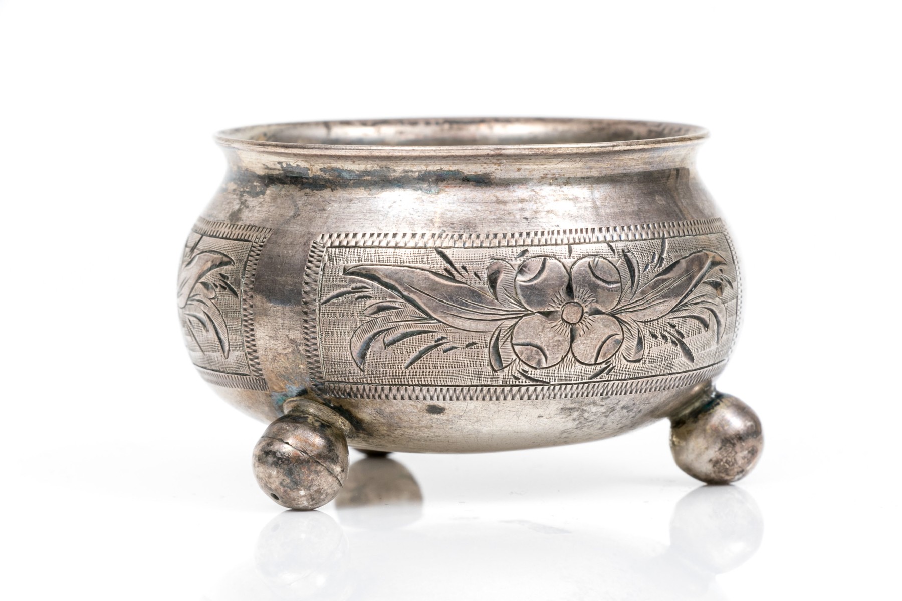 Antique Russian 84 silver chased salt and 875 Russian silver rimmed cut glass nut dish