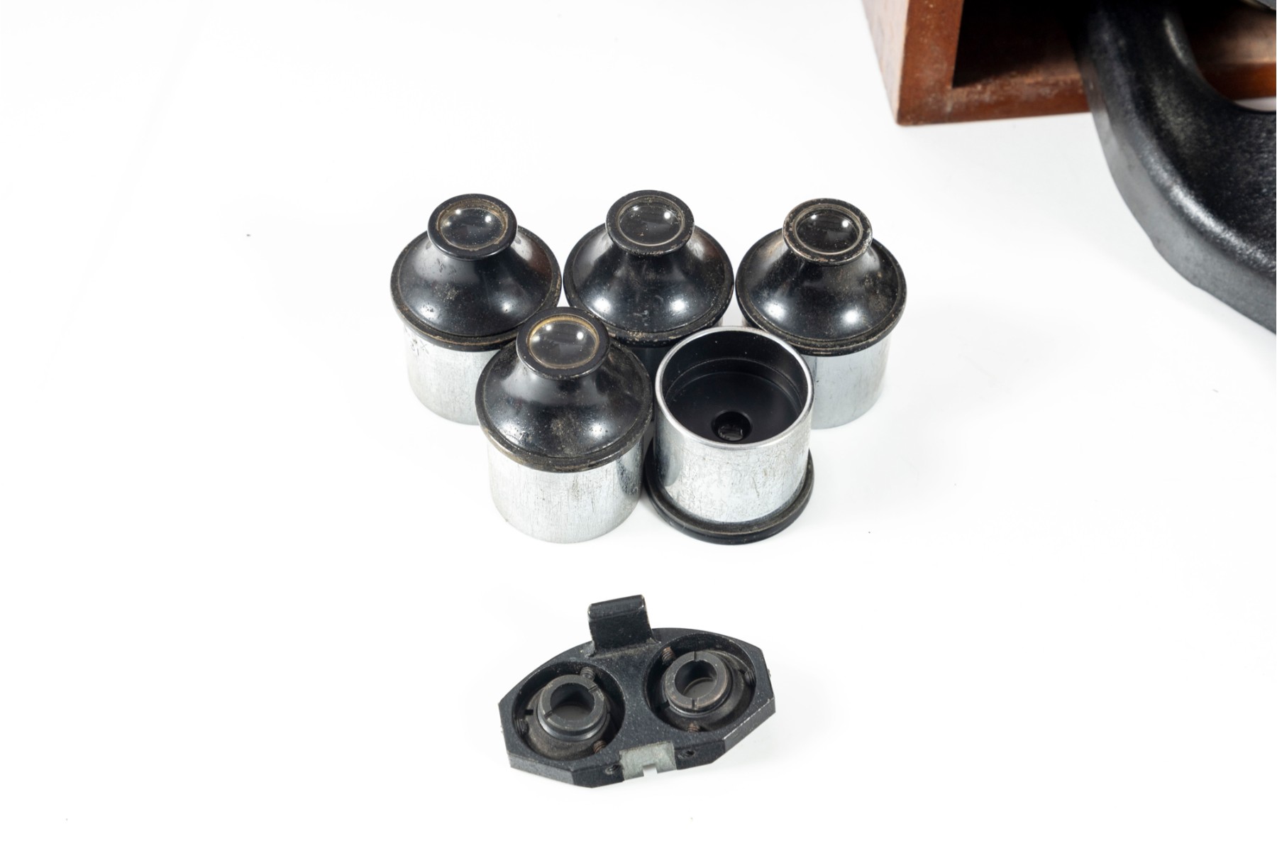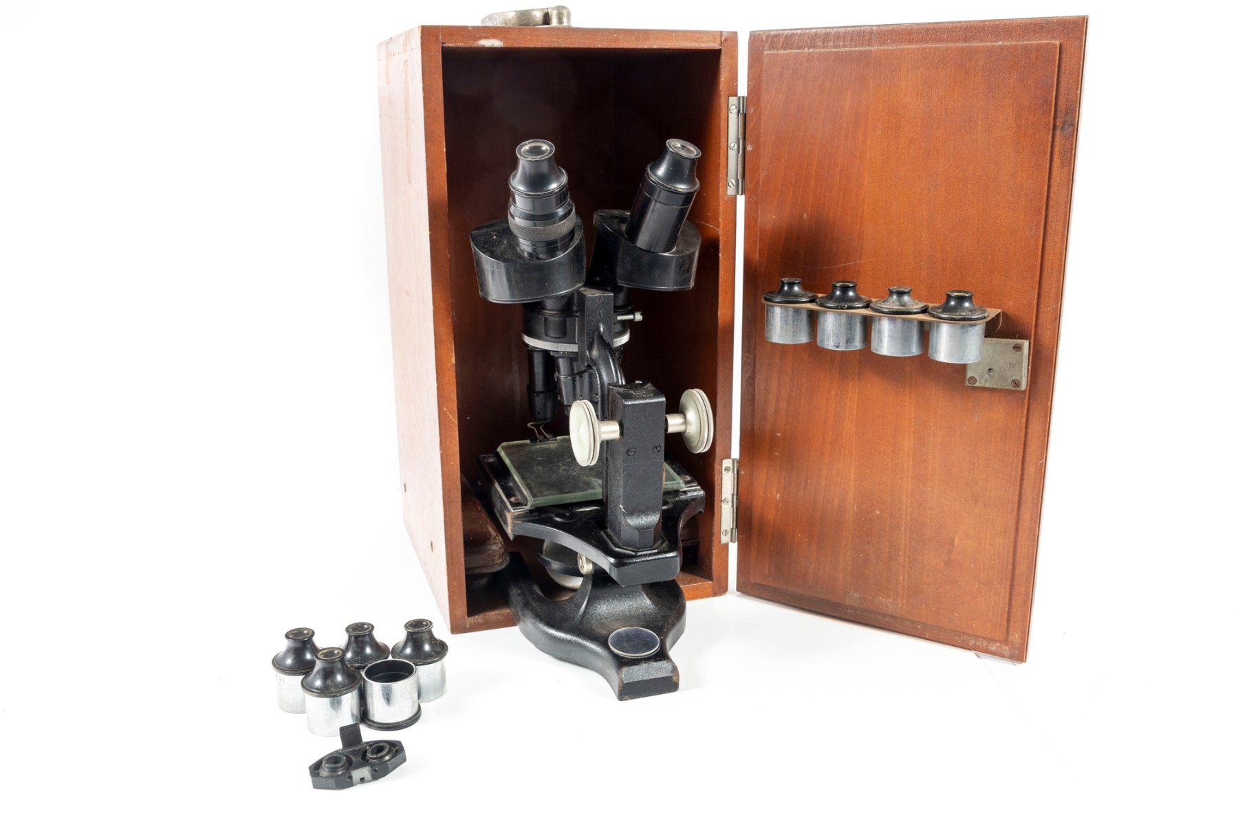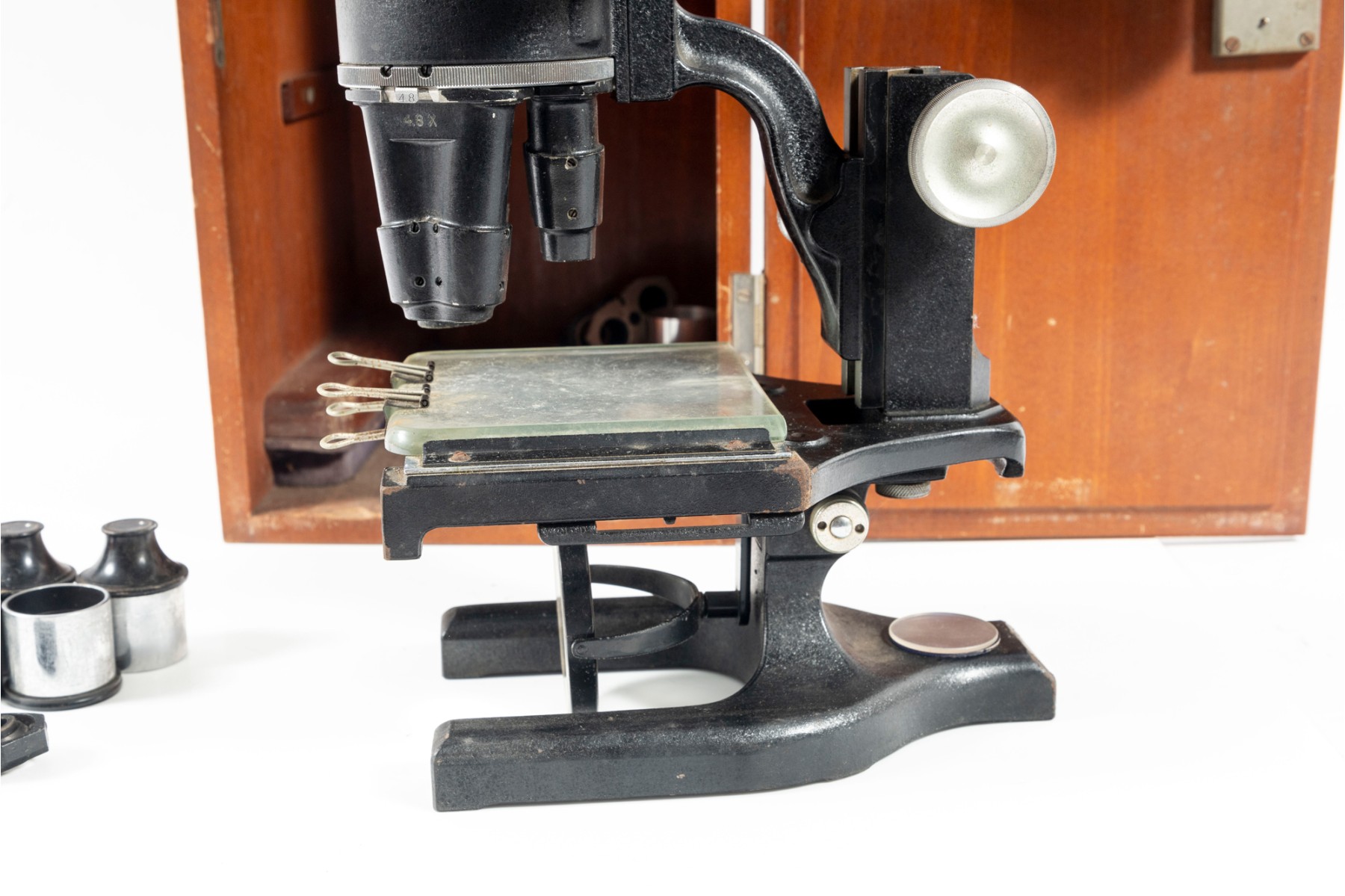 Manufactured by Spencer, a renowned American maker of optical instruments, this stereo microscope features durable construction and precision craftsmanship. The original wooden case adds to its charm, and contains many additional lenses and accessories. See photos for details.