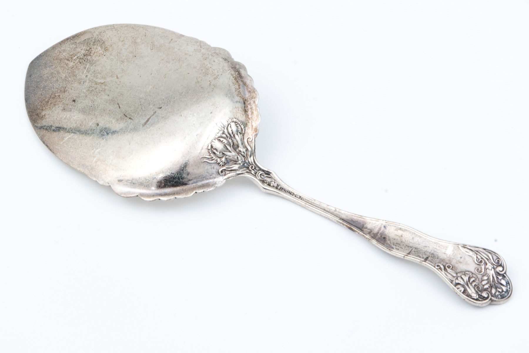 Antique Sterling Silver Server, 3.19 Ozt. #331108. Black Rock Galleries provides high end estate liquidation services through online estate auctions and a 50,000 sq ft designer showroom. estate liquidator, estate sale, online auction, antiques, fine art, liquidation, clean outs, auction, consignment, interior design, fine jewelry, collectibles, appraisals, estate appraisals, estate services, decor, furniture, furniture consignment, antique center, consignment shop. We offer appraisal services and specialize in fine art, jewelry, antiques and decorative arts. Sell with us. Black Rock Galleries is the tri-state's largest estate liquidator serving New England and the greater New York City area. We are the trusted source for expert appraisals, auction services, estate sales, and consignments. Black Rock Galleries is the east coast's largest and most trusted estate liquidator, with locations in Connecticut, greater Boston, MA and Raleigh, NC, Fairfield, Southport, Apex, TX. We are the best source for expert appraisals, auction services, estate sales and consignments. We have served thousands of families and estates with compassion, professionalism and expertise. BRG works with attorneys, executors, realtors and families to bring the greatest return on personal and estate property in the current market. Our unique combination of services make us the easy choice to get the job done in a timely and stress-free manner. We are with you from the initial consultation to the final clean out. Our house-built online auction software platform offers clients a dynamic approach to liquidating their personal property. This venue is most successful in bringing the best return with the least amount of disruption for our clients. See our services page for a complete description of this offering. Antique Sterling Silver Server, 3.19 Ozt. #331108