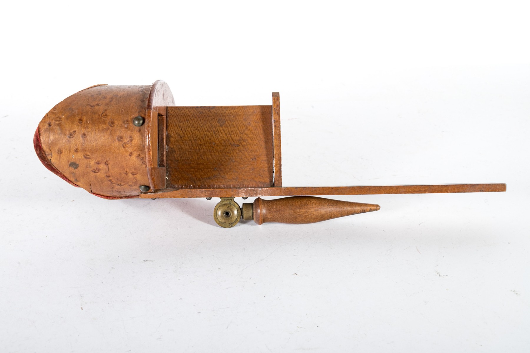 Displays well with wear commensurate with age including some wood checking, minor wood finish wear, minor discoloration. Some scattered wear to the cards. The scope does not include a card holder.