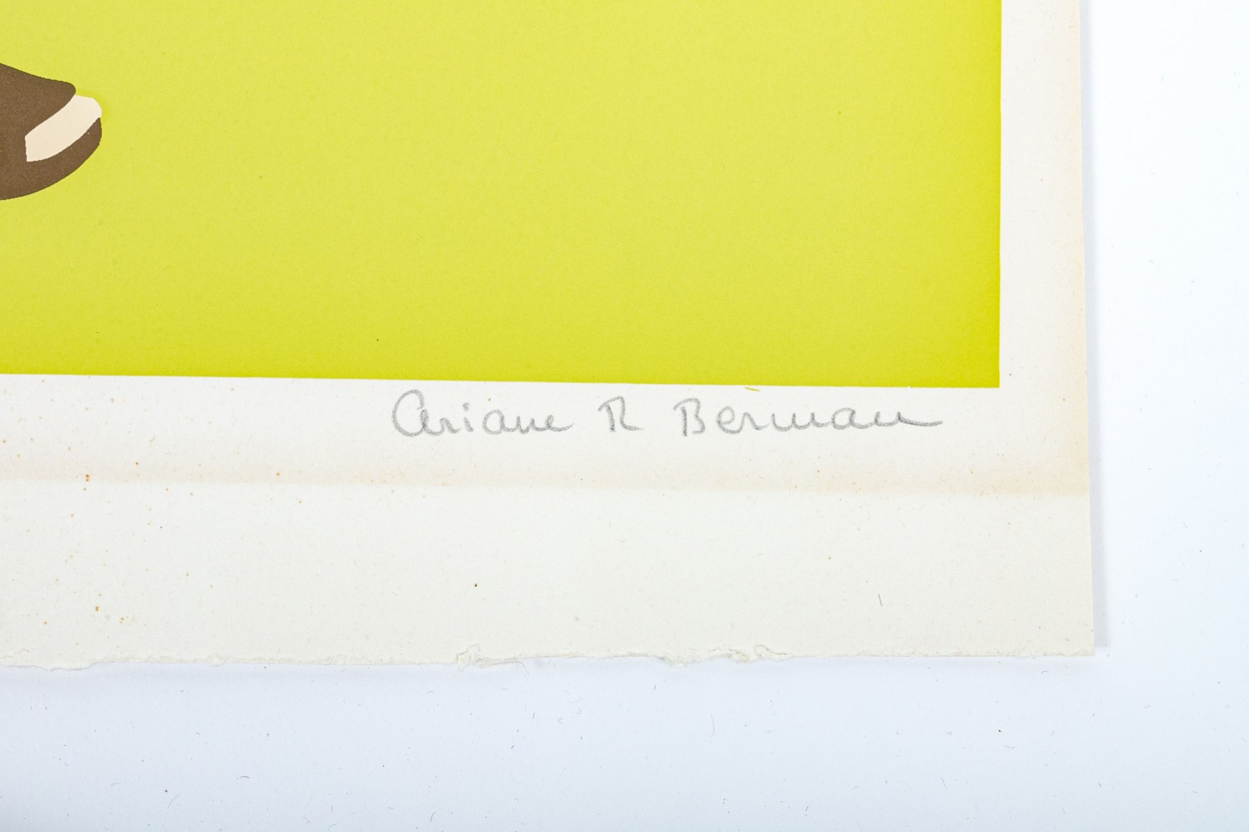 Ariane R. Berman is an American artist born in 1937, and resides in New York. As an artist, Berman focused her attention and creative content into painting and printmaking. Interestingly, her works have not been as heavily circulated as many of her artistic peers working in a similar style have been throughout the 20th century. Berman’s unique style is intrinsically modern, blending bold colors and form juxtaposing realism and abstraction. Figures in her works are often devoid of facial features, but placed in realistic environments, thus drawing the viewers gaze to the overall image as of form and color in the modern aesthetic.