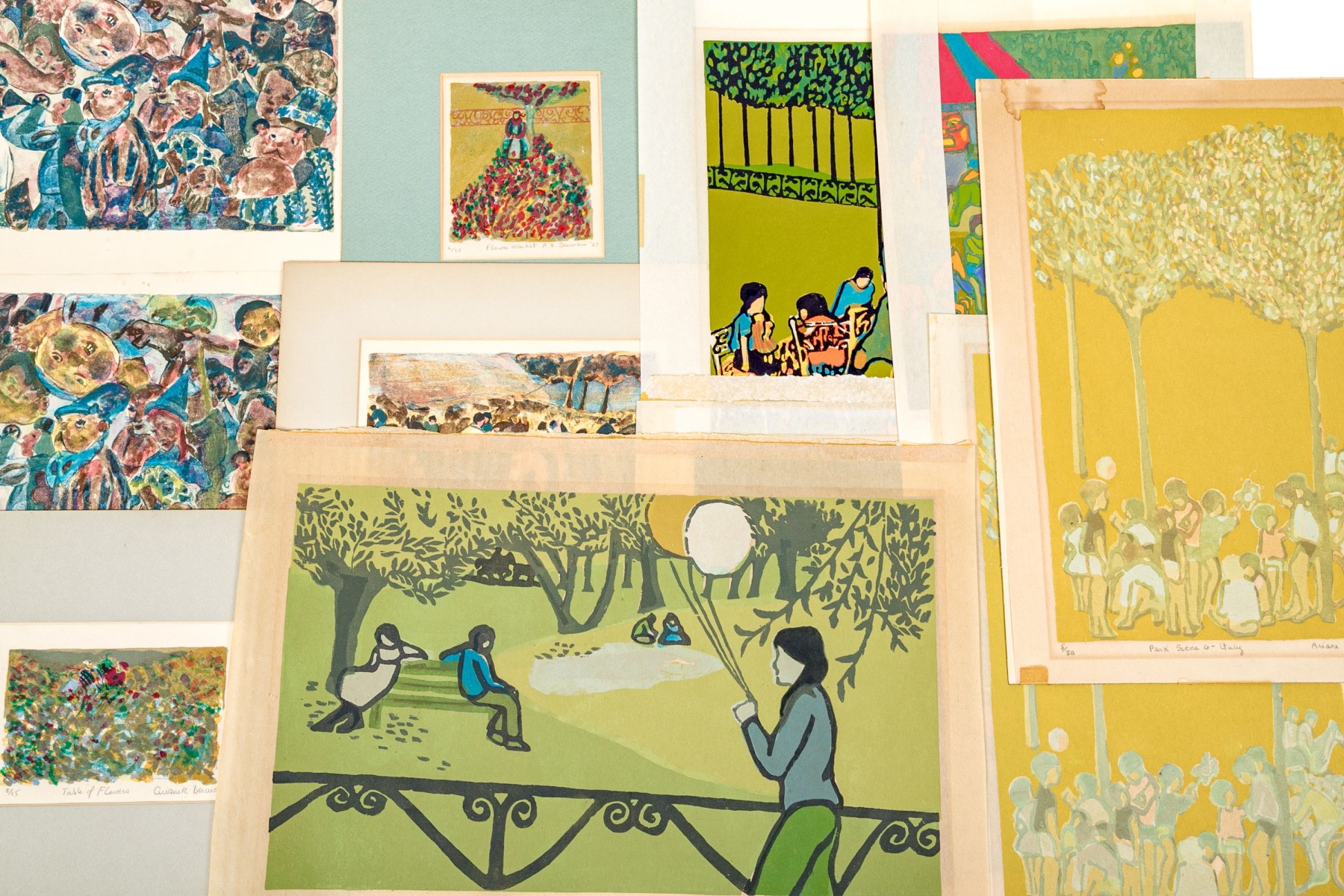 Ca. 11 works. Genre subjects include cafe scenes, people in parks and on horseback, flowers, children, a parade.