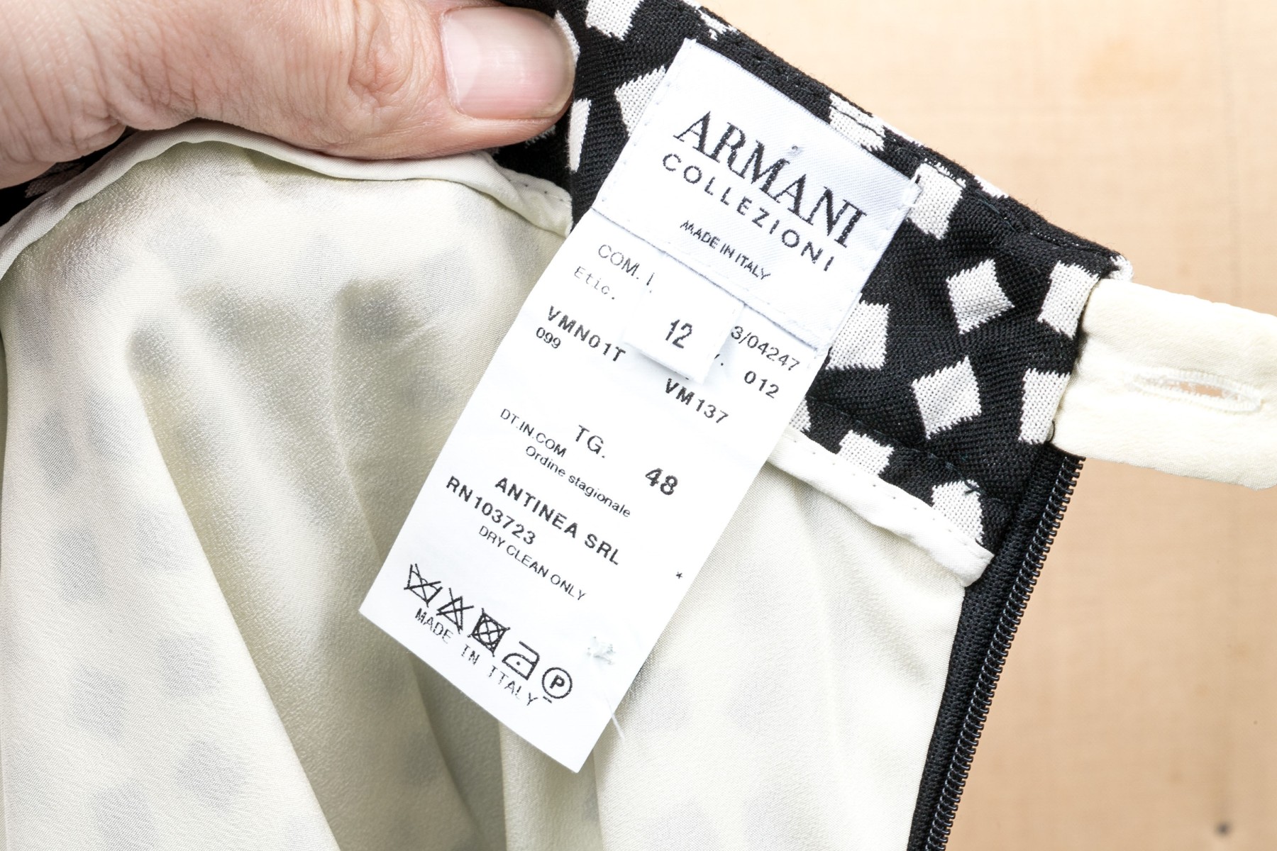 Armani Collezioni bold black and ivory cotton blazer (size 14) and skirt set (size 12)