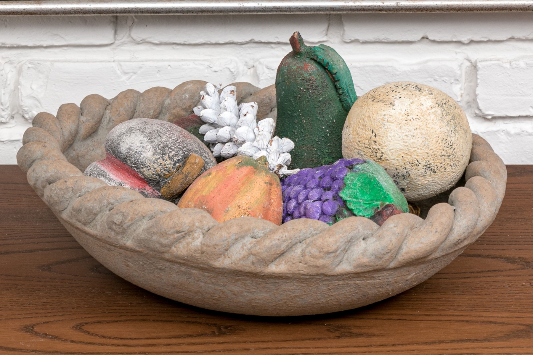 Artisanal Cement Bowl filled with luscious, cement crafted fruit.