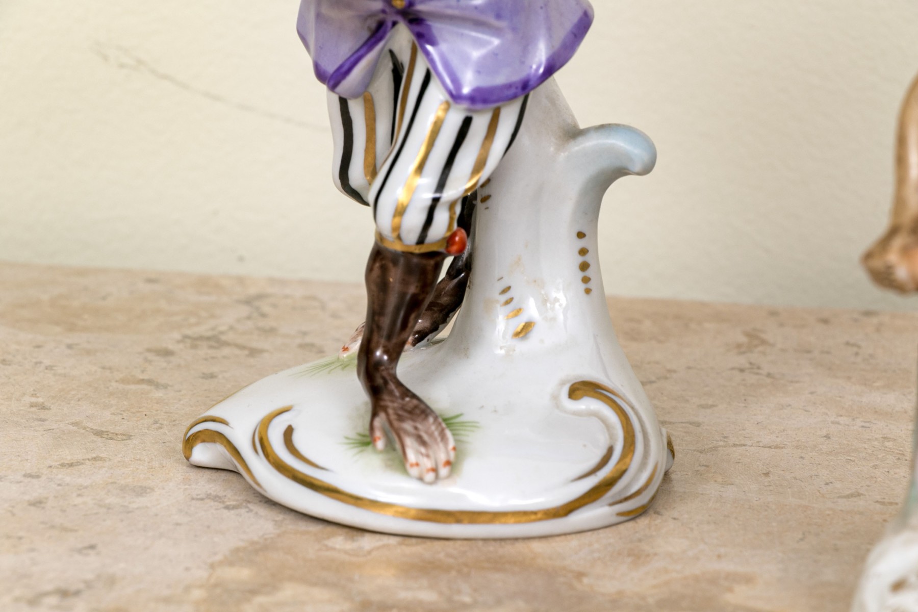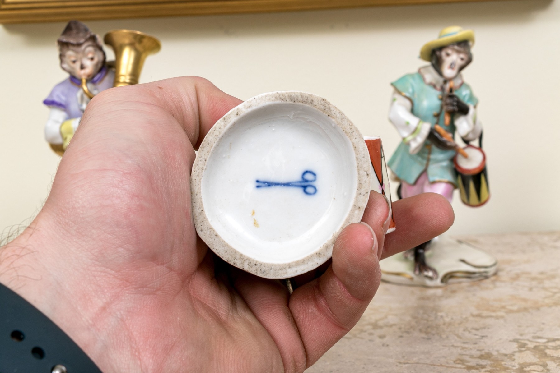Condition: The musician with the yellow hat with blue ribbon has a completely repaired and restored base and foot of the monkey. Additionally there is wear to the painted finish with nics and losses to the finish on small spots. Wear is mostly commensurate with age and display. Despite all presents well. See lot images for further visual inspection as they are considered part of the lot condition report.
