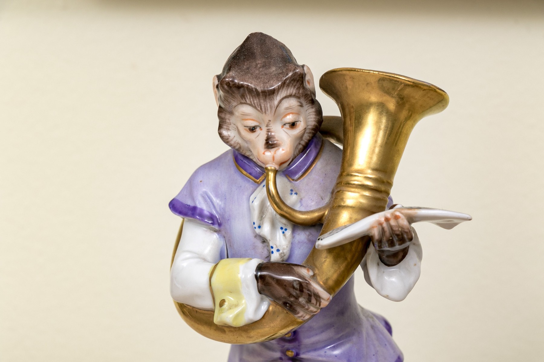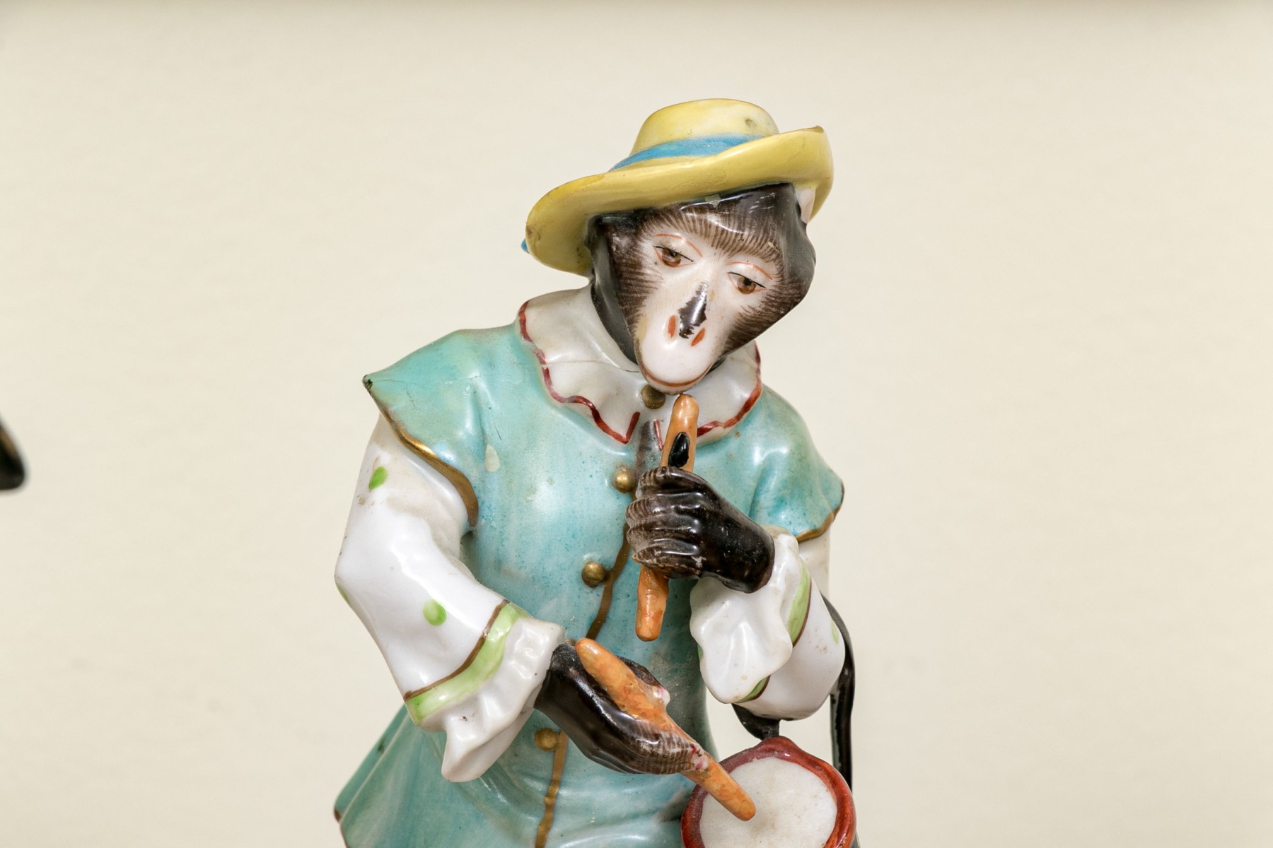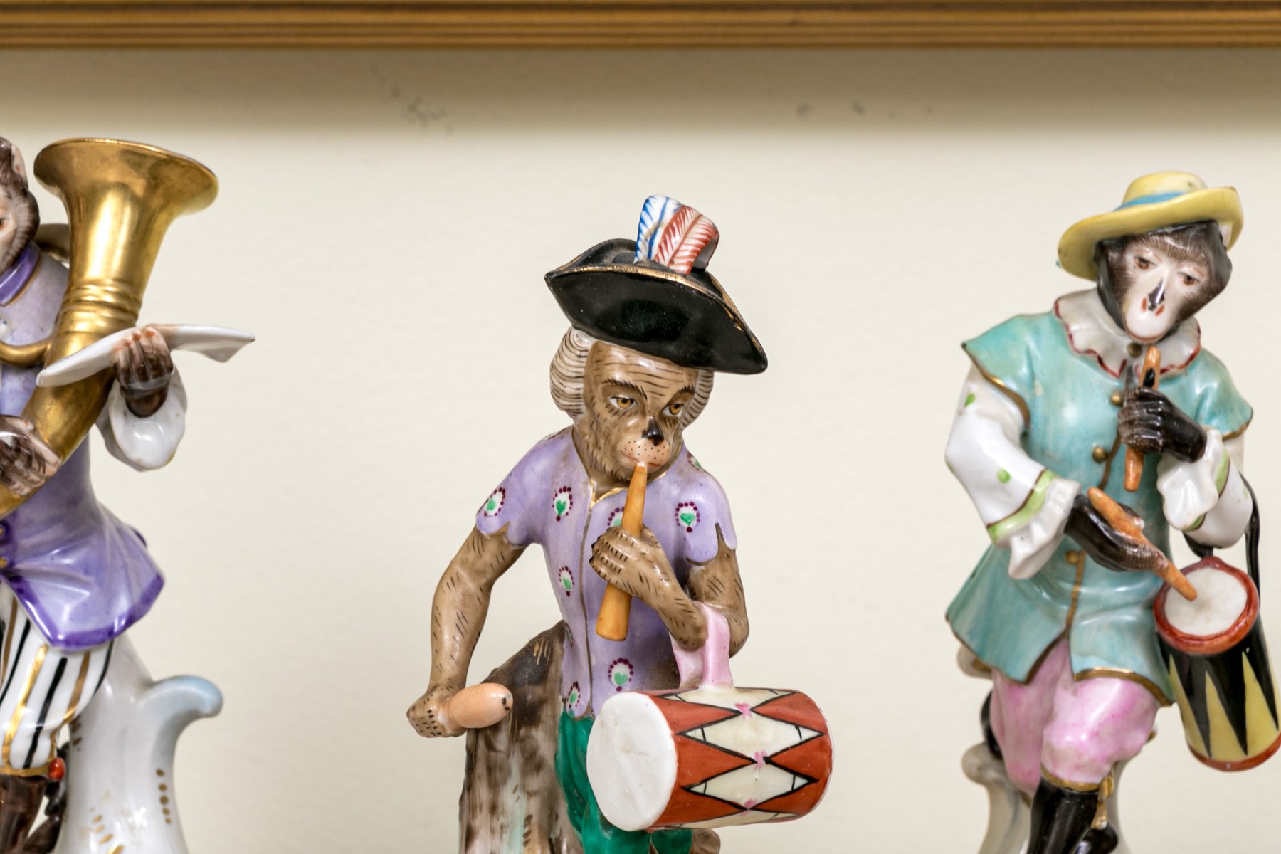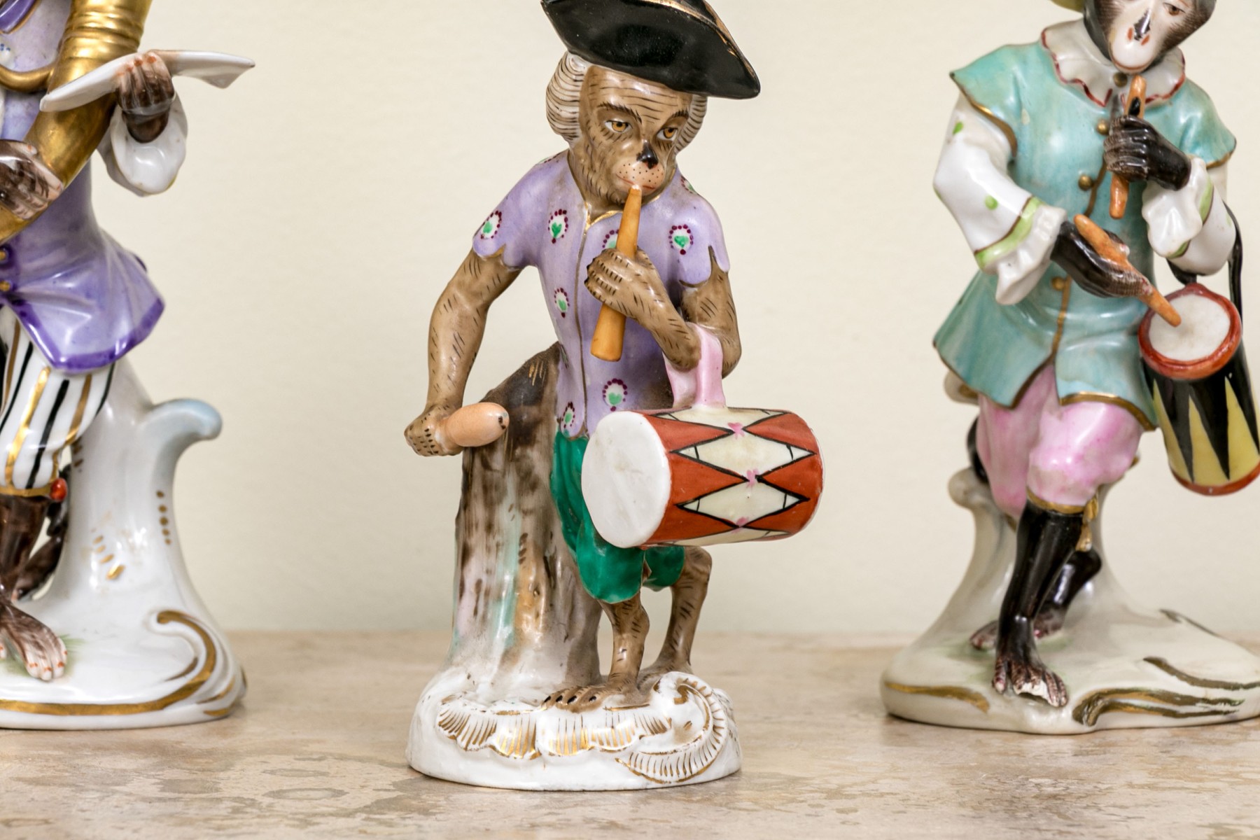 The assembled collection of Continental handpainted porcelain monkey form musicians.