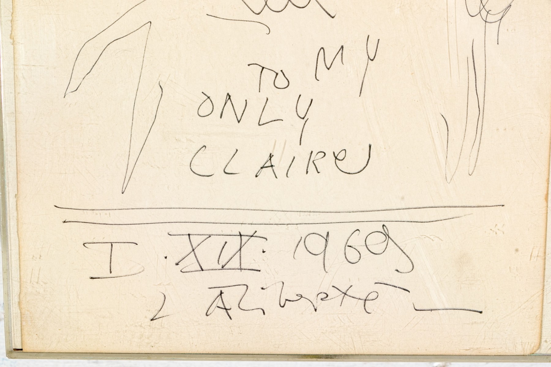 Presents well overall. Minor acid burning around the edge of the pencil drawing.