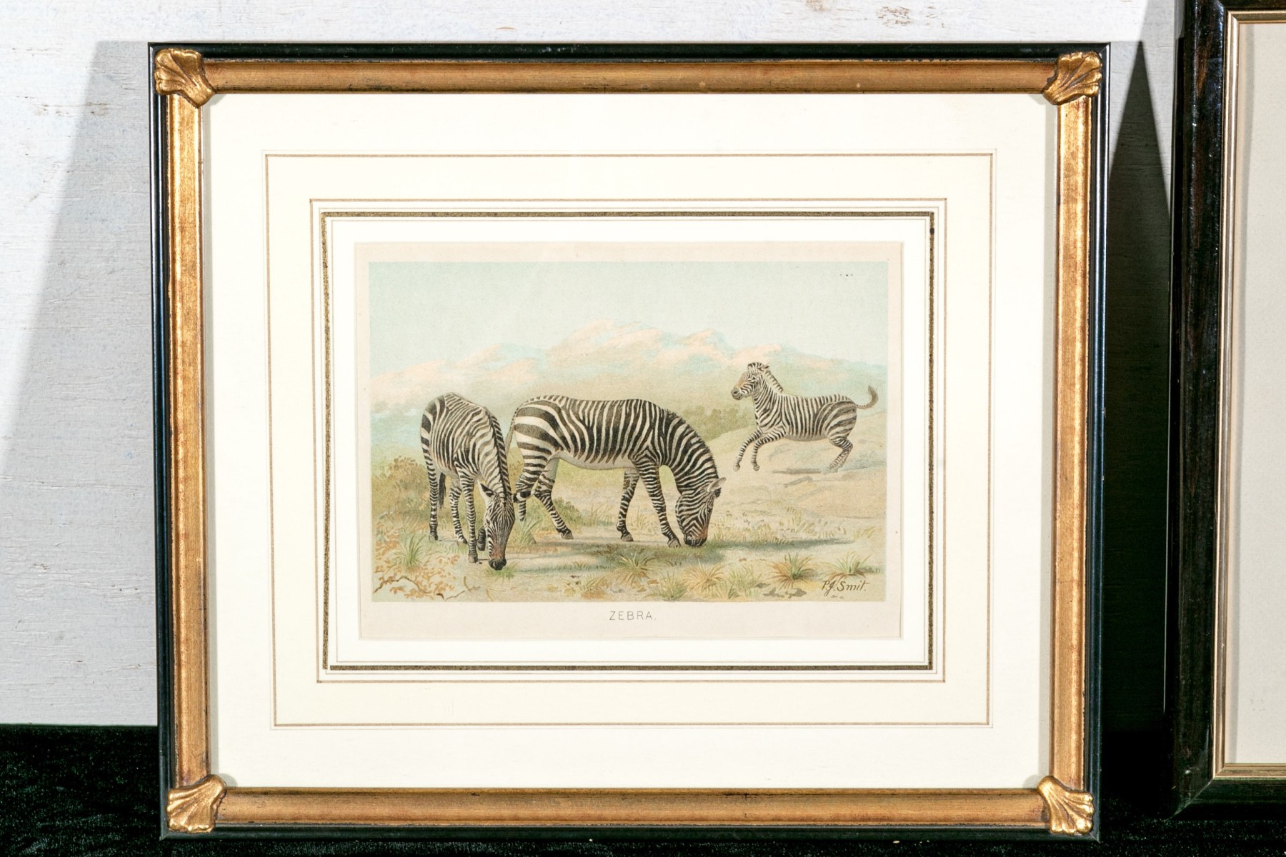 A Pierre Jacques Smit (Dutch-English, 1863-1960) "Zebra" print beautifully matted and displayed in a black and gilt J. Pocker frame.