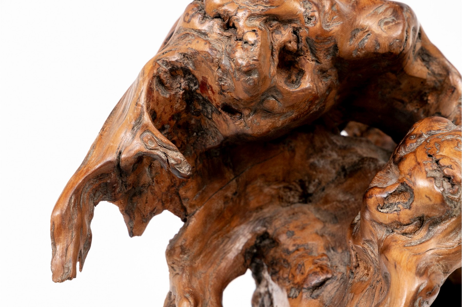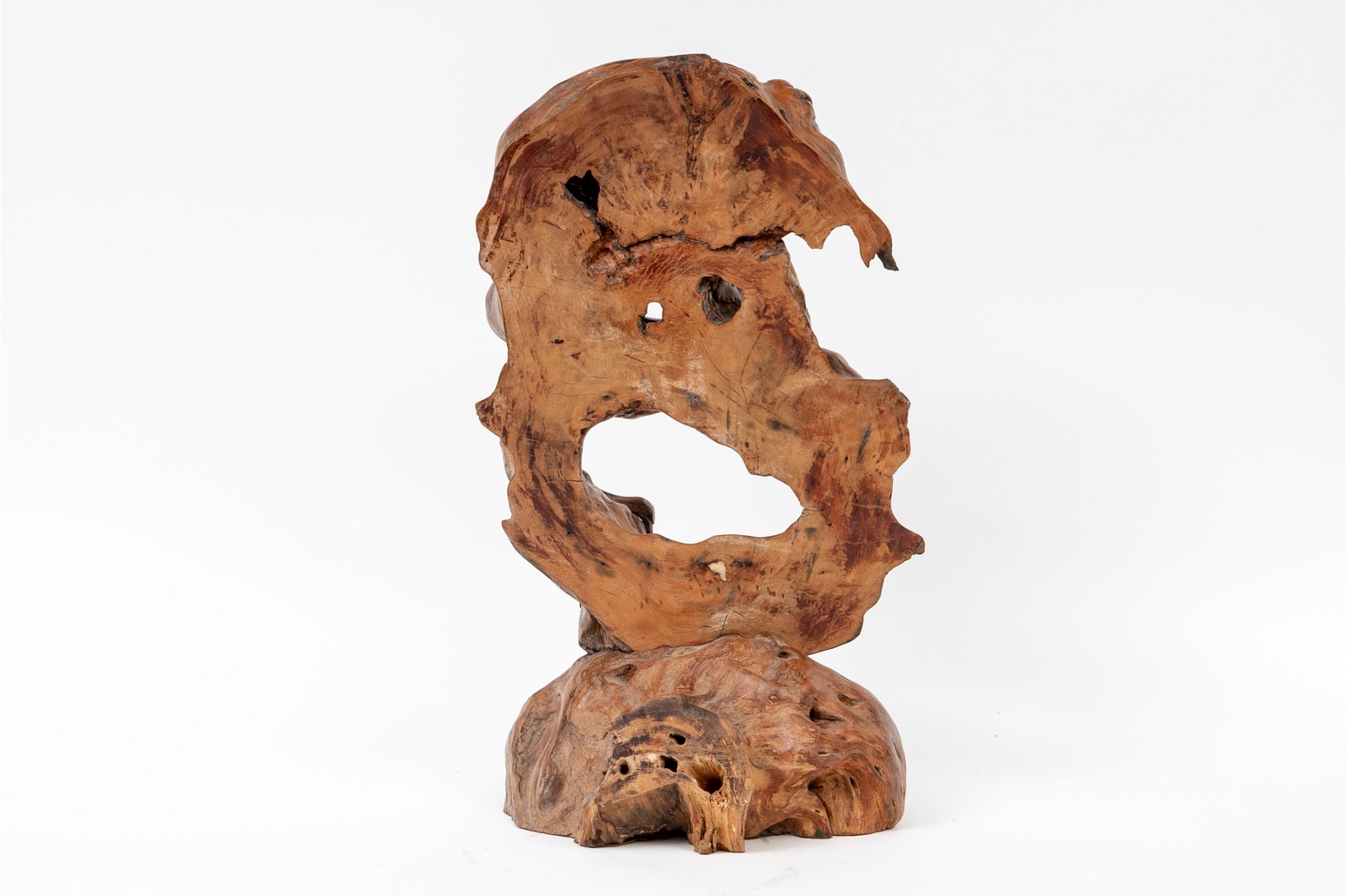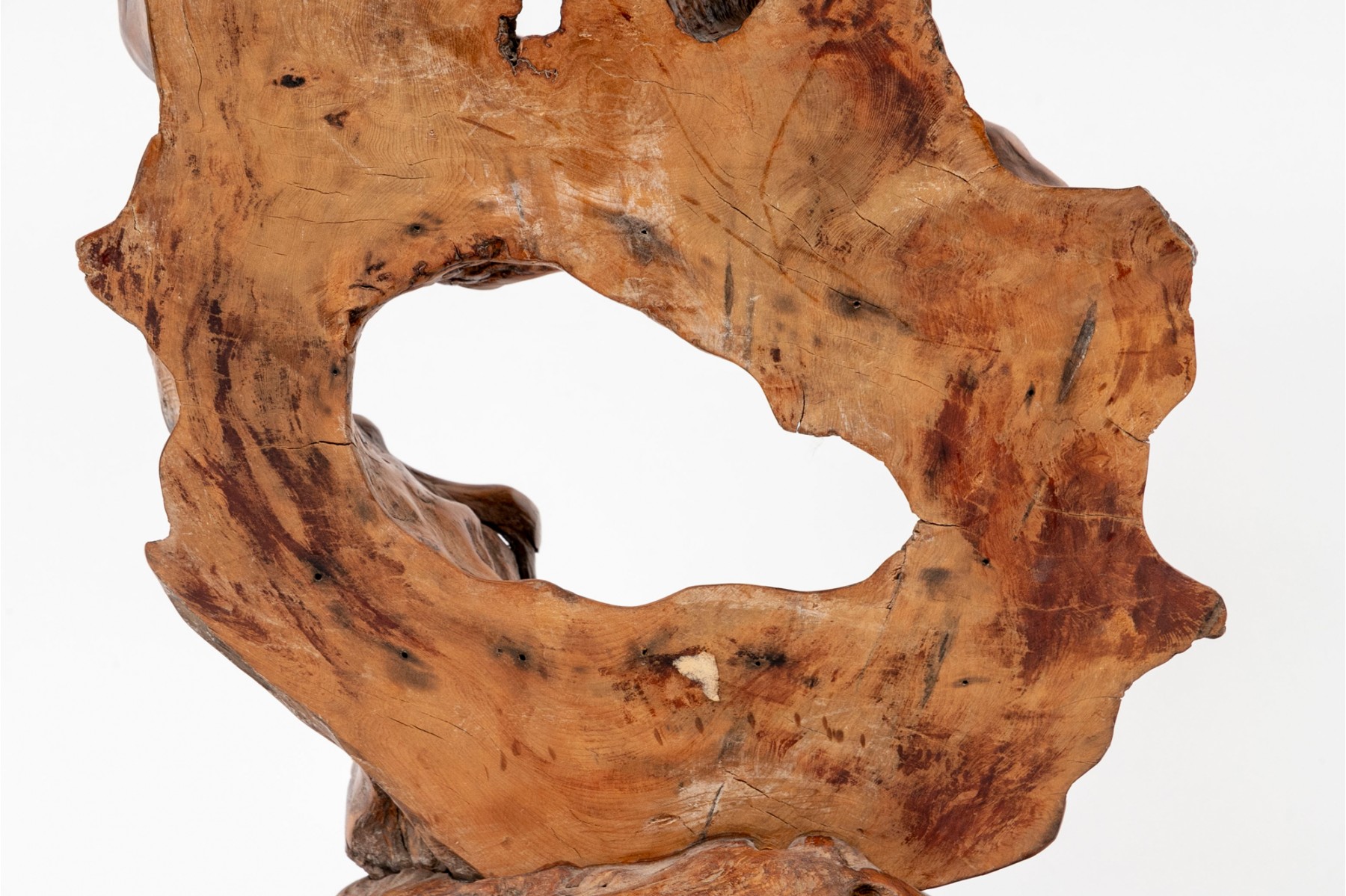 Unsigned. Two natural gnarled pieces of wood made into a sculpture.