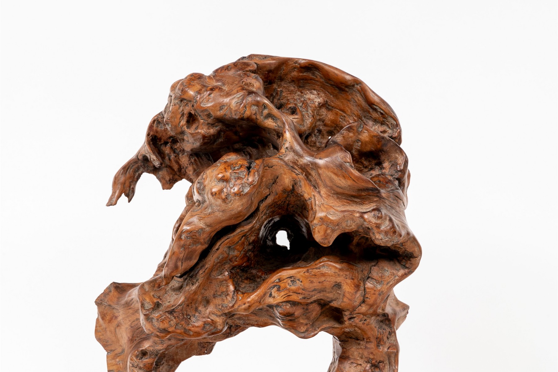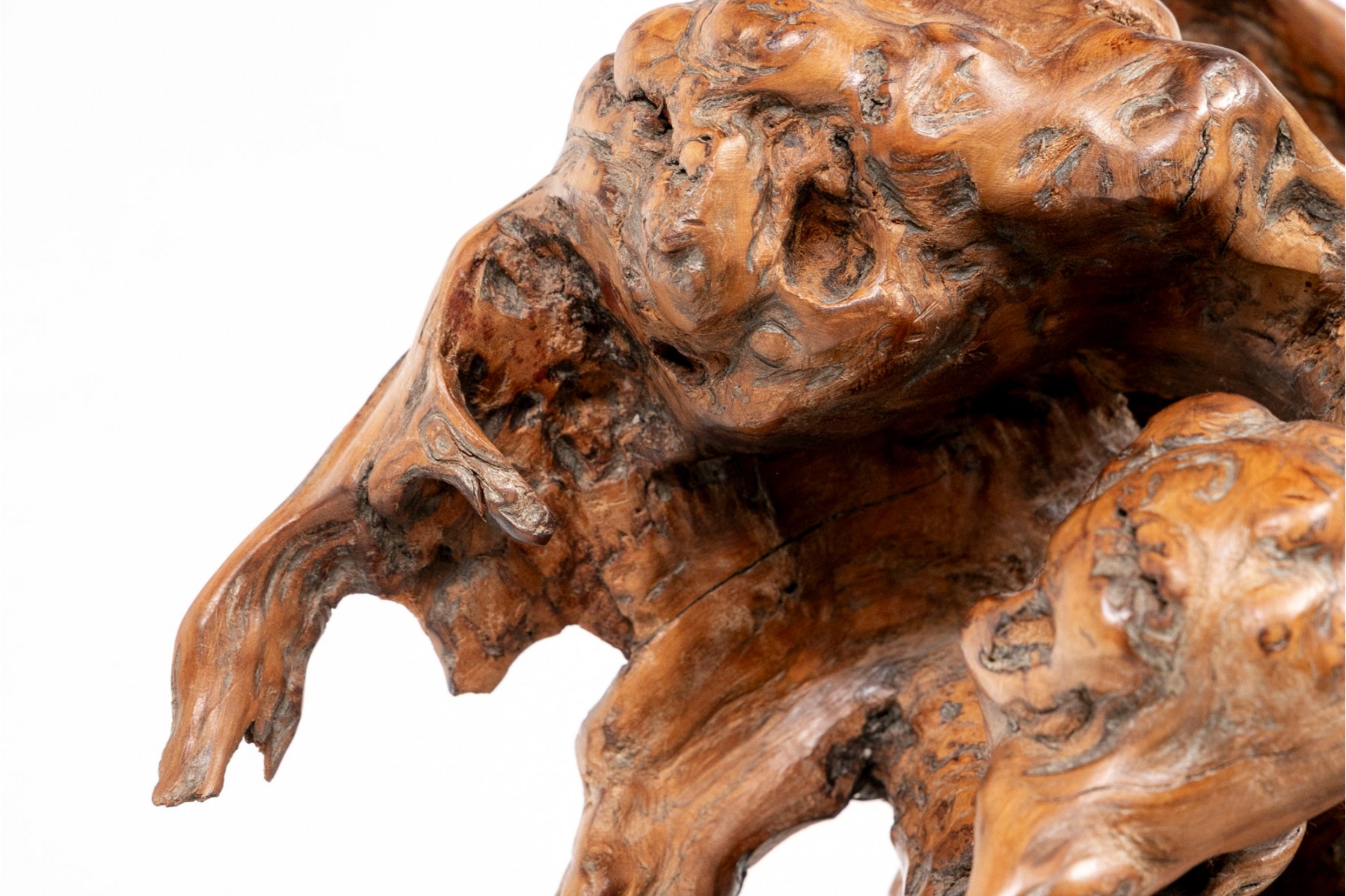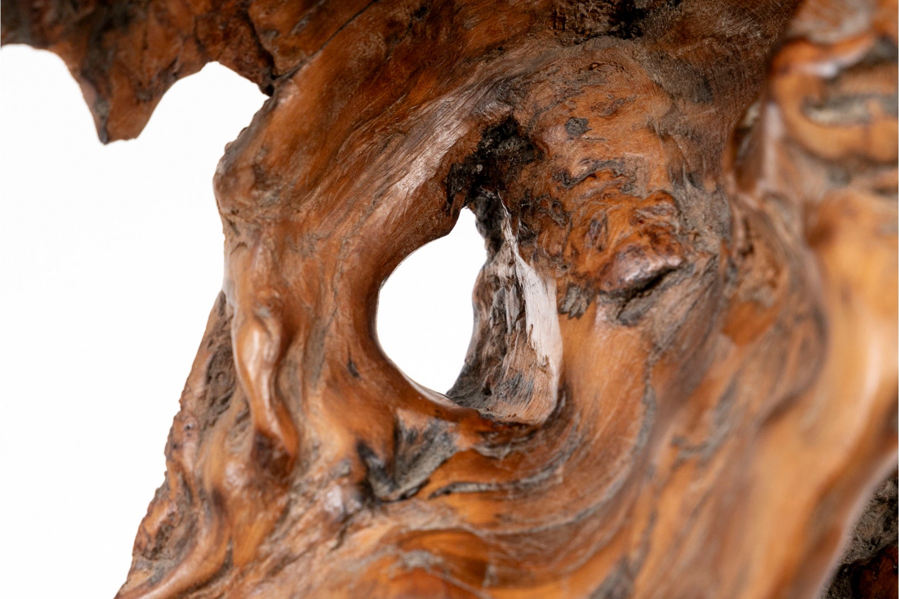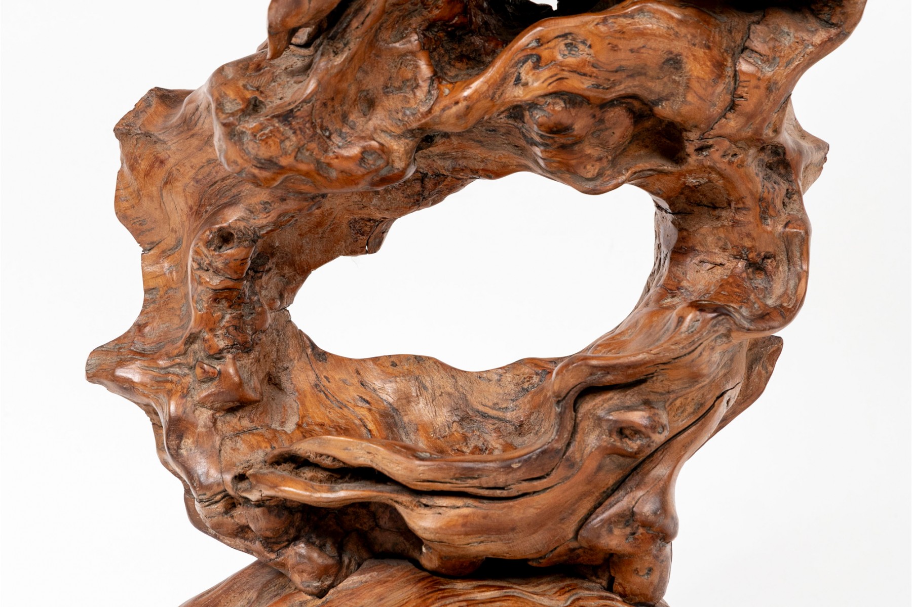 Unsigned. Two natural gnarled pieces of wood made into a sculpture.