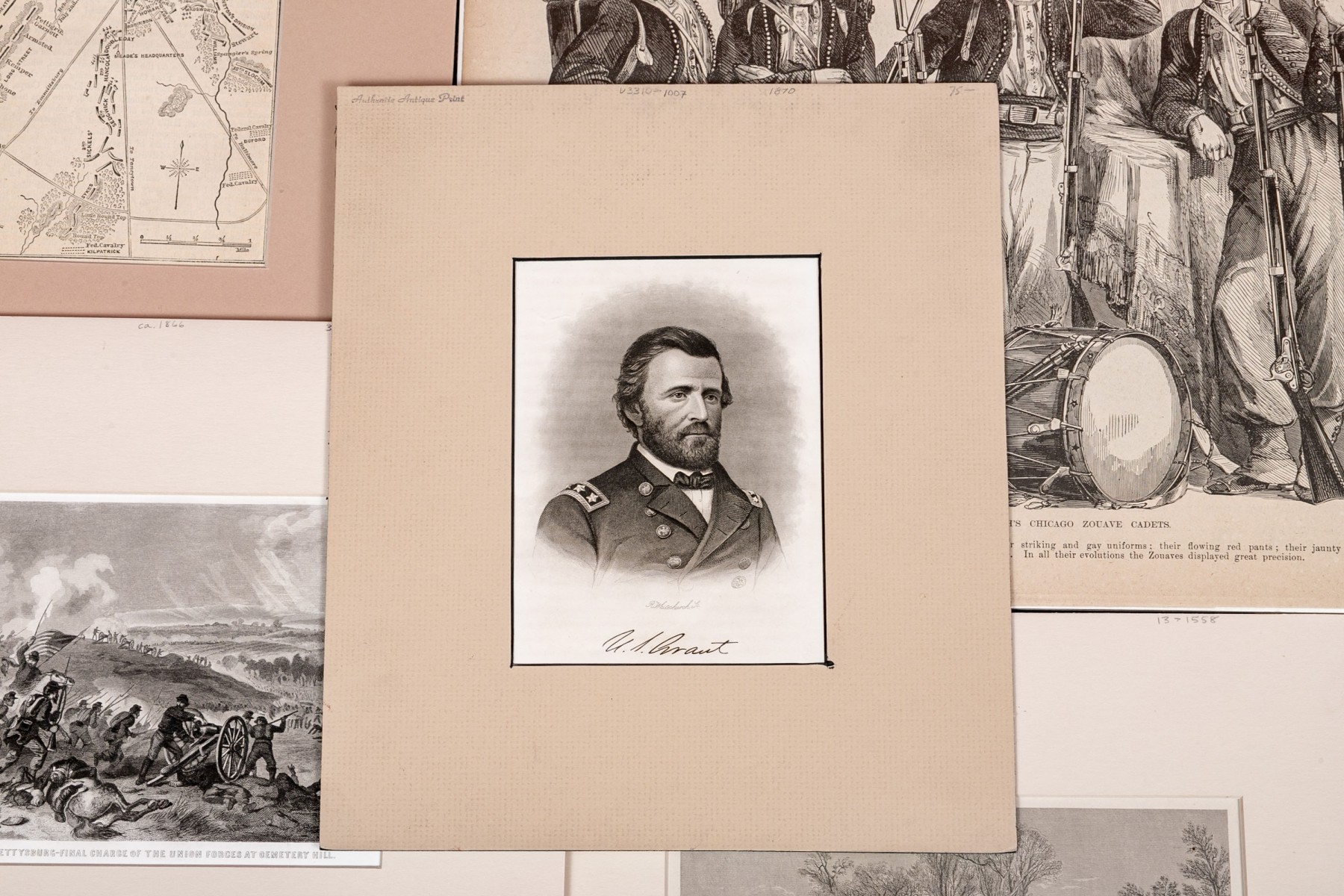 A wide variety of assorted prints depicting numerous subject matter, including war time images of soldiers together, portraits and other related themes.