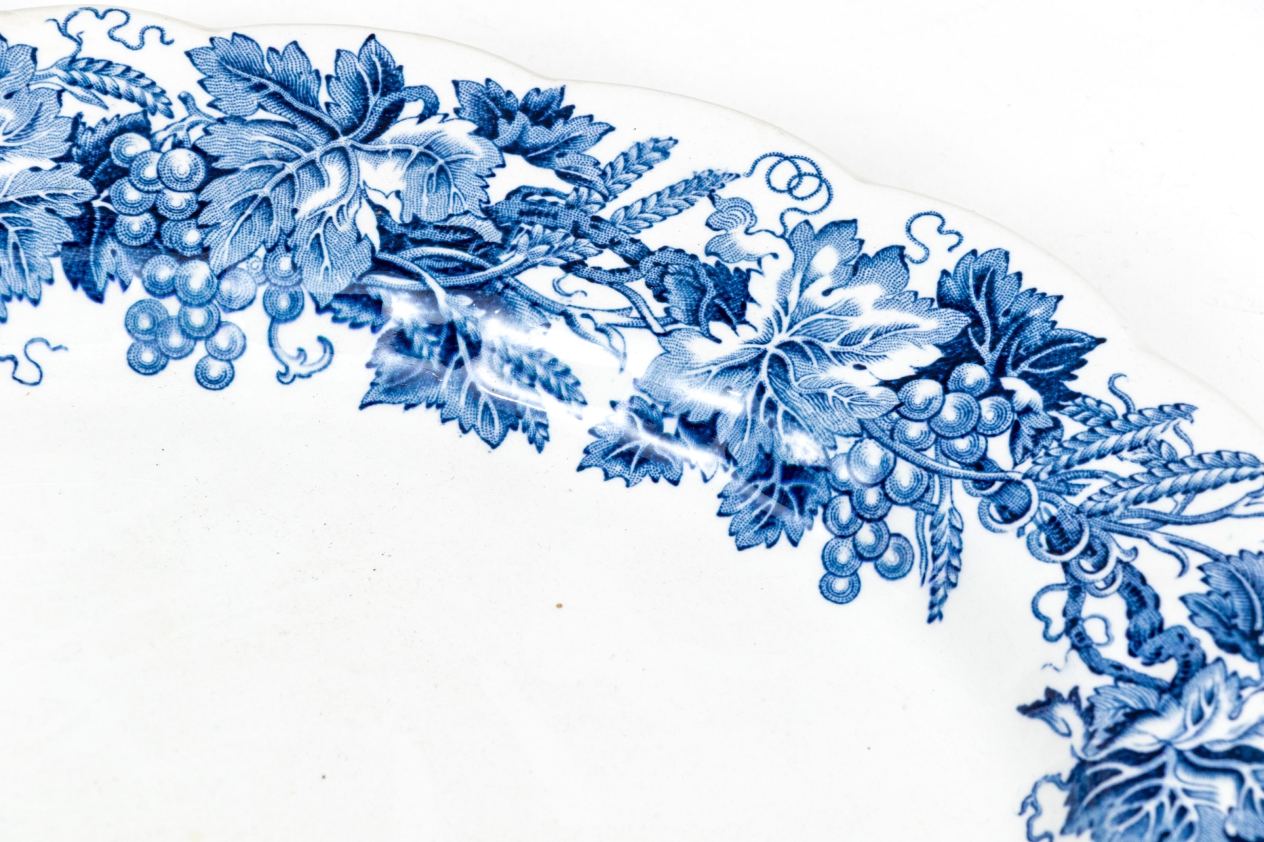 Lastly with an English blue and white Booths "Vine & Wheat" Serving platter: 14" l