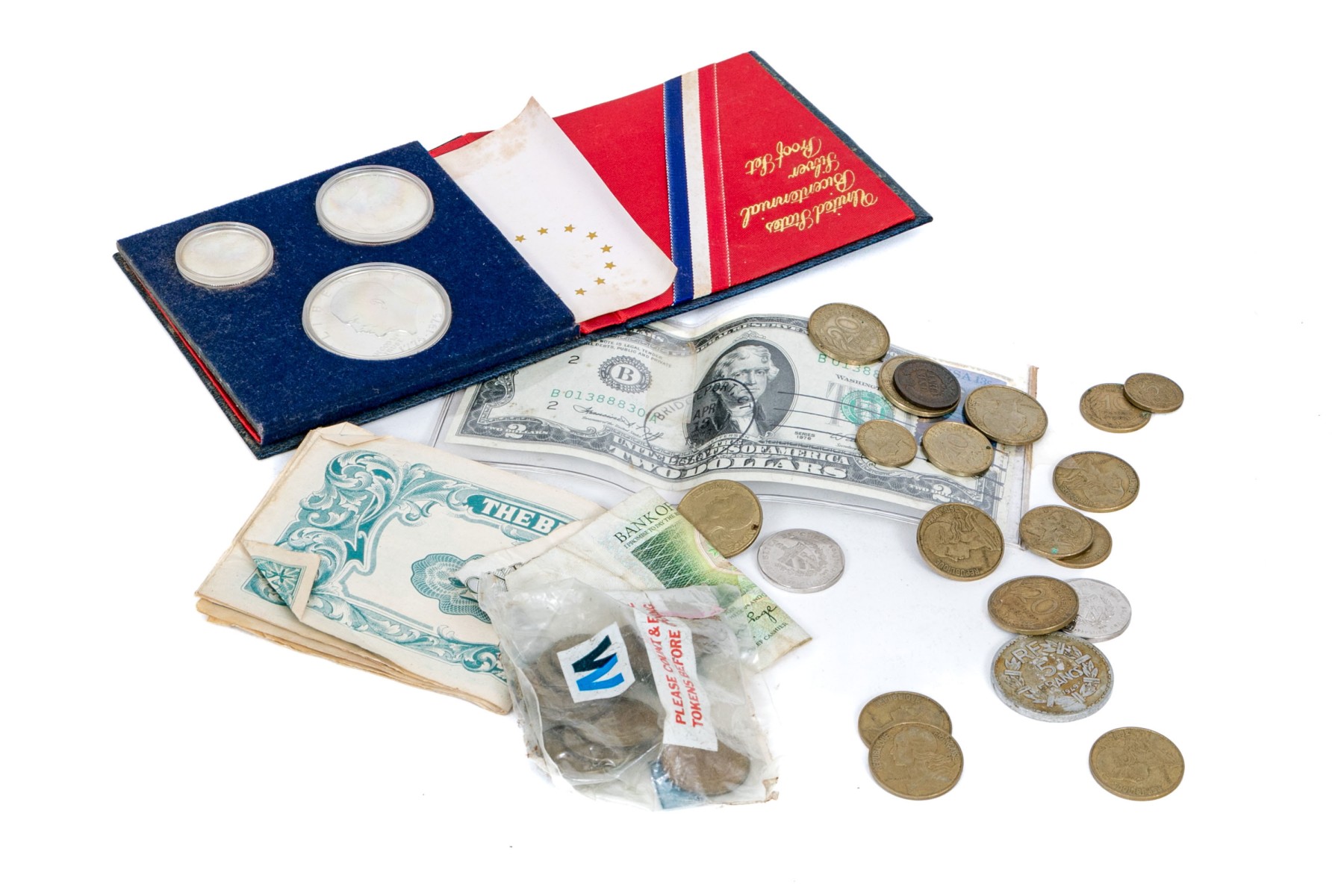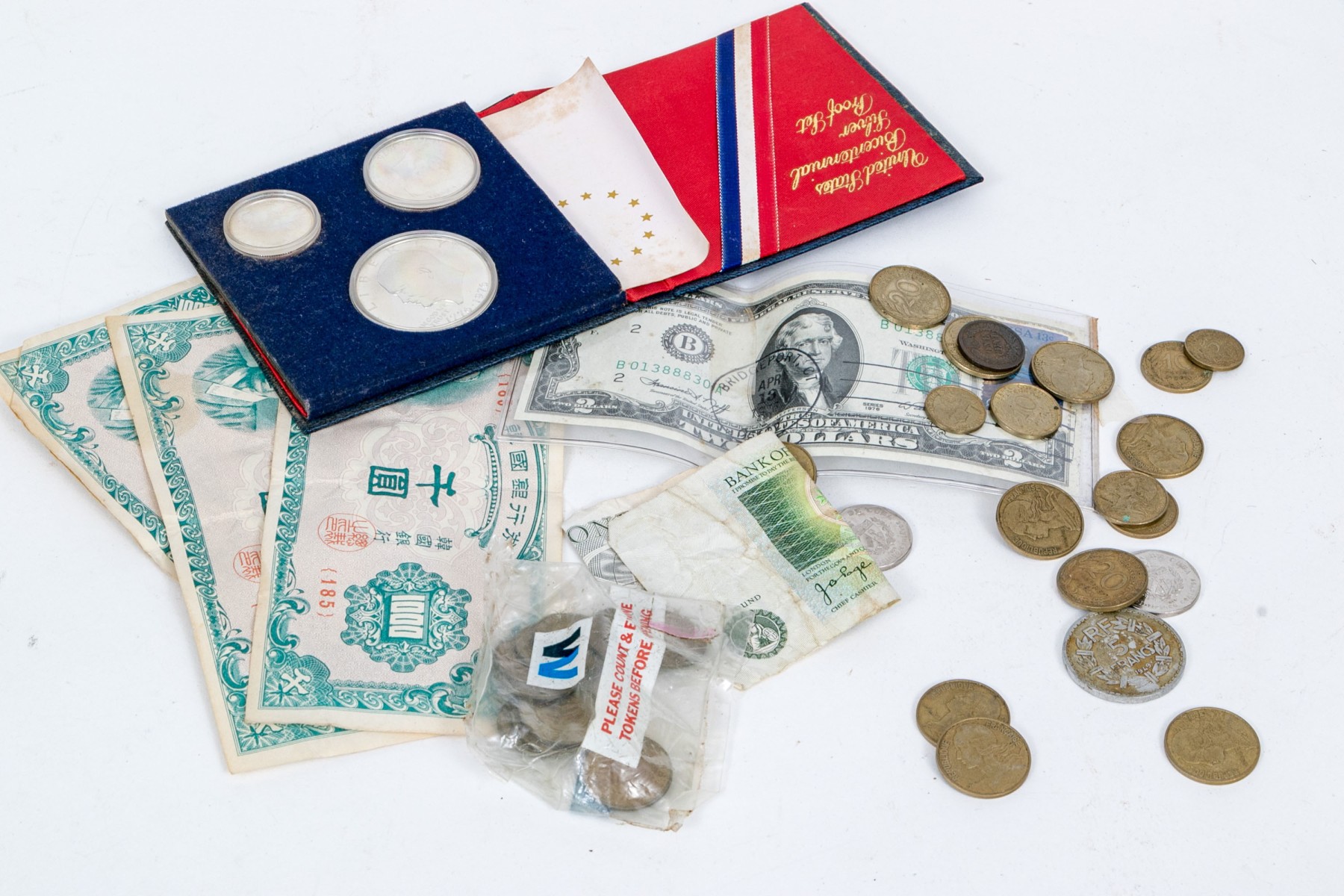 Paper bills with creases and wear commensurate with age and use. Please review the photos as they are part of the condition report.