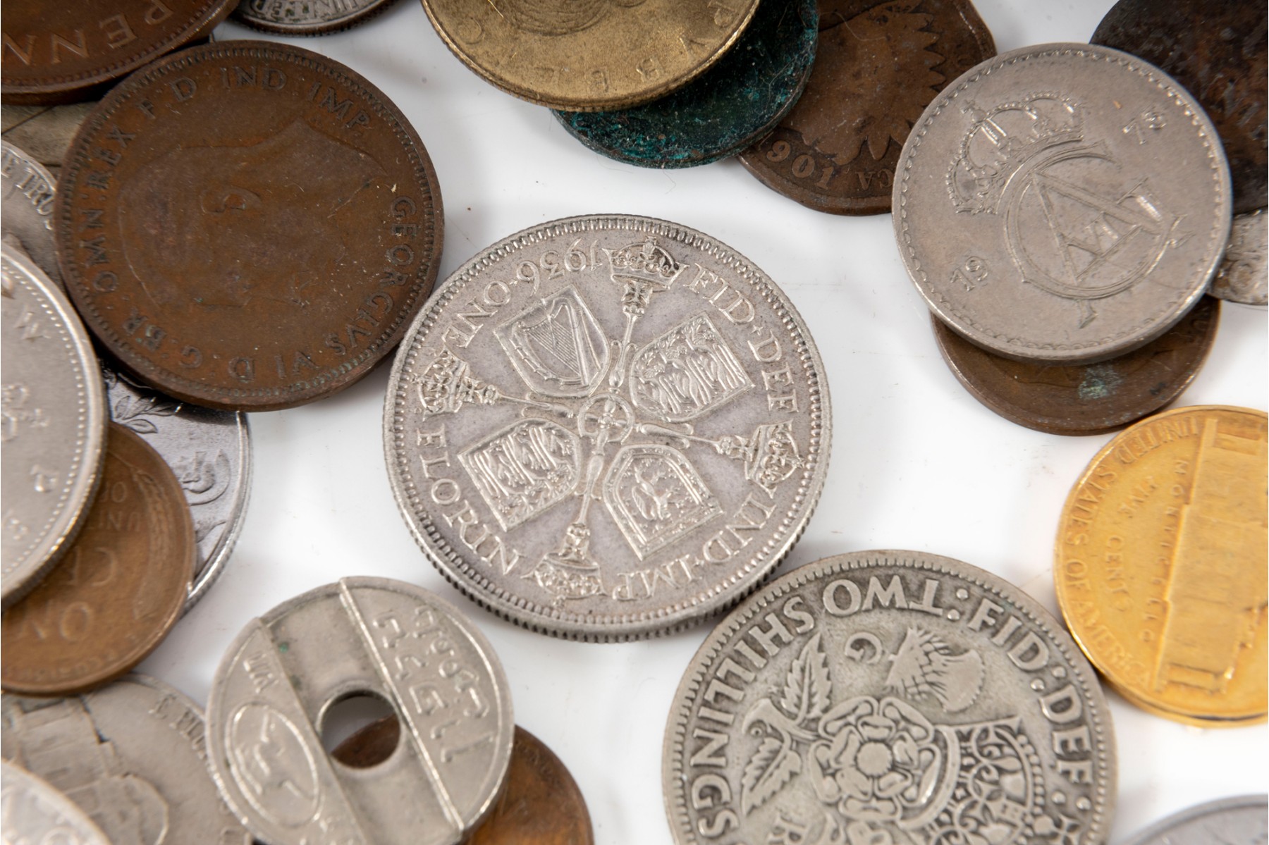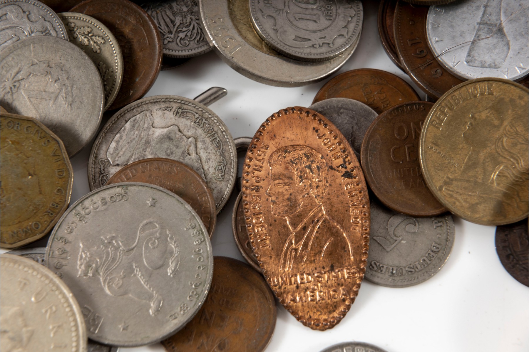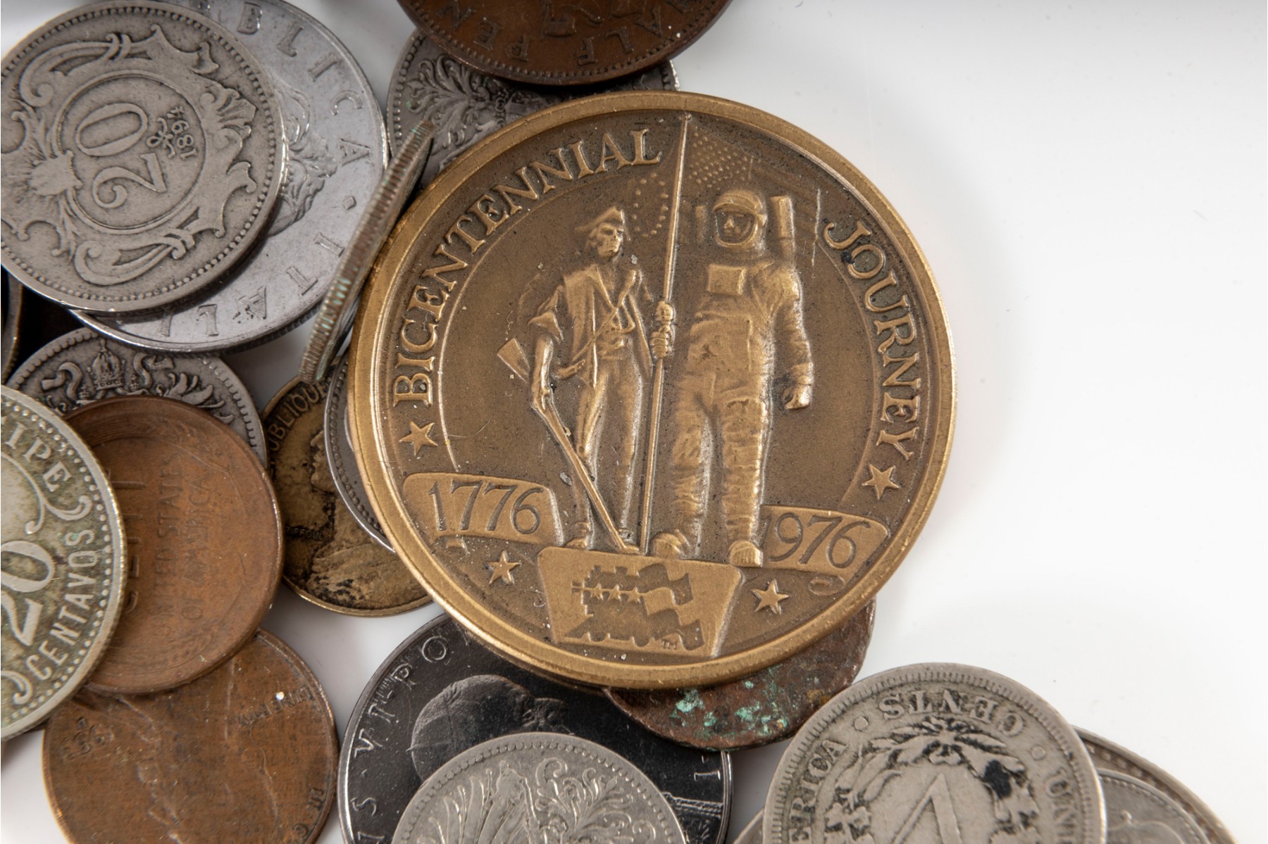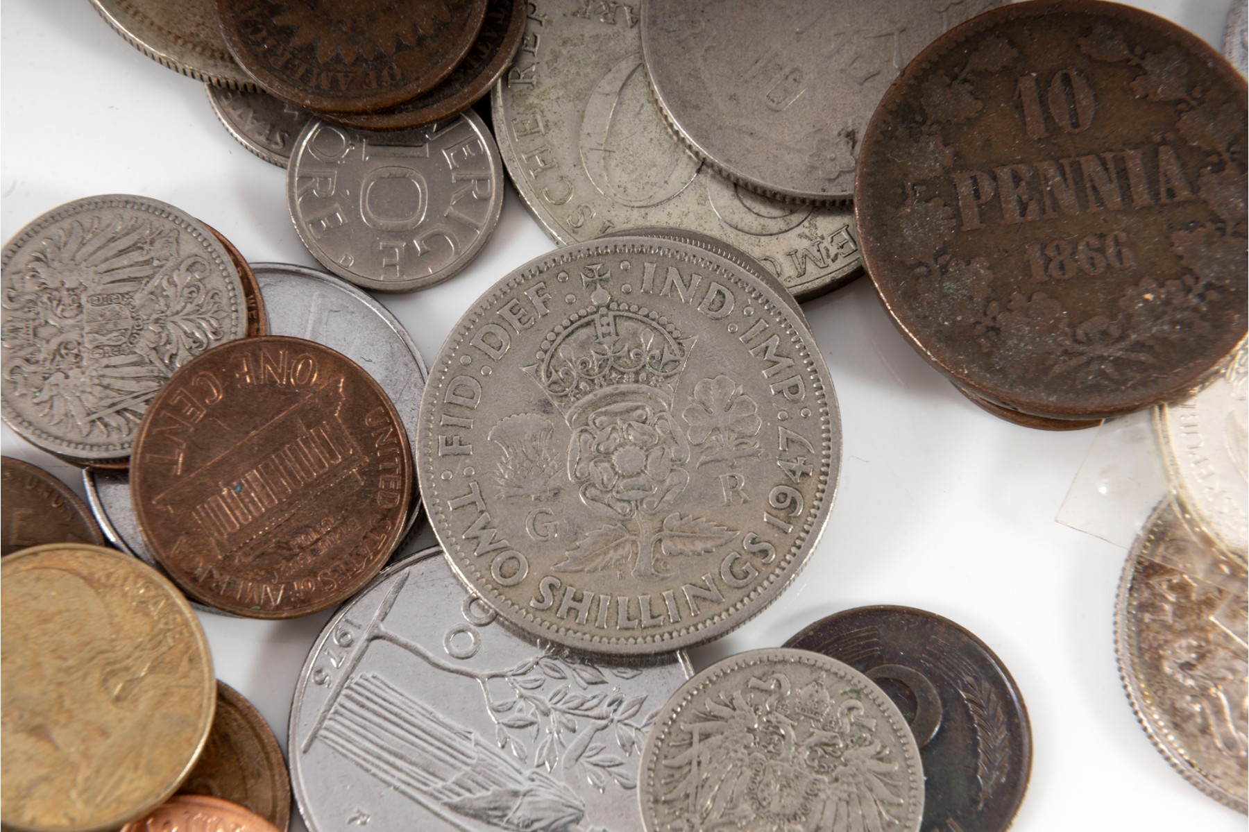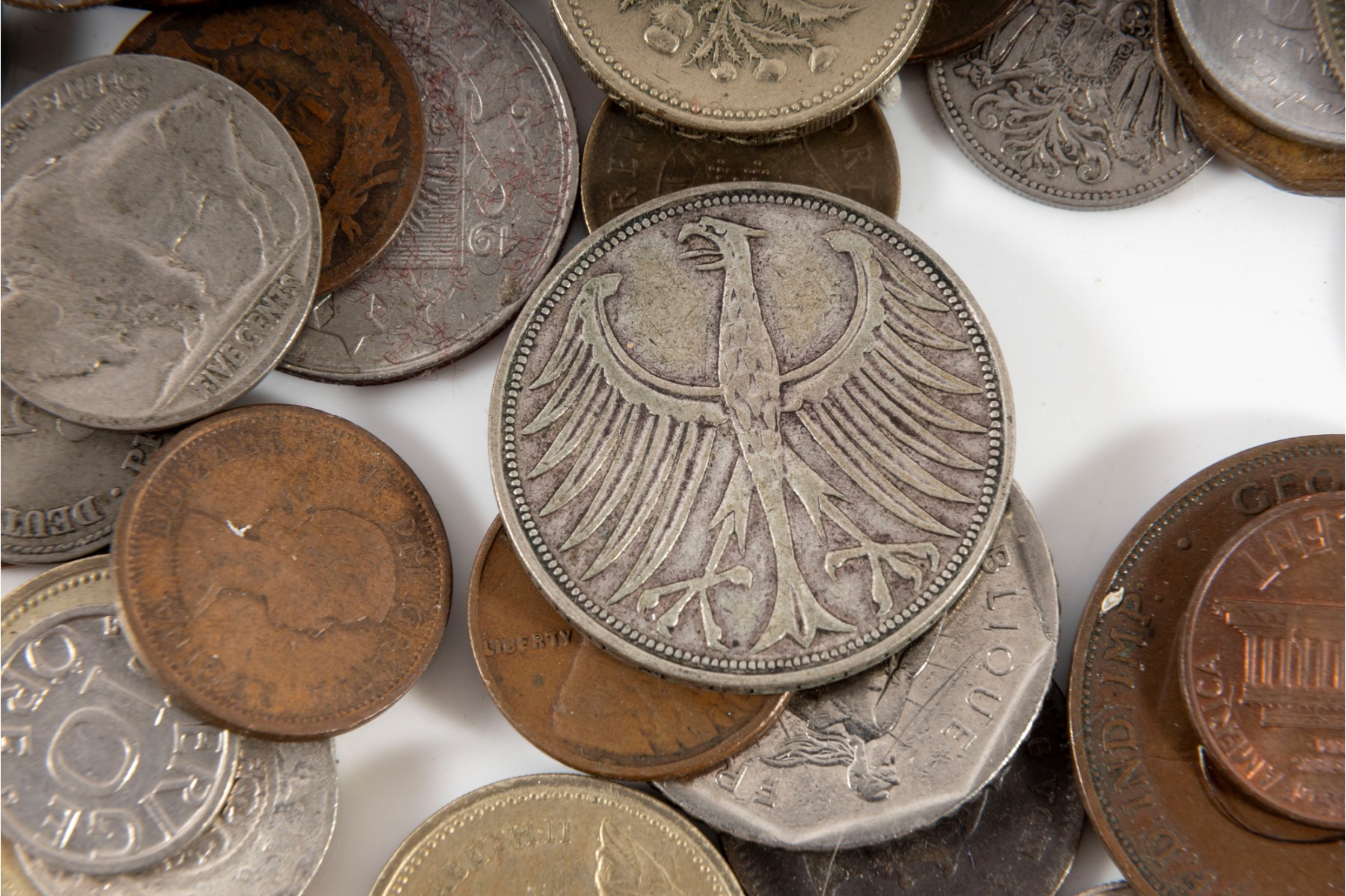This treasure trove of assorted foreign coins and tokens offers an eclectic mix of currency from around the world. The collection features coins of varying sizes, shapes, and materials—ranging from copper, nickel, and brass to silver. Contents as shown and sold as is, see photos for details.