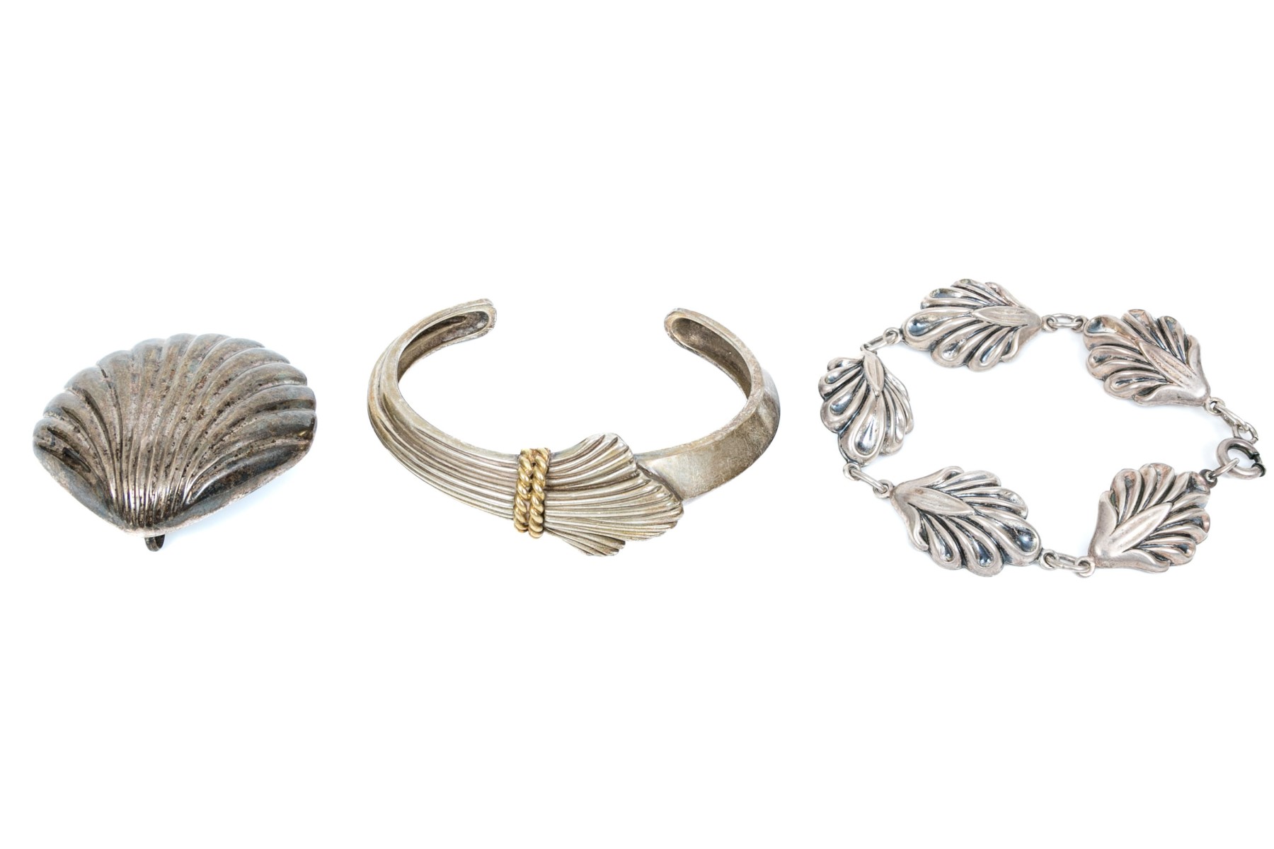 Assorted sterling silver lot of handsome shell motif jewelry pieces
