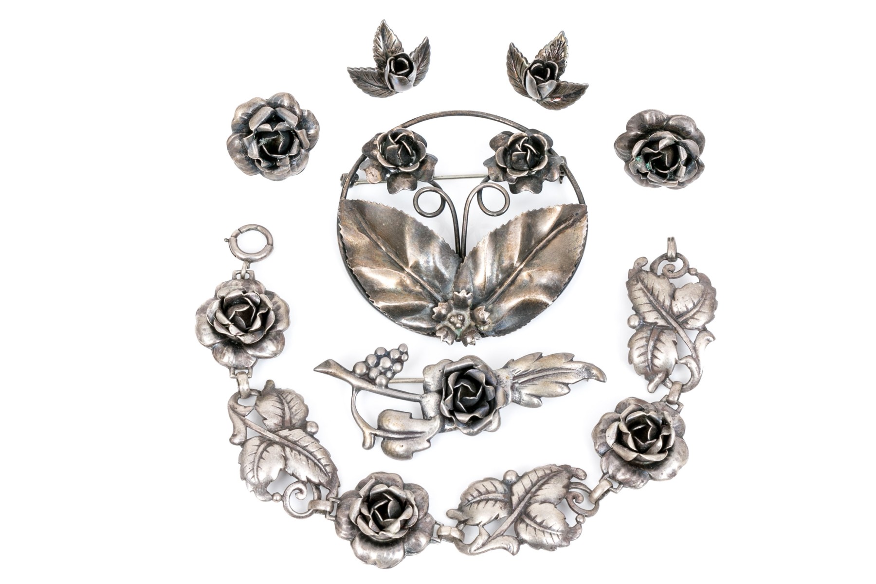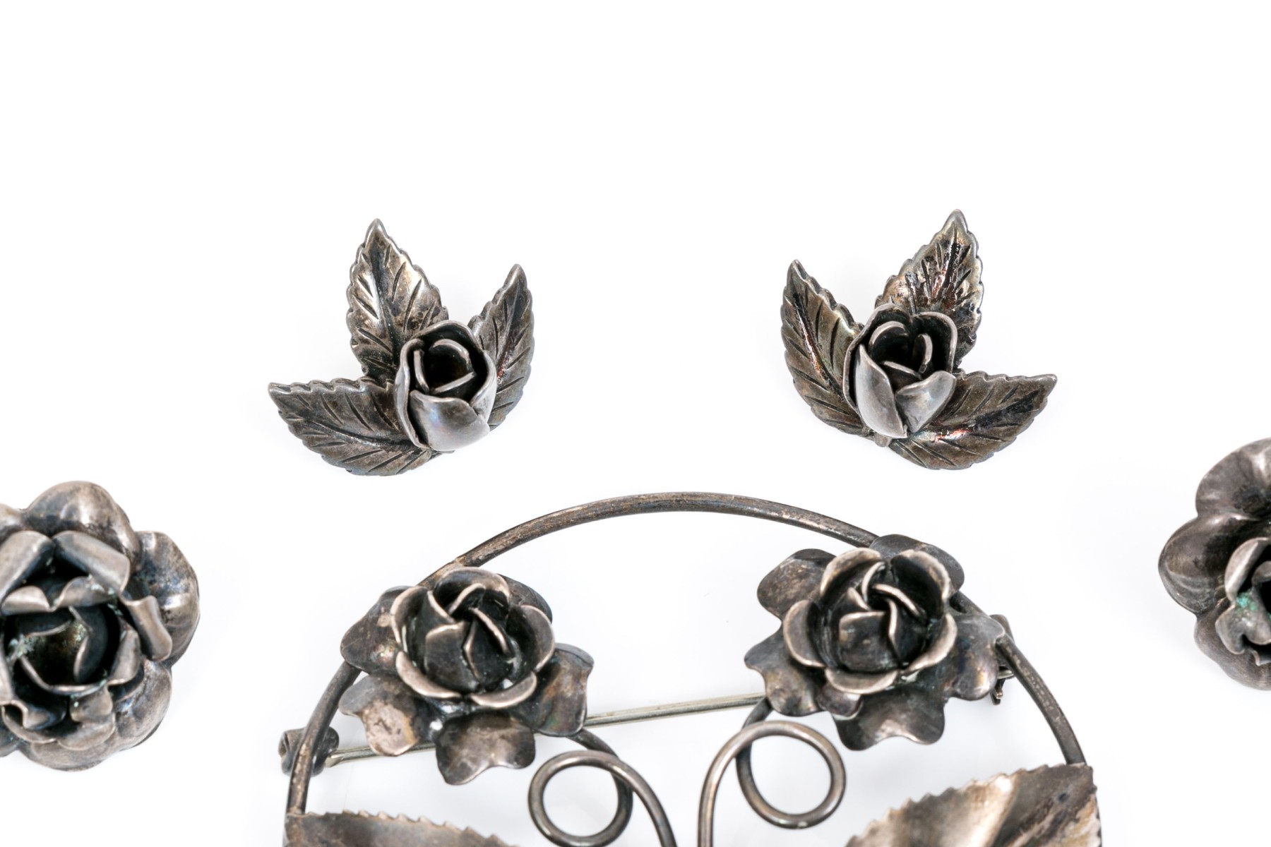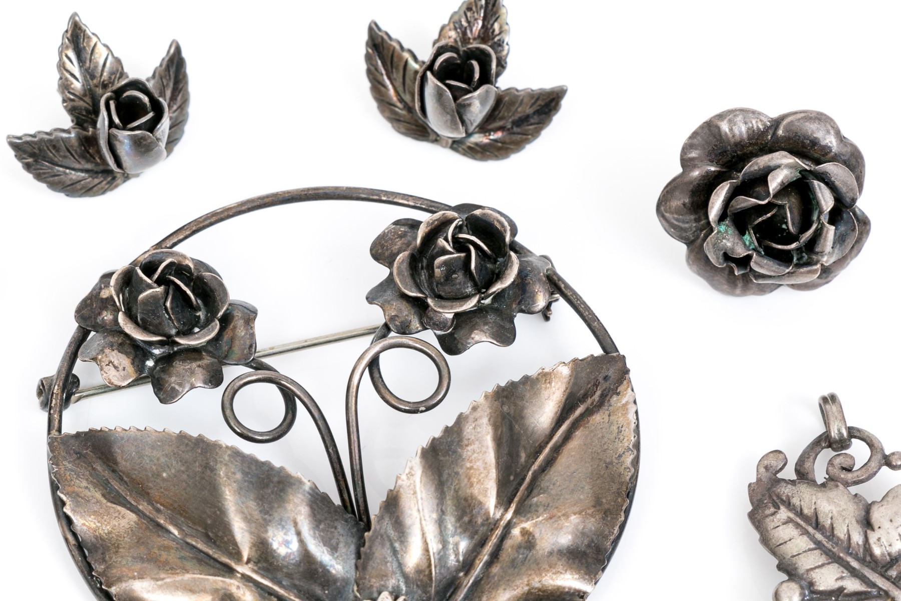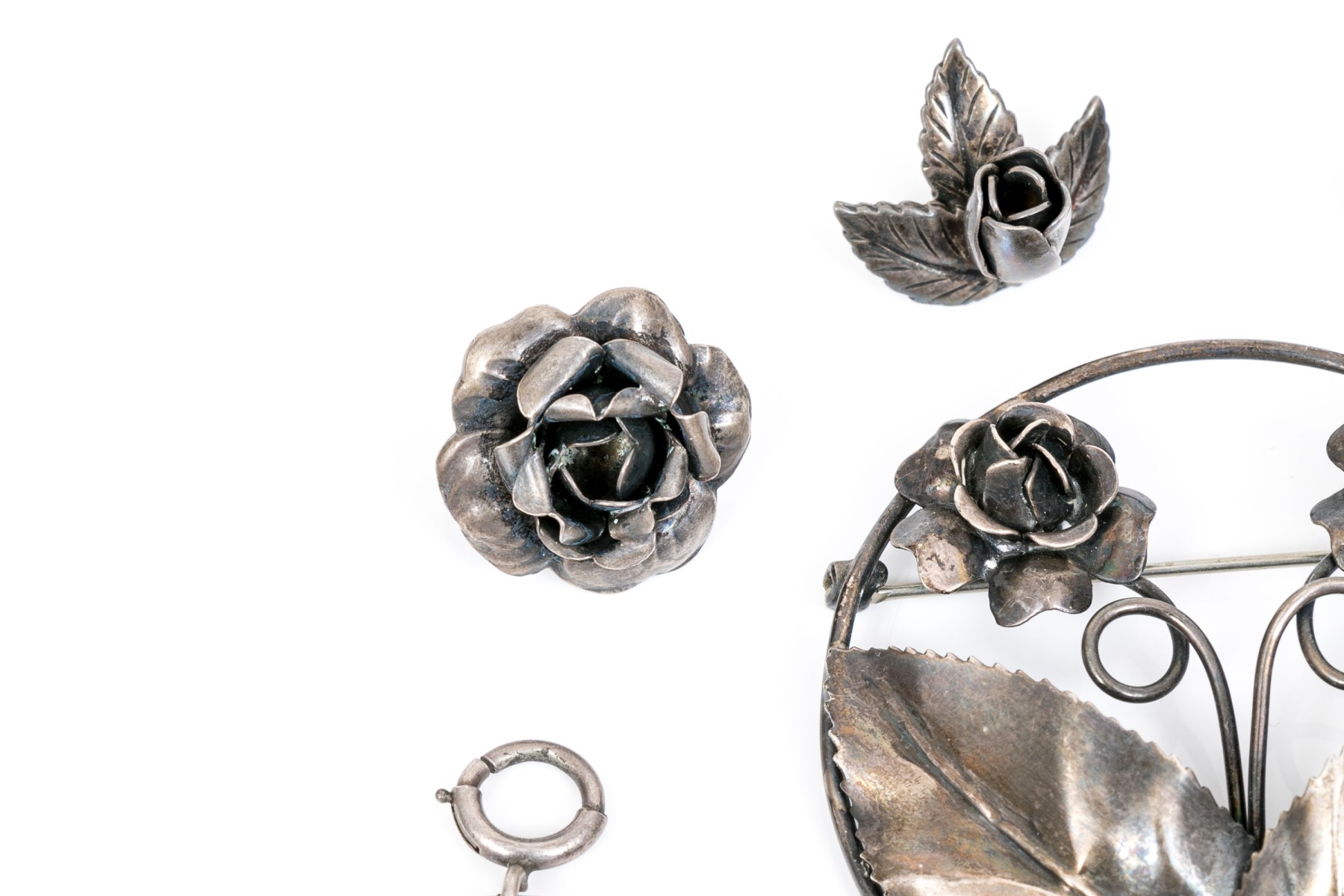 Assorted sterling silver lot of pretty rose motif jewelry pieces