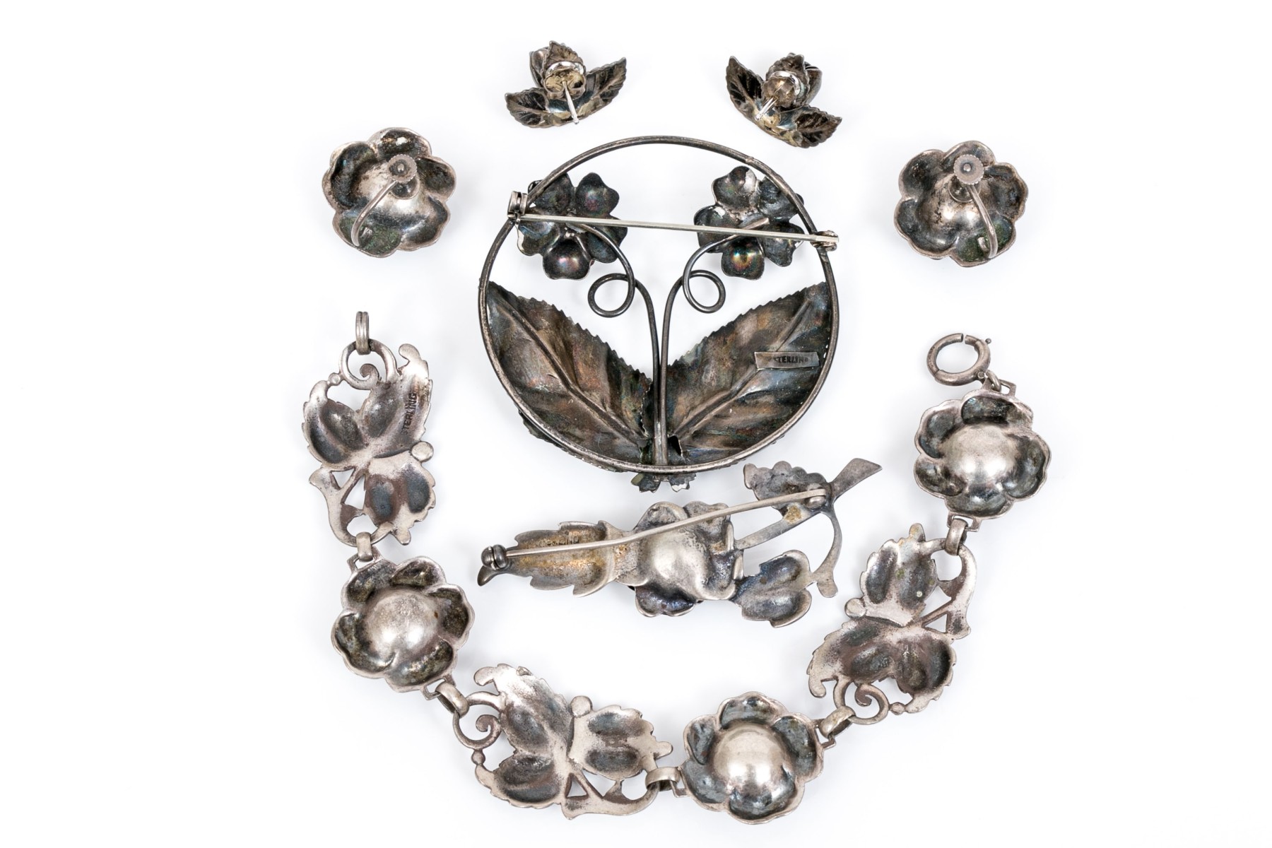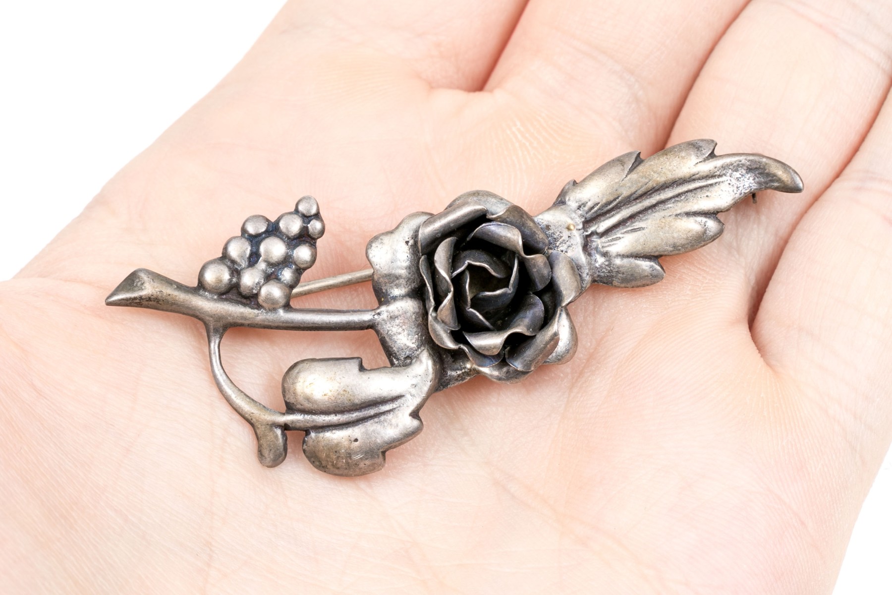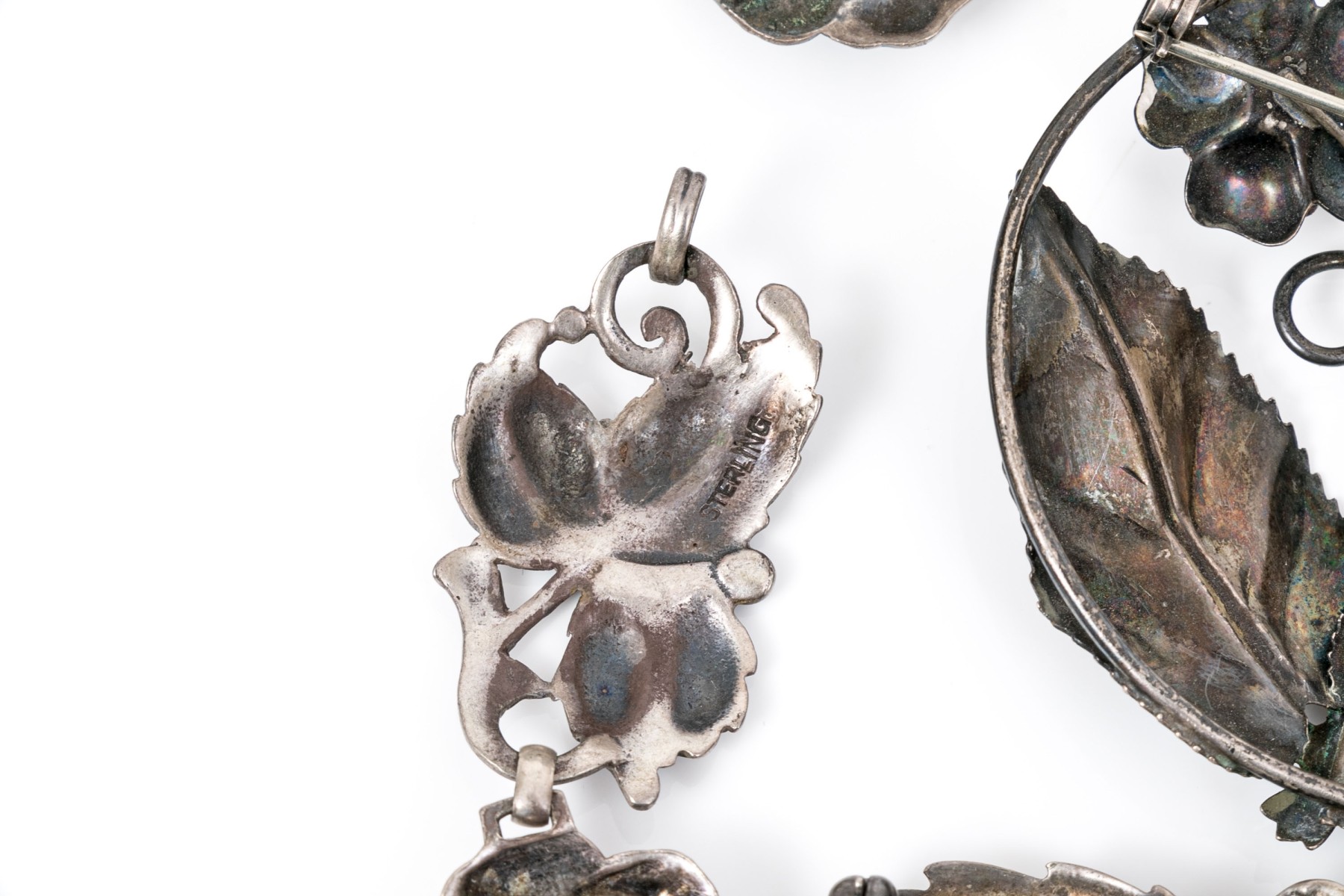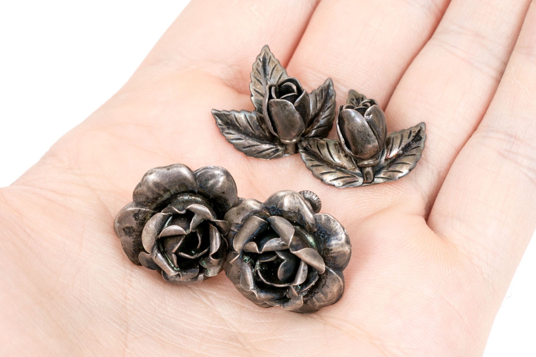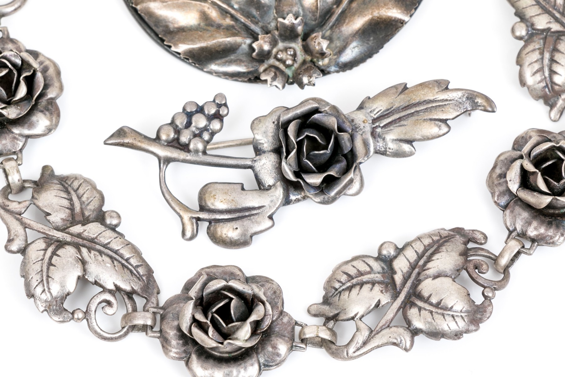 Assorted sterling silver lot of pretty rose motif jewelry pieces