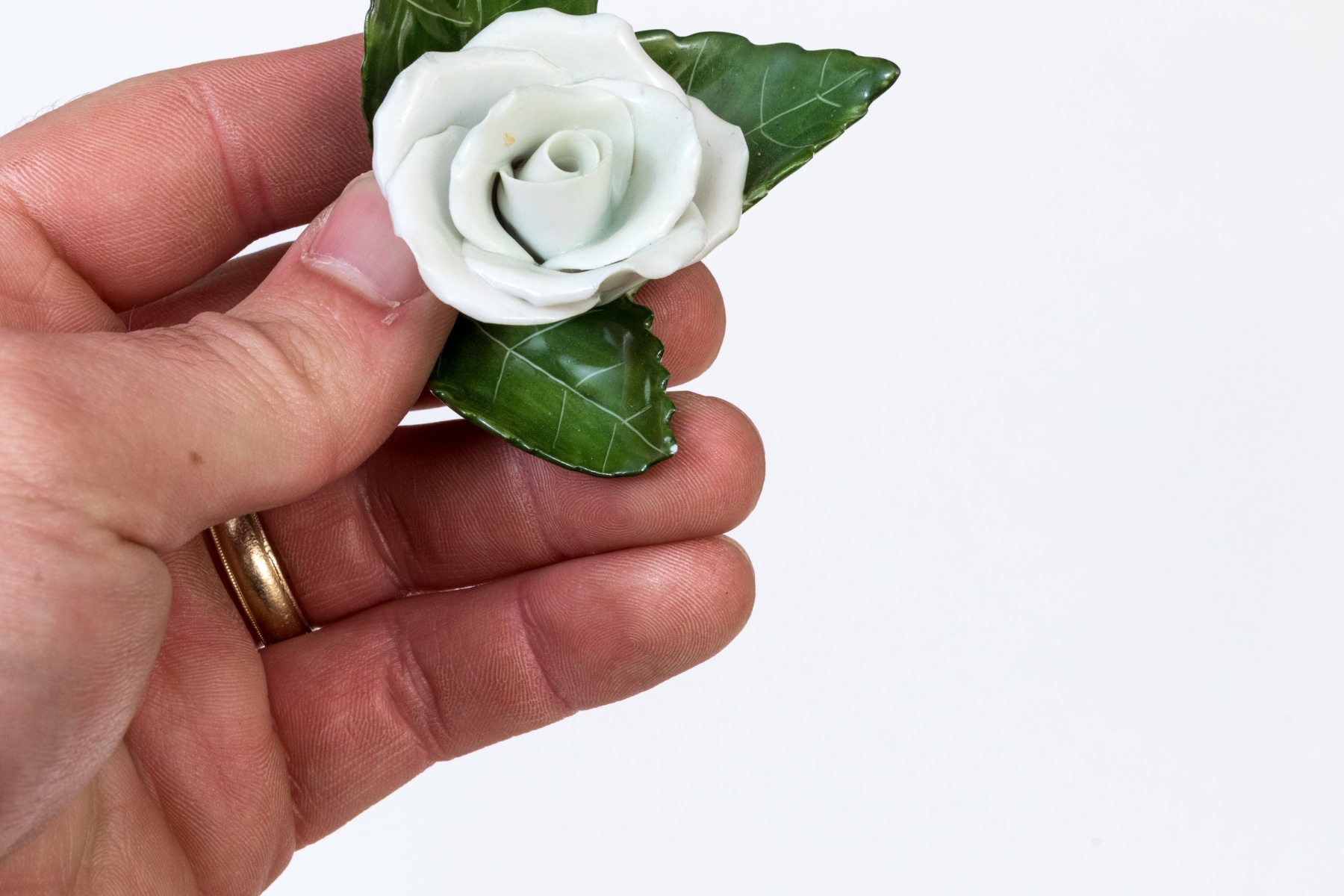 Herend floral garniture rose: 3"; tiny chip to end of leaf