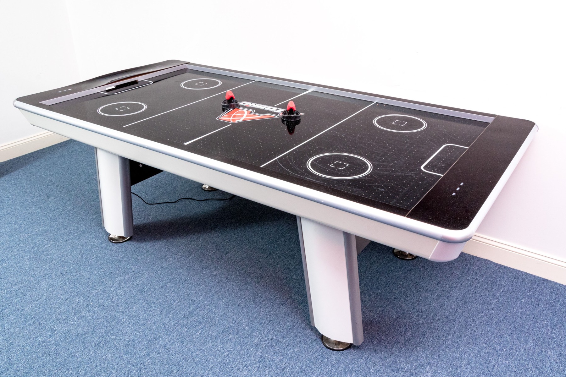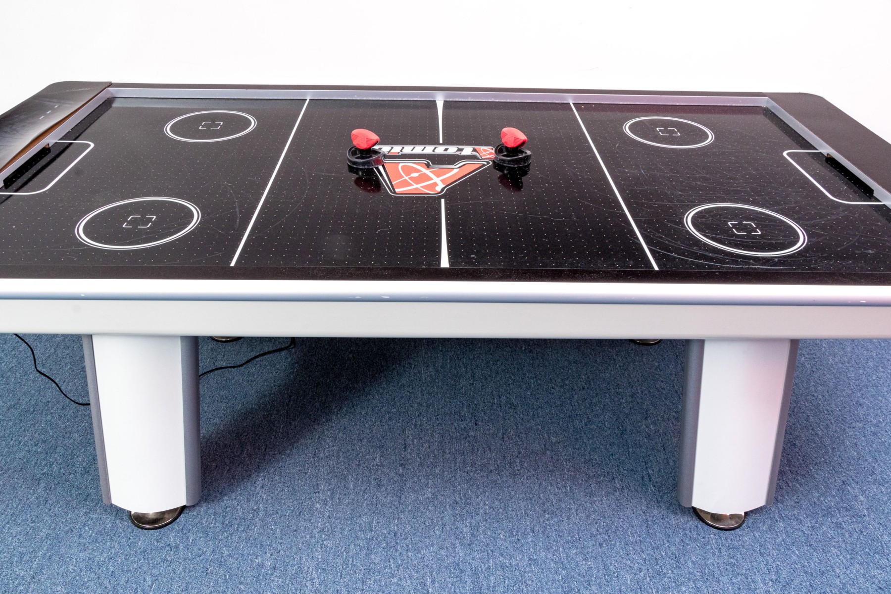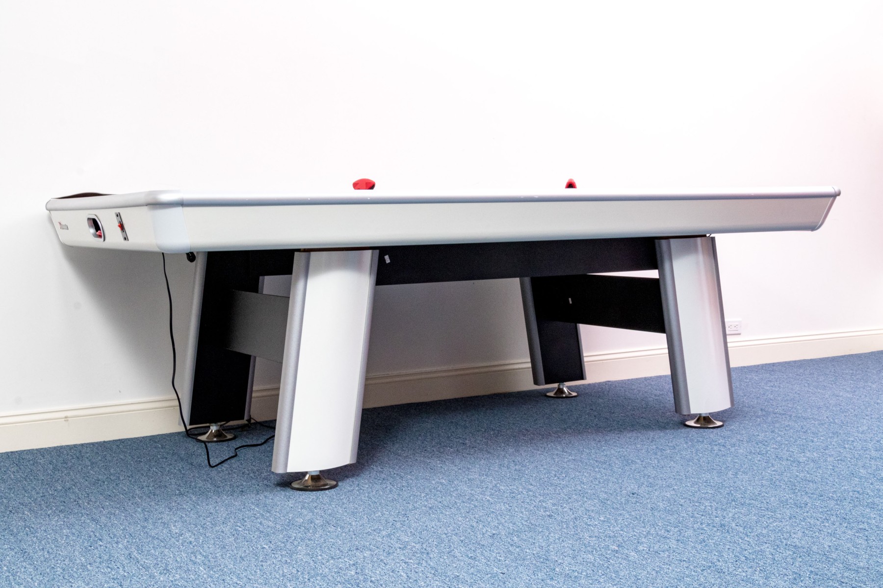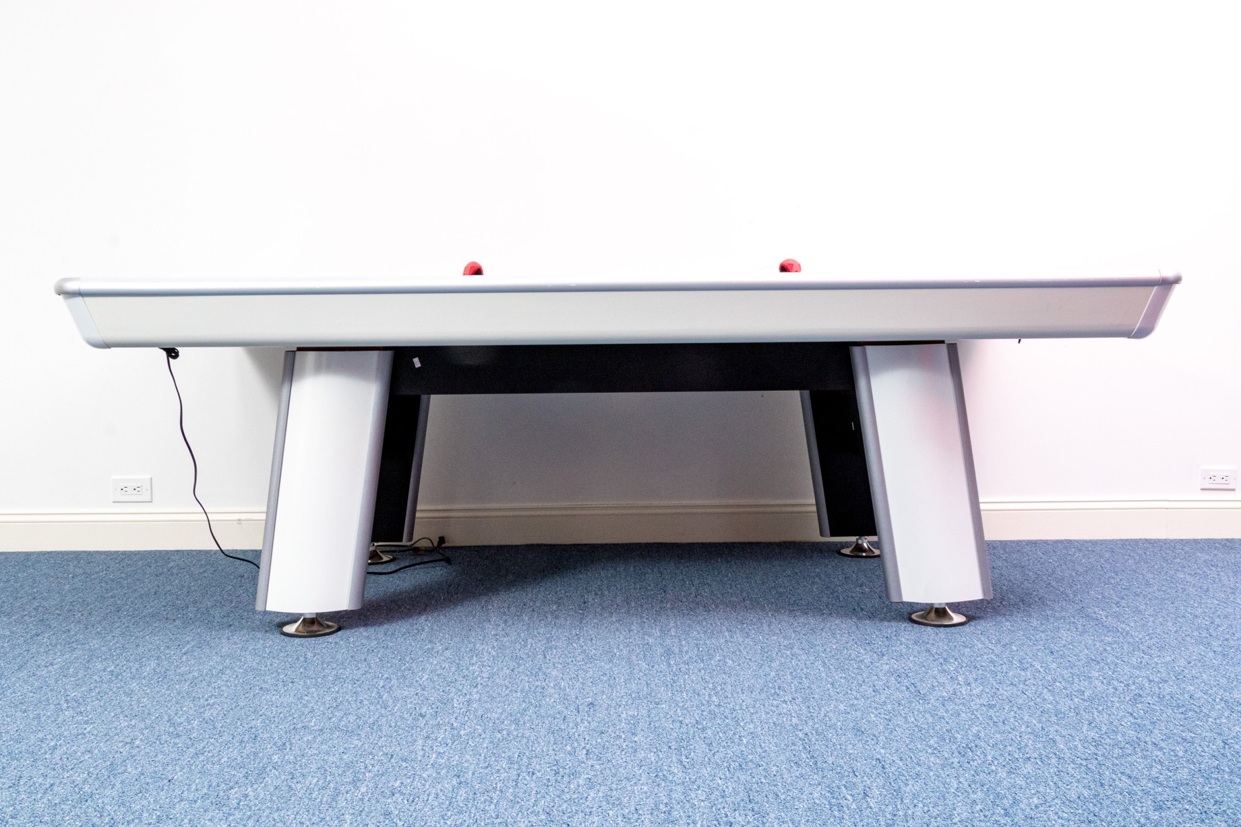 Atomic Avenger 8' air hockey table model G04864W in black and white.