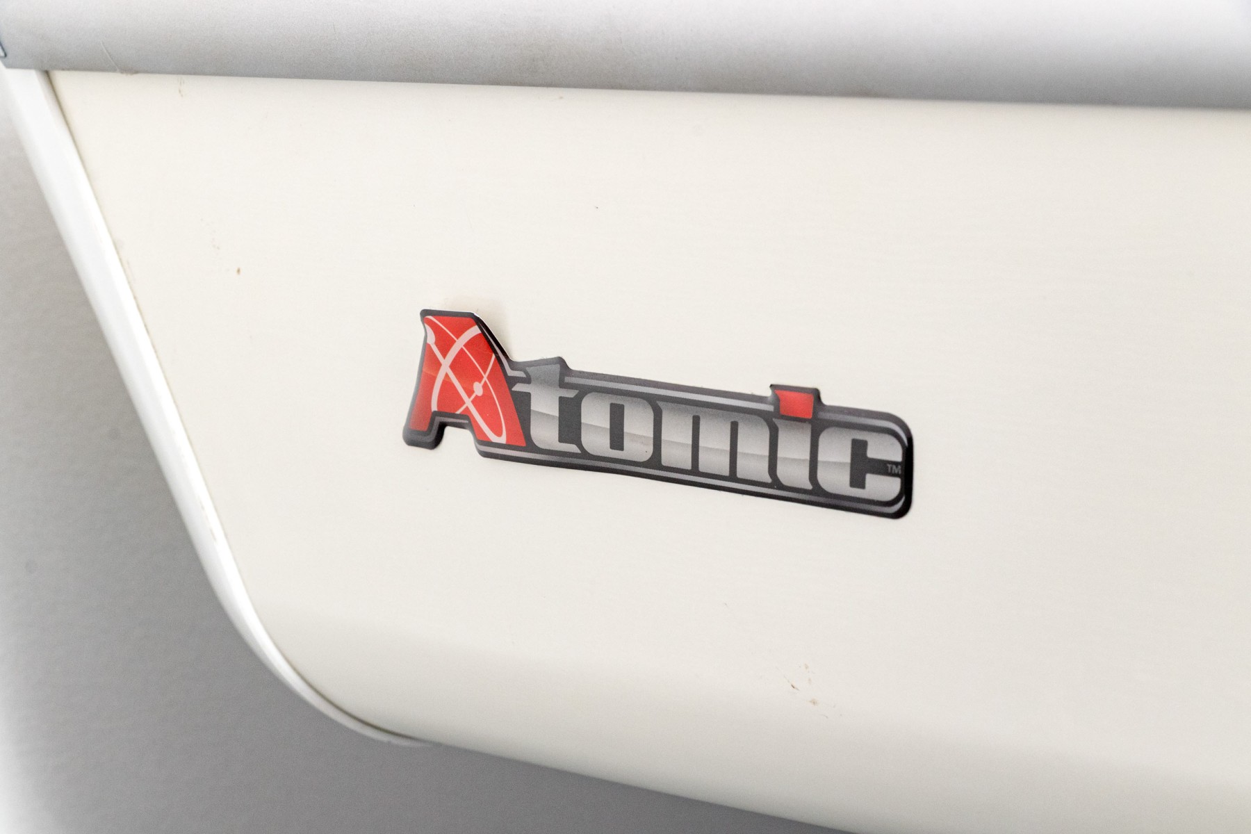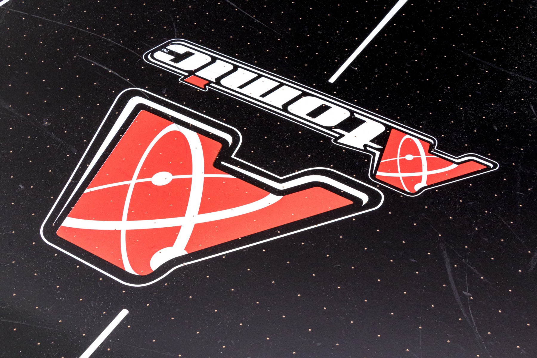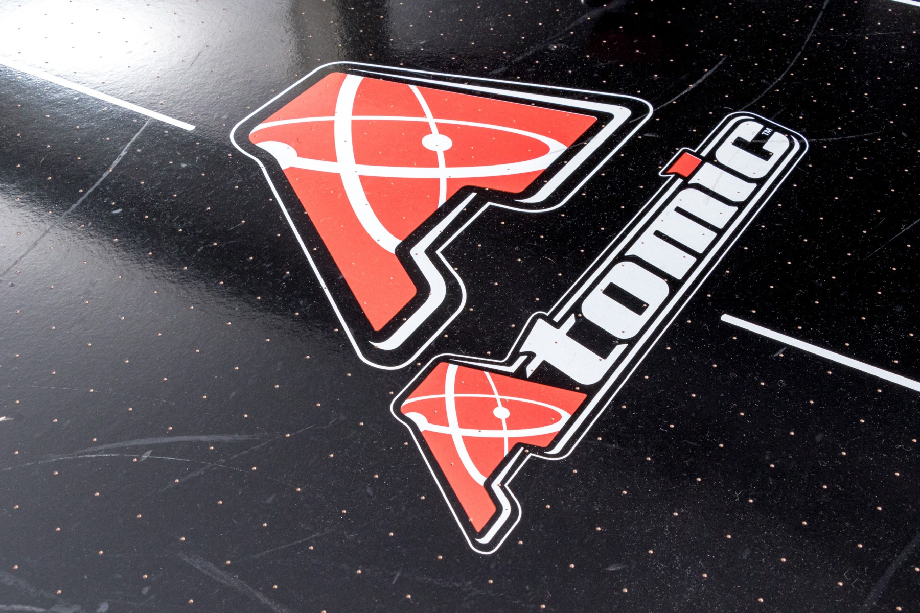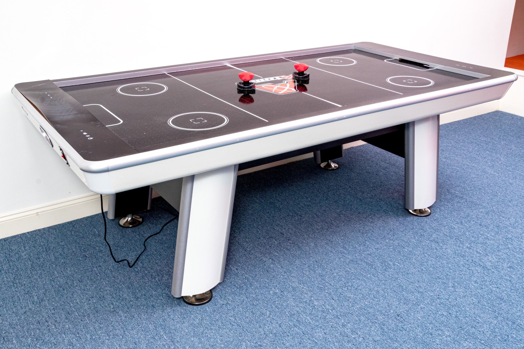 Atomic Avenger 8' air hockey table model G04864W in black and white.