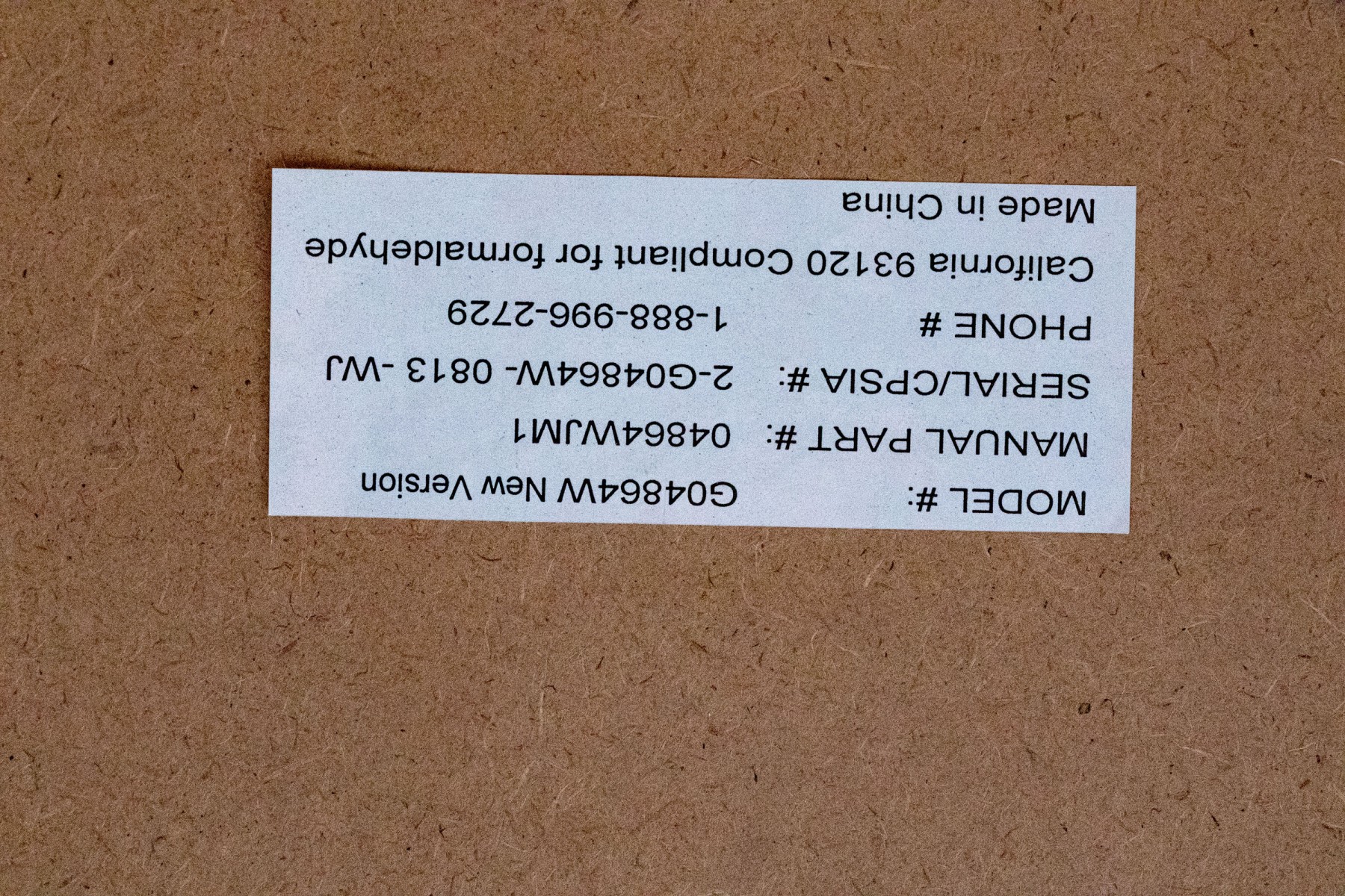 One end of the laminate end is peeling from the table. Some surface scuffs commensurate with use and some age.