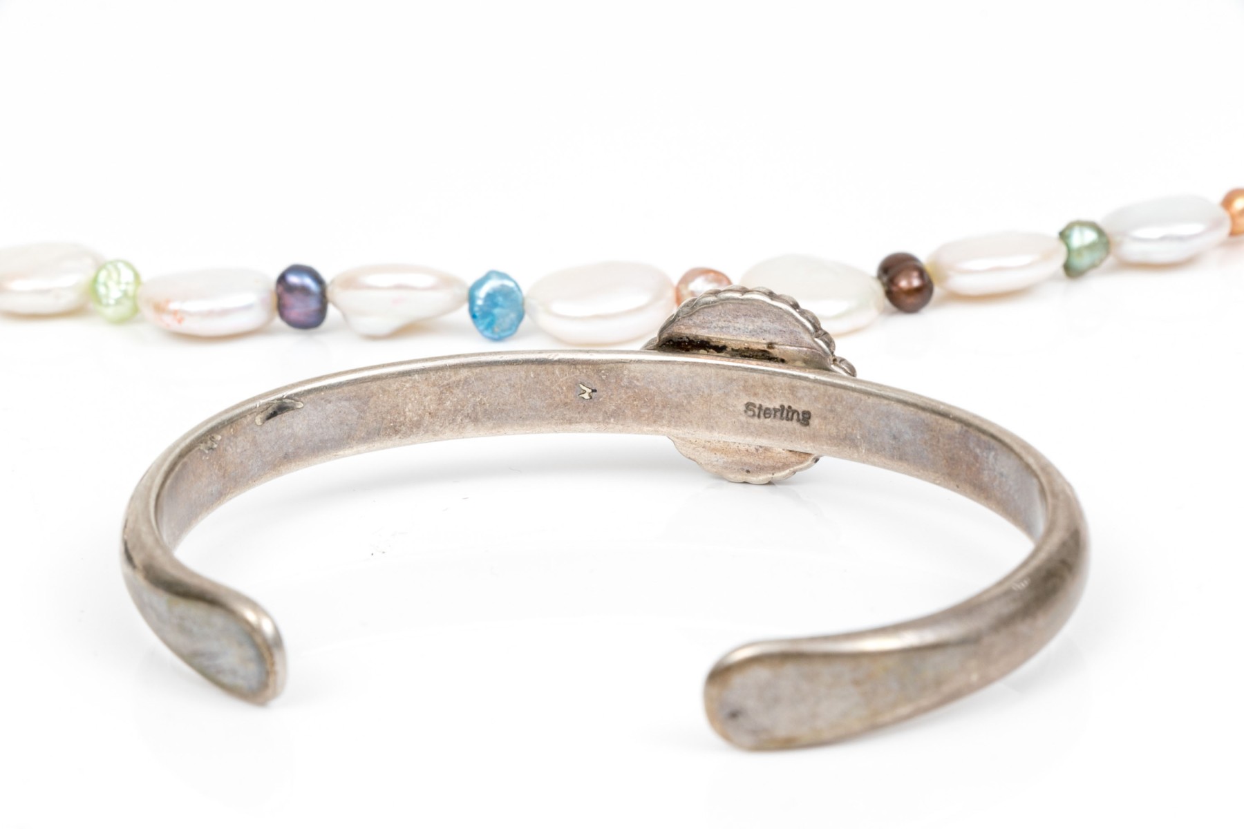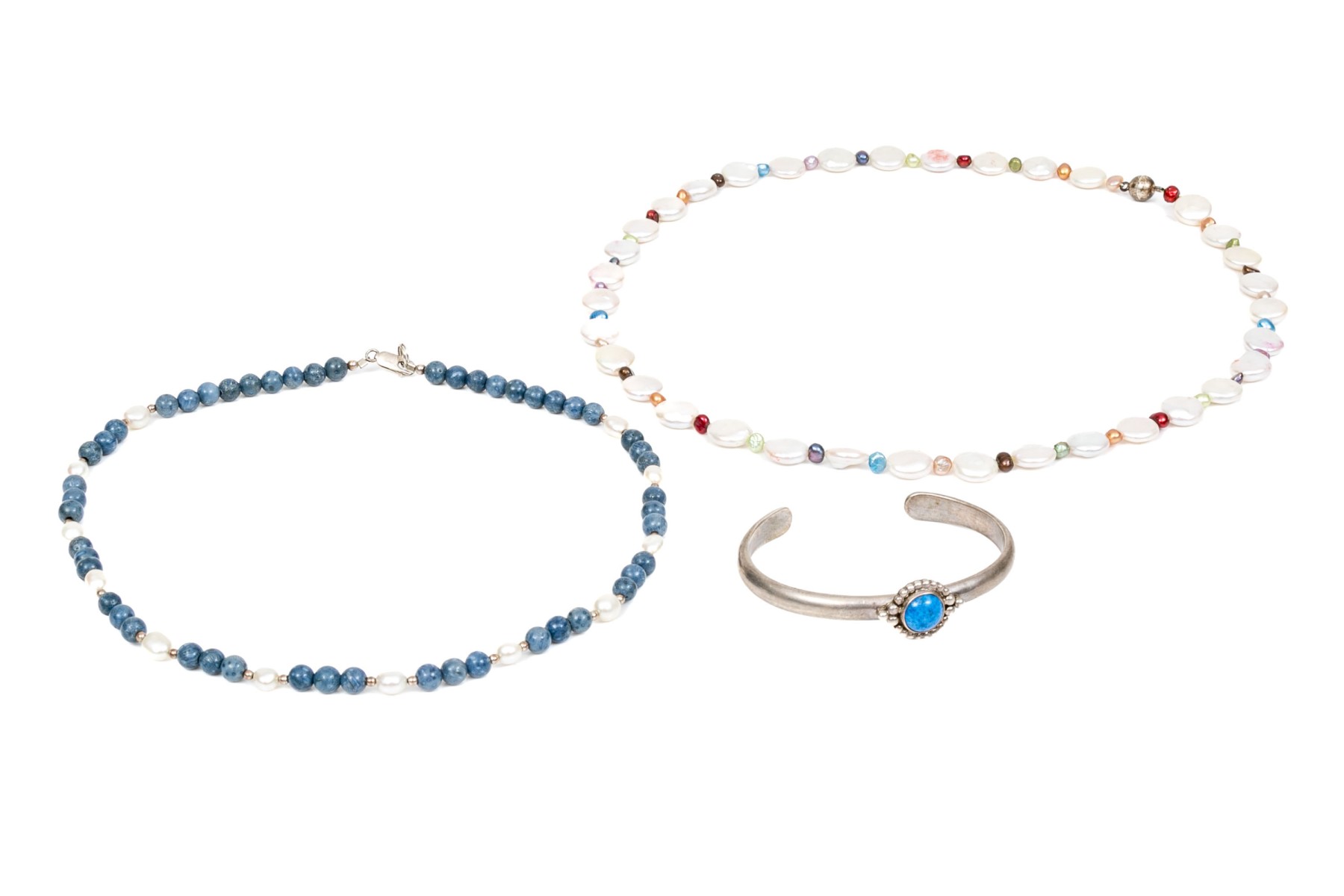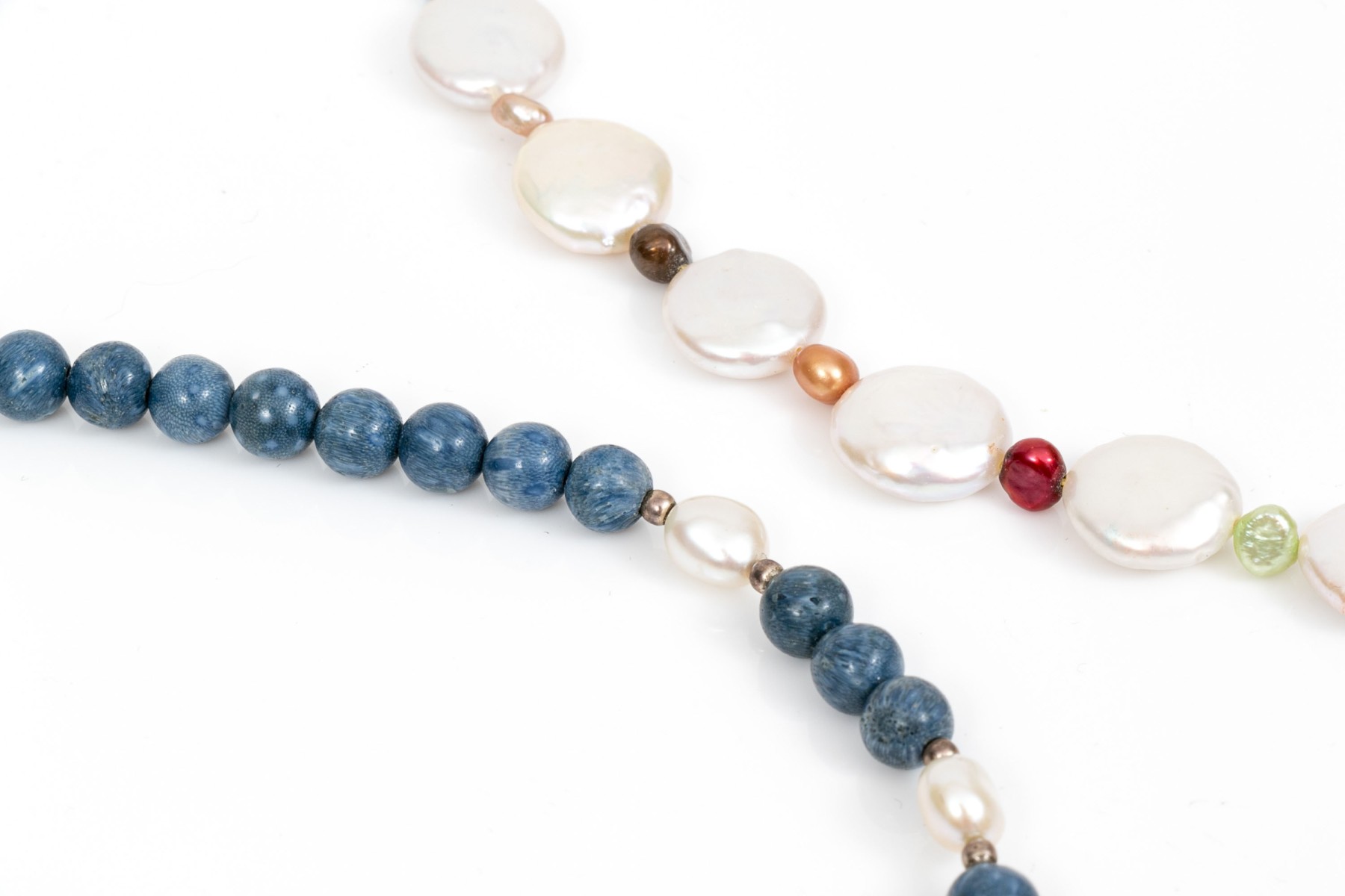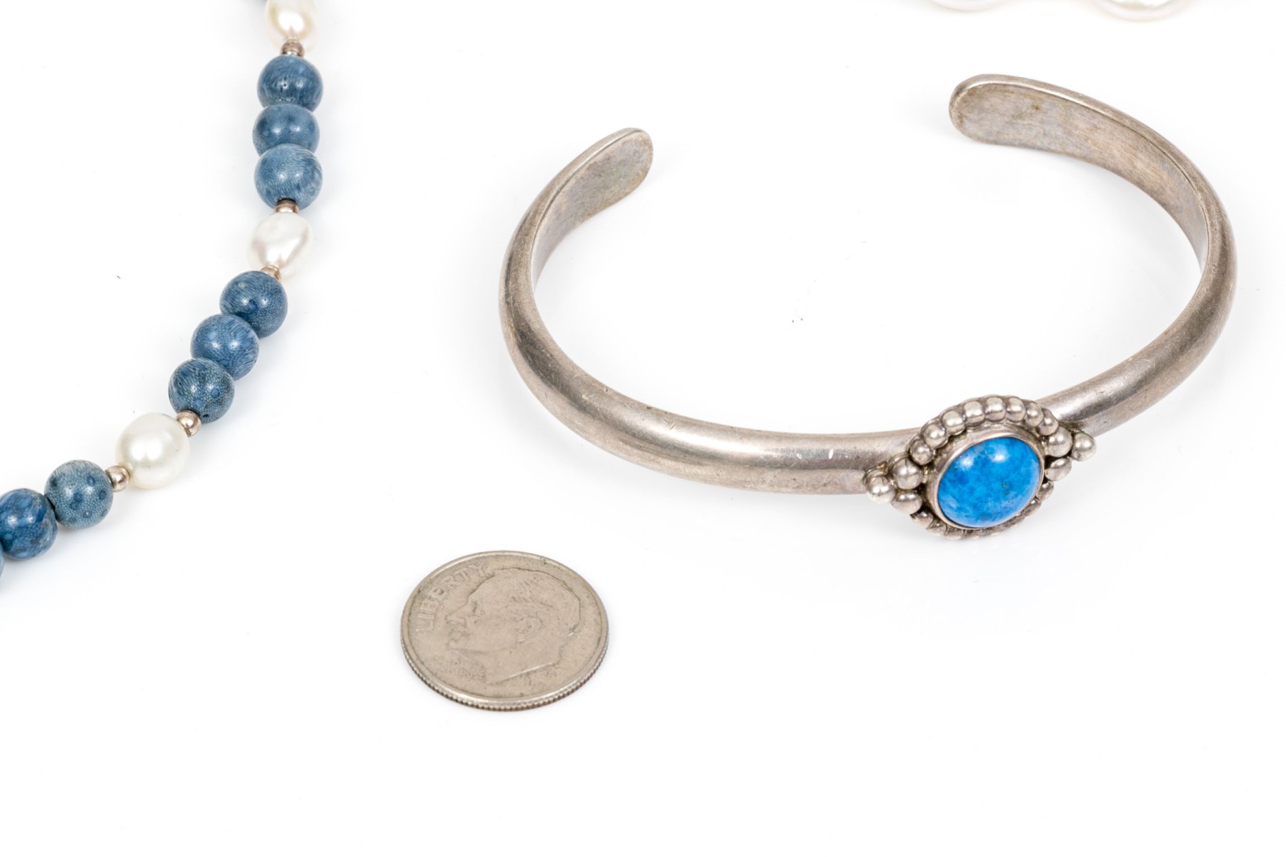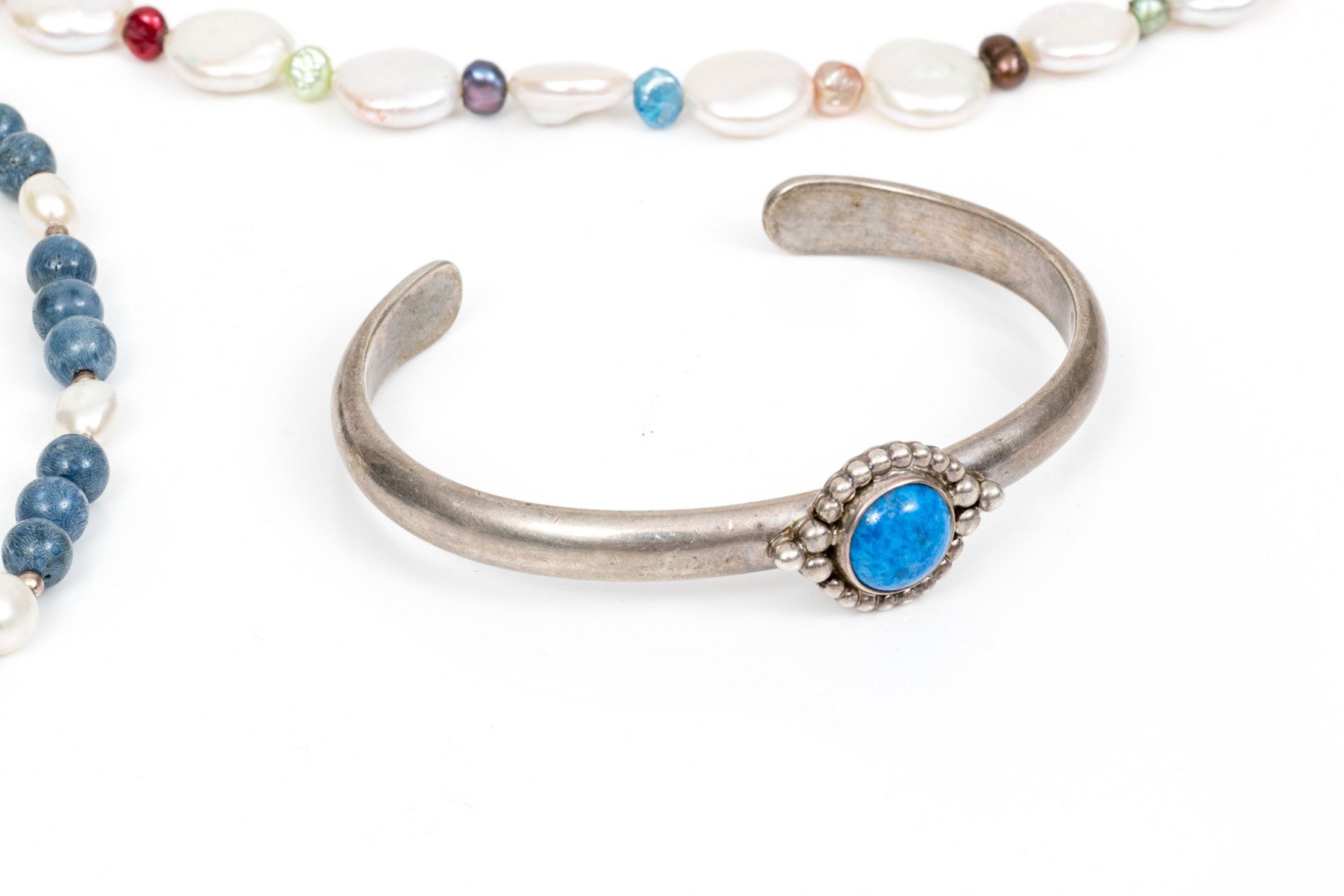 Attractive assorted lot fun blue coral beads, blue motif cuff bracelet and a cultured freshwater pearl beads