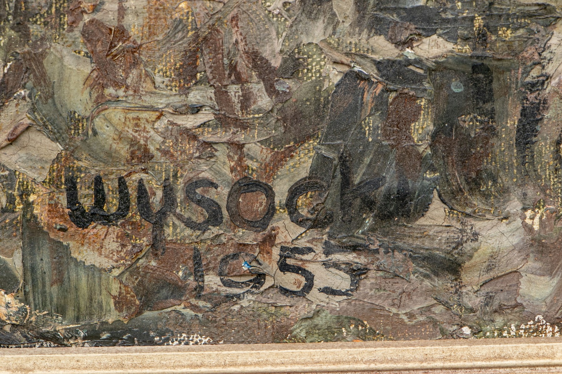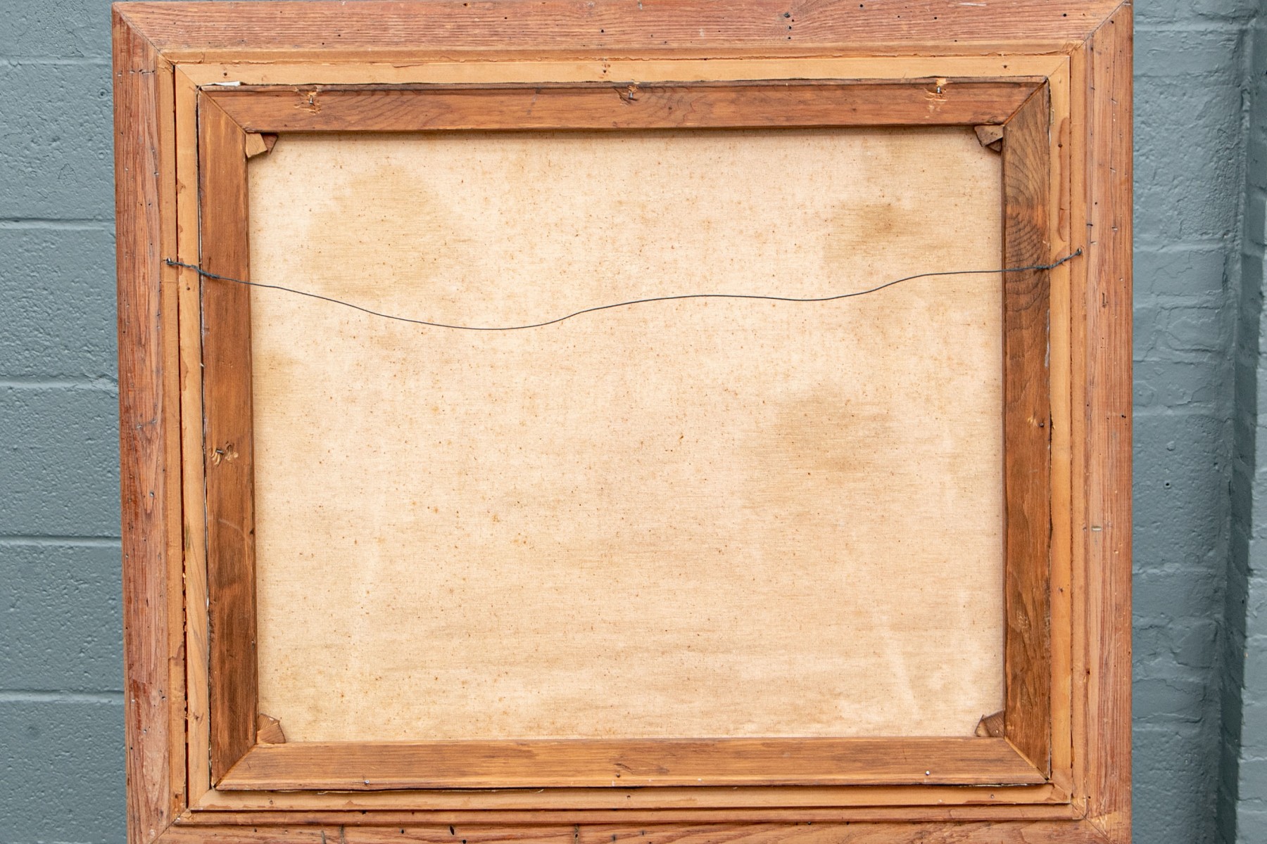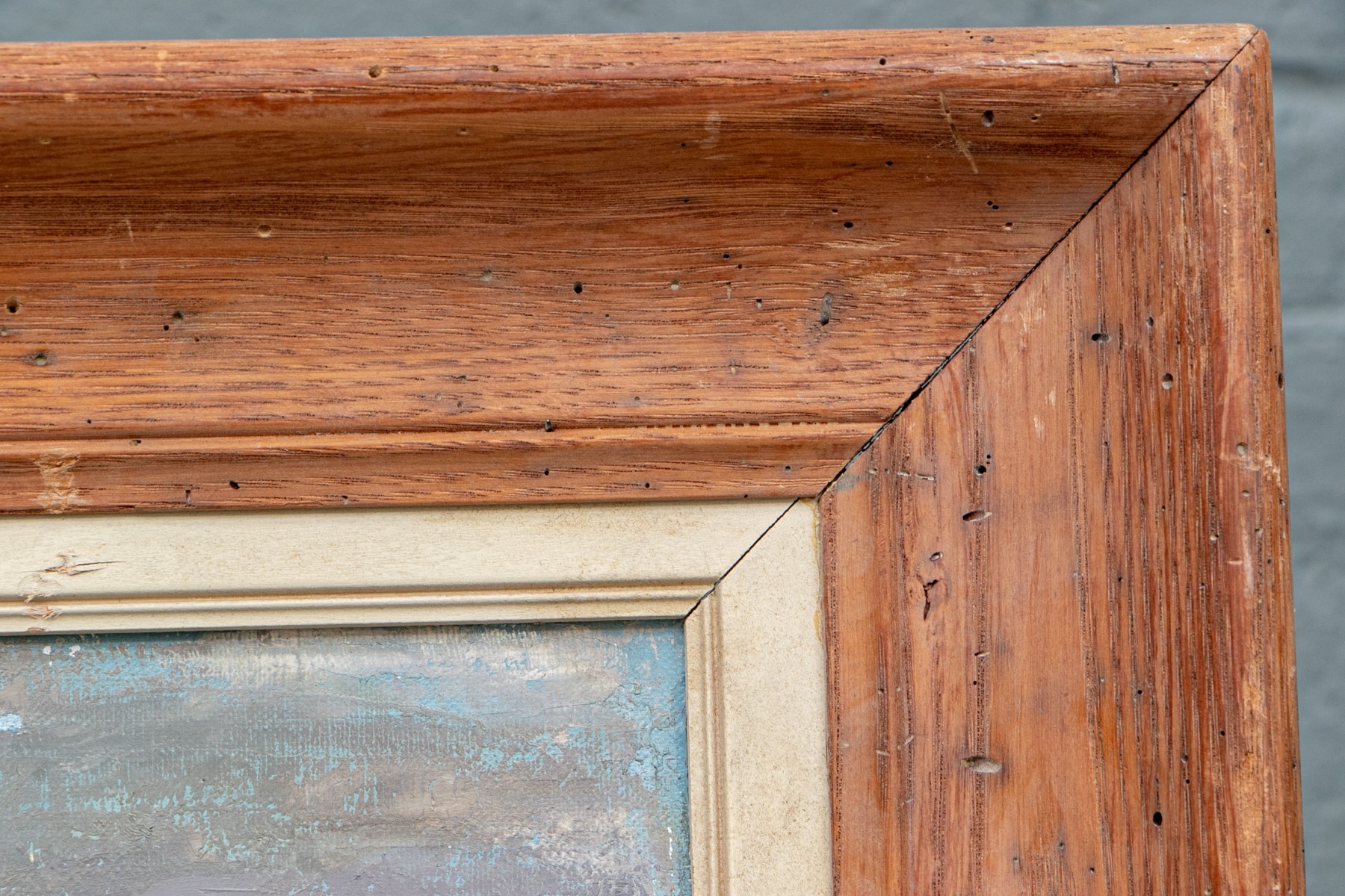wood frame 32 x 36 3/4", discolored painted mat, some scrapes and spots
