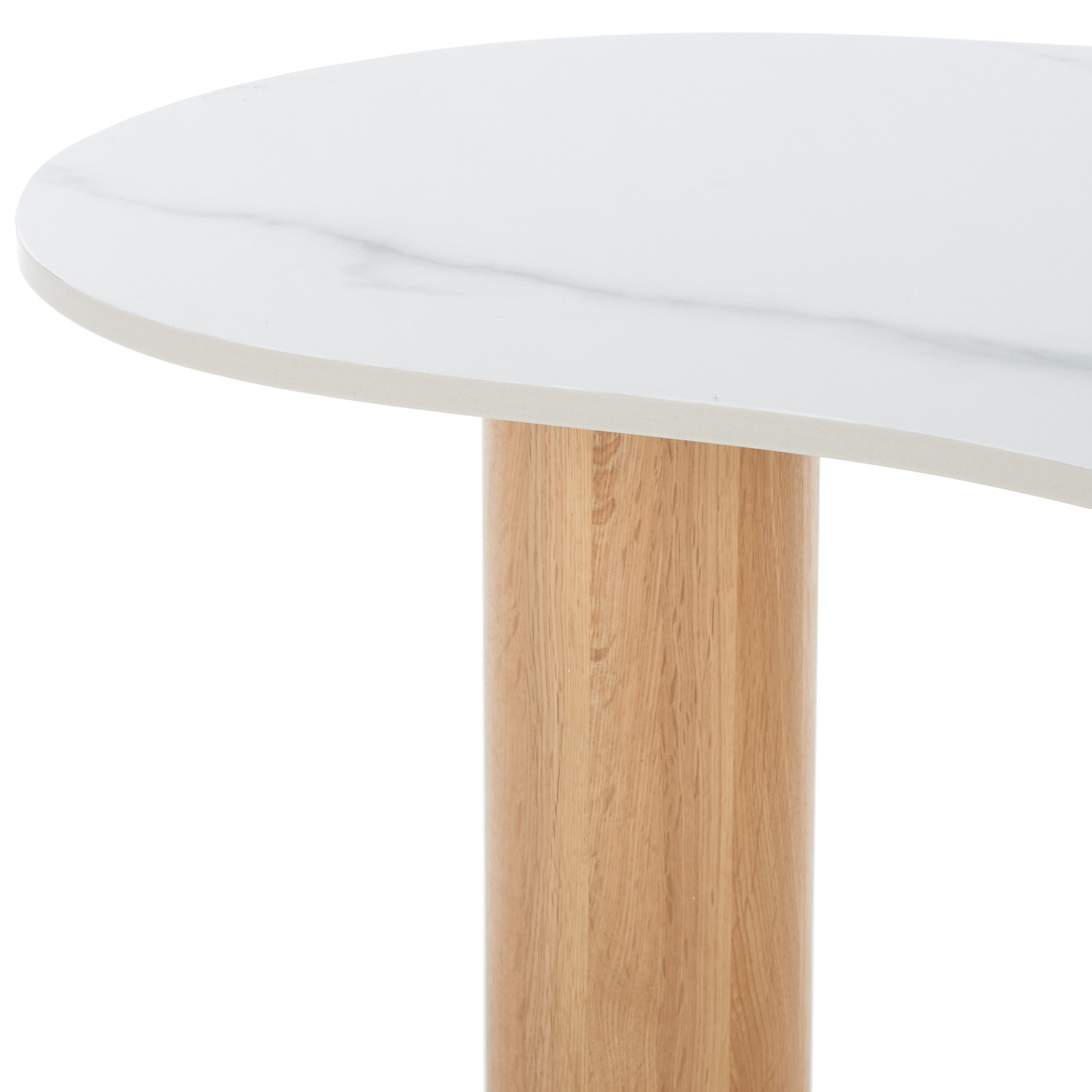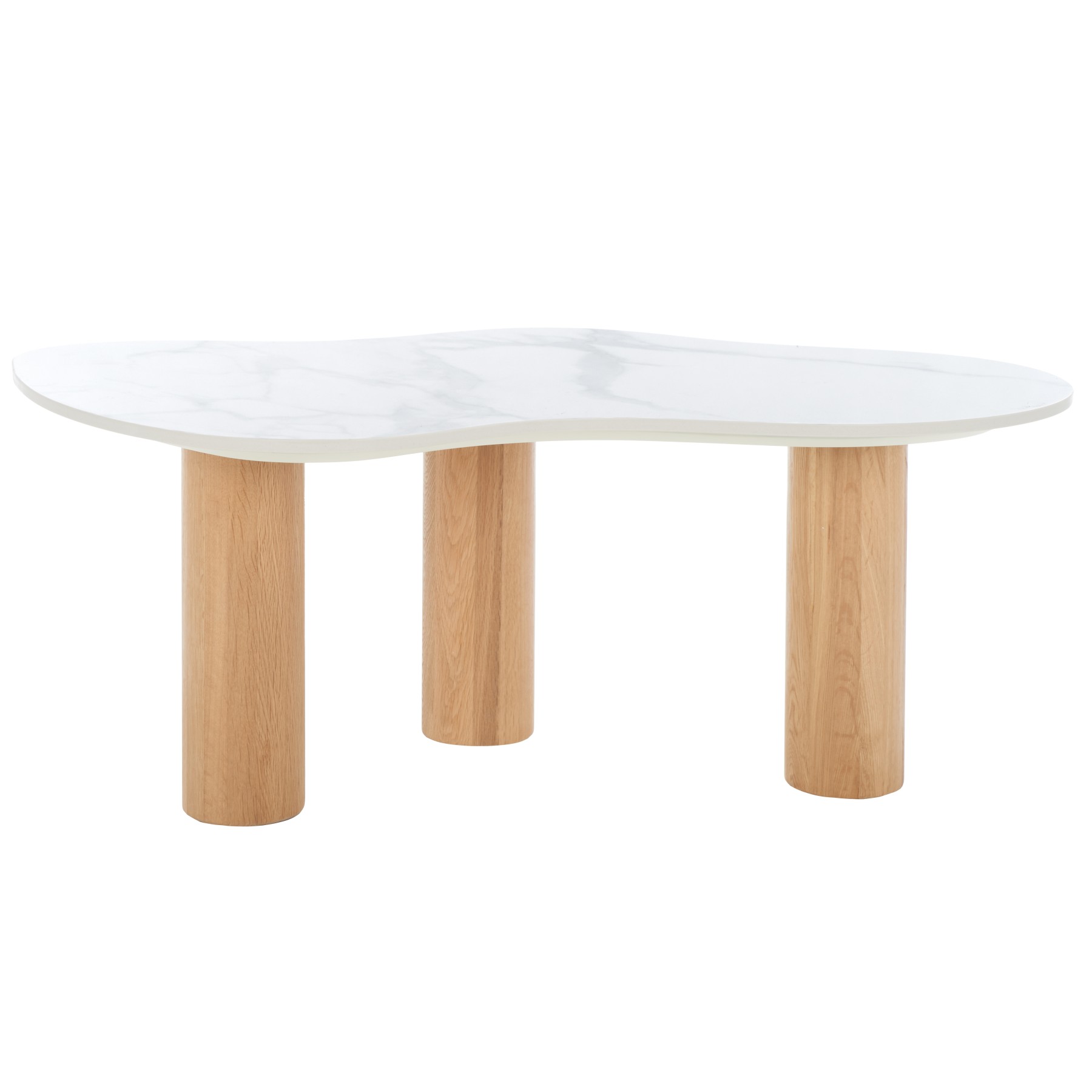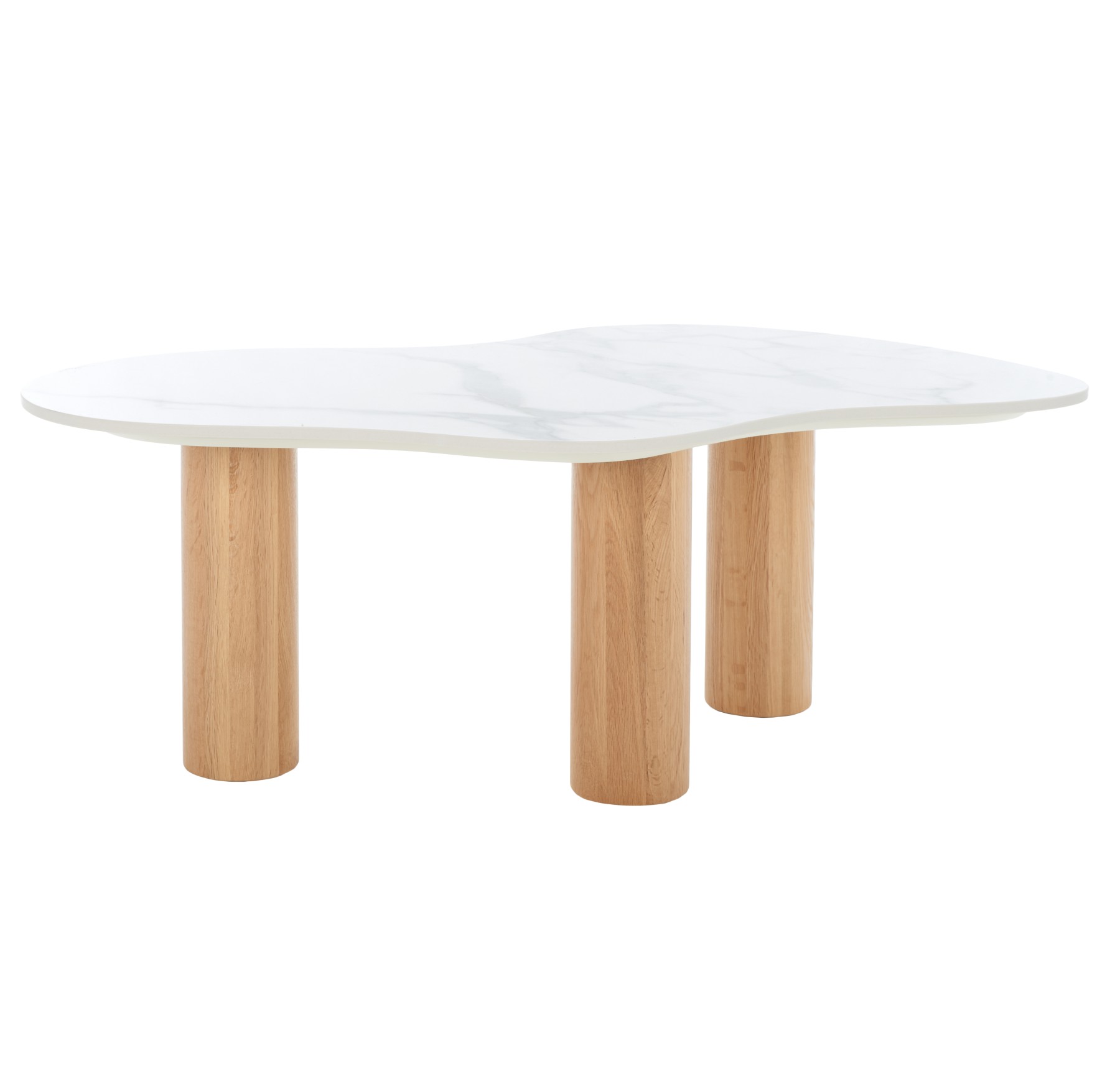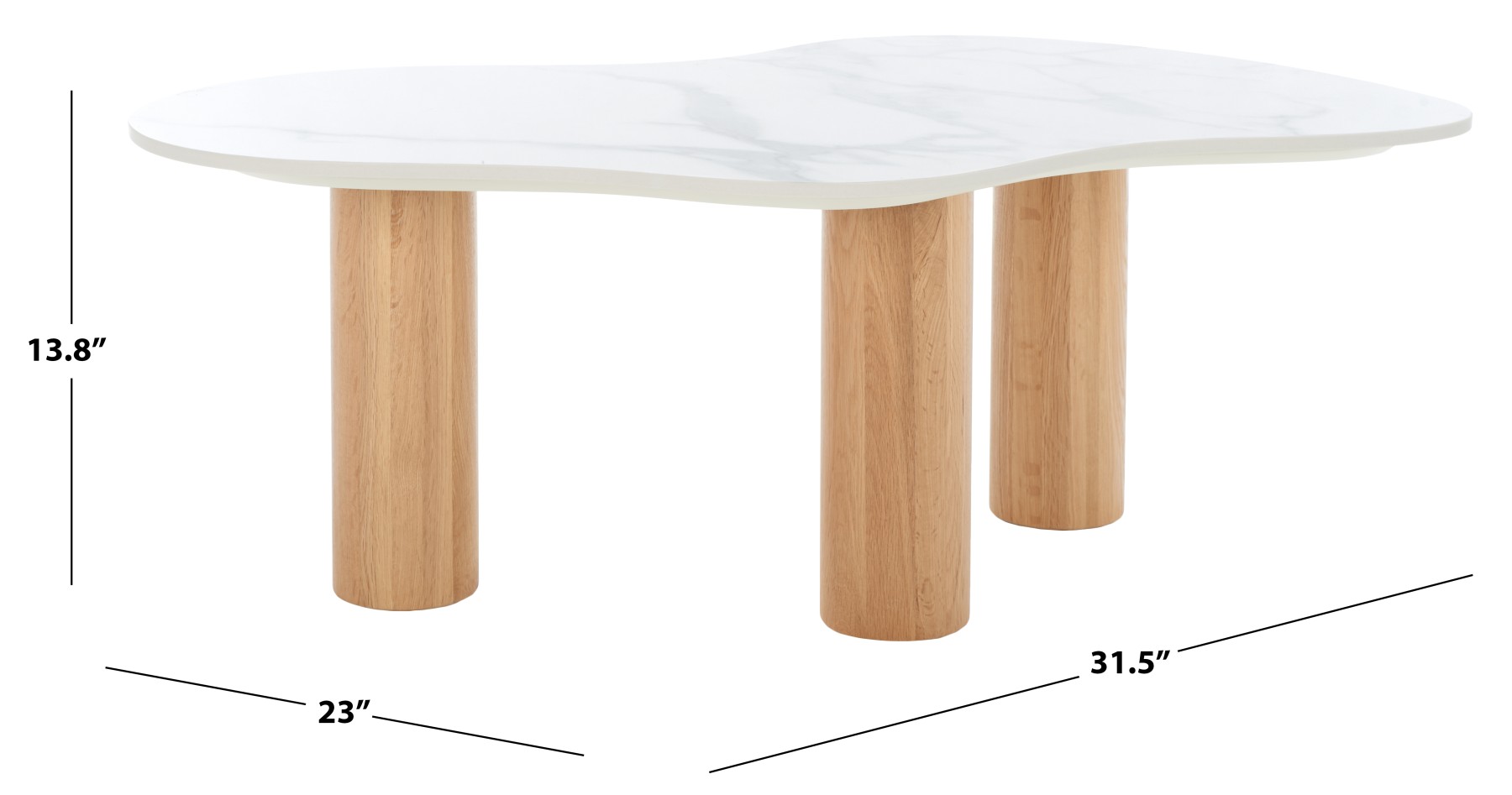 Enliven your home with the alluring curves and sculptural appeal of our Aurora coffee table. Taking bold sweeping curves, the tabletop stands out with an organic shape. Its eye-catching beauty is enhanced by the graceful texture of white ceramic with a faux marble veneer. Complemented with three chunky cylindrical legs in solid oak wood, our coffee table remains a showstopper in any room. It brings a harmony of rich natural textures to brighten up your home and create an impressive display of your favorite accessories.