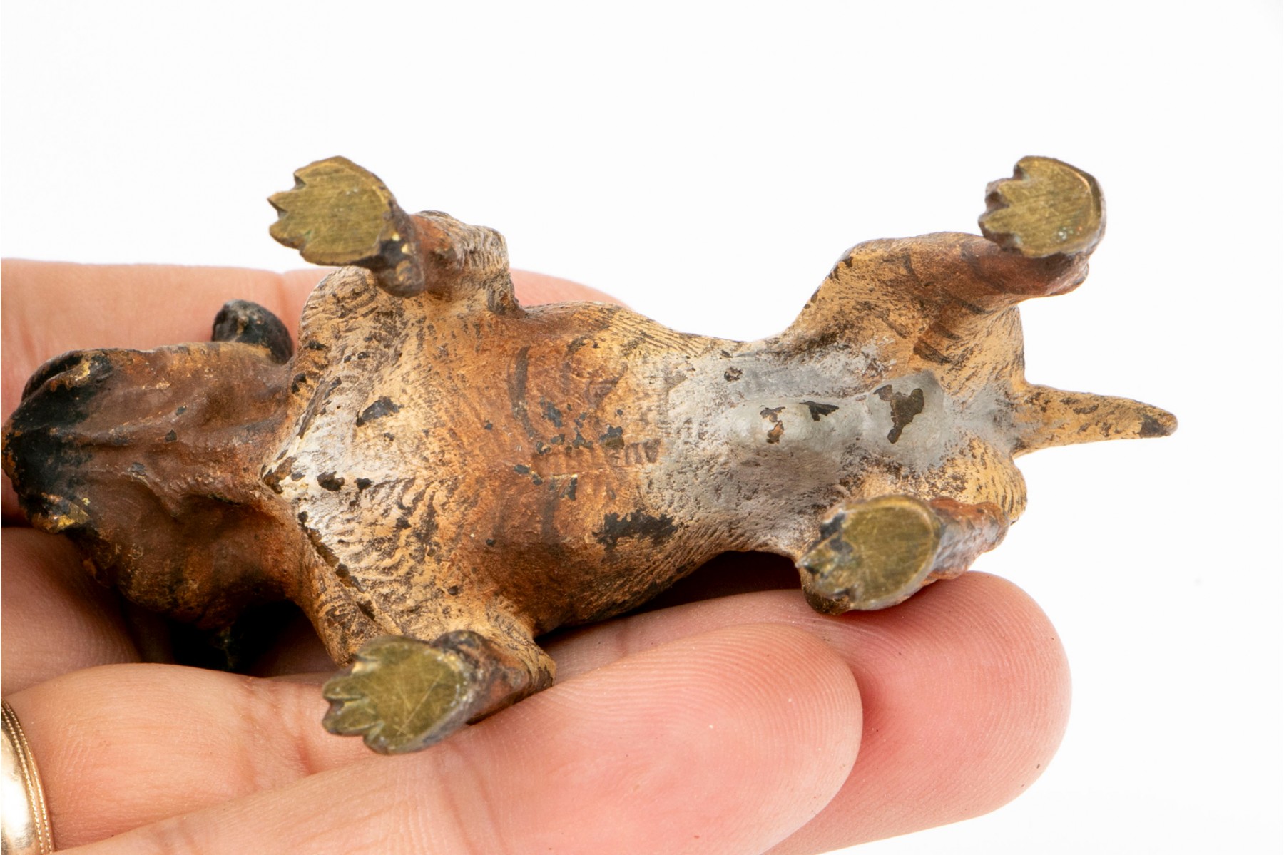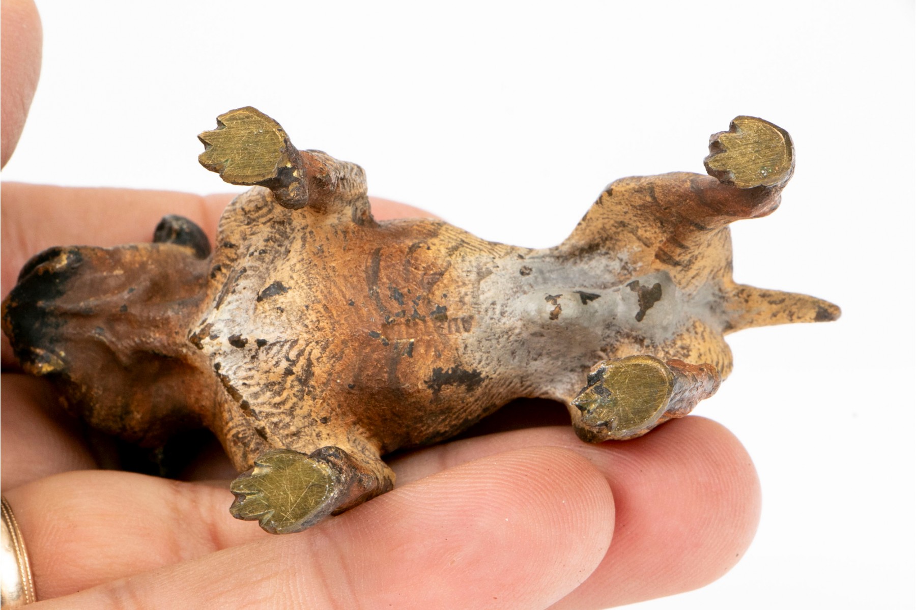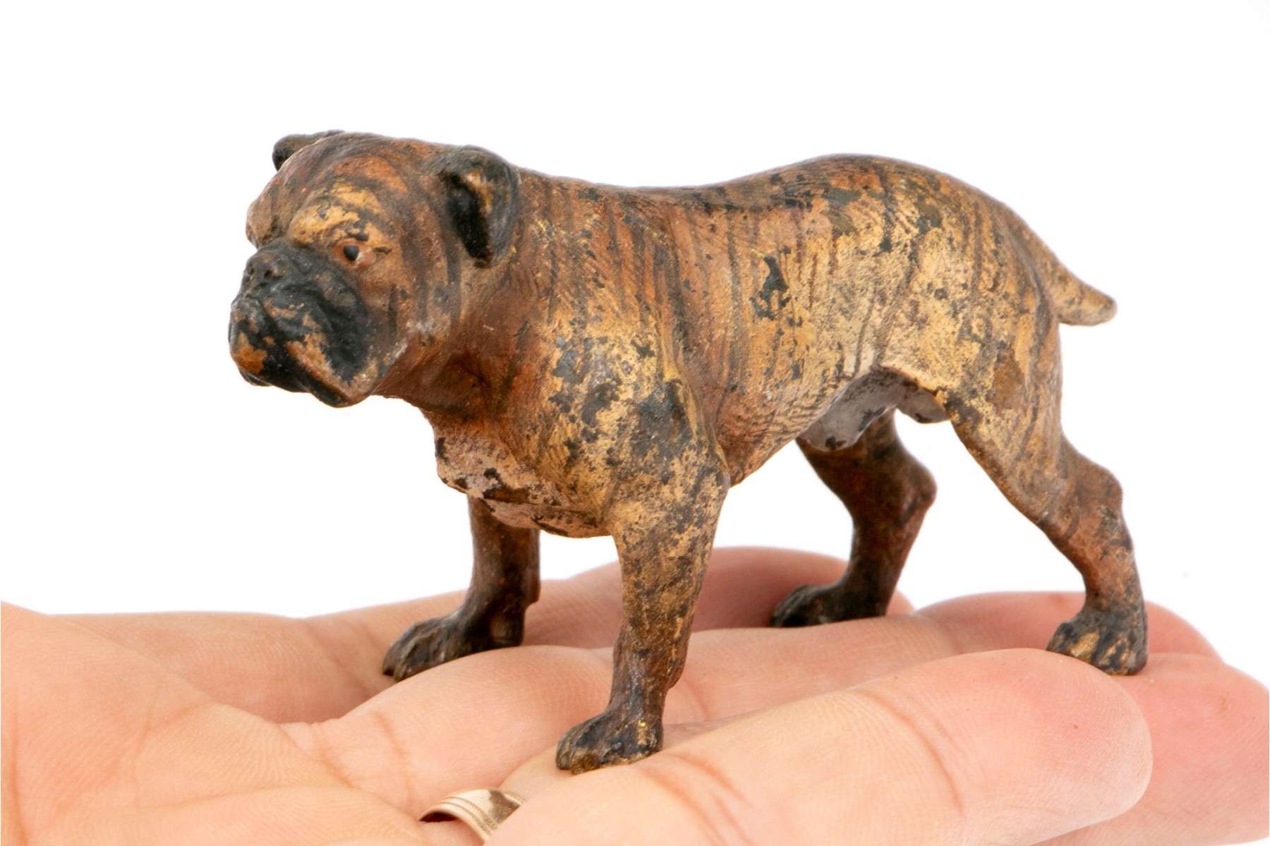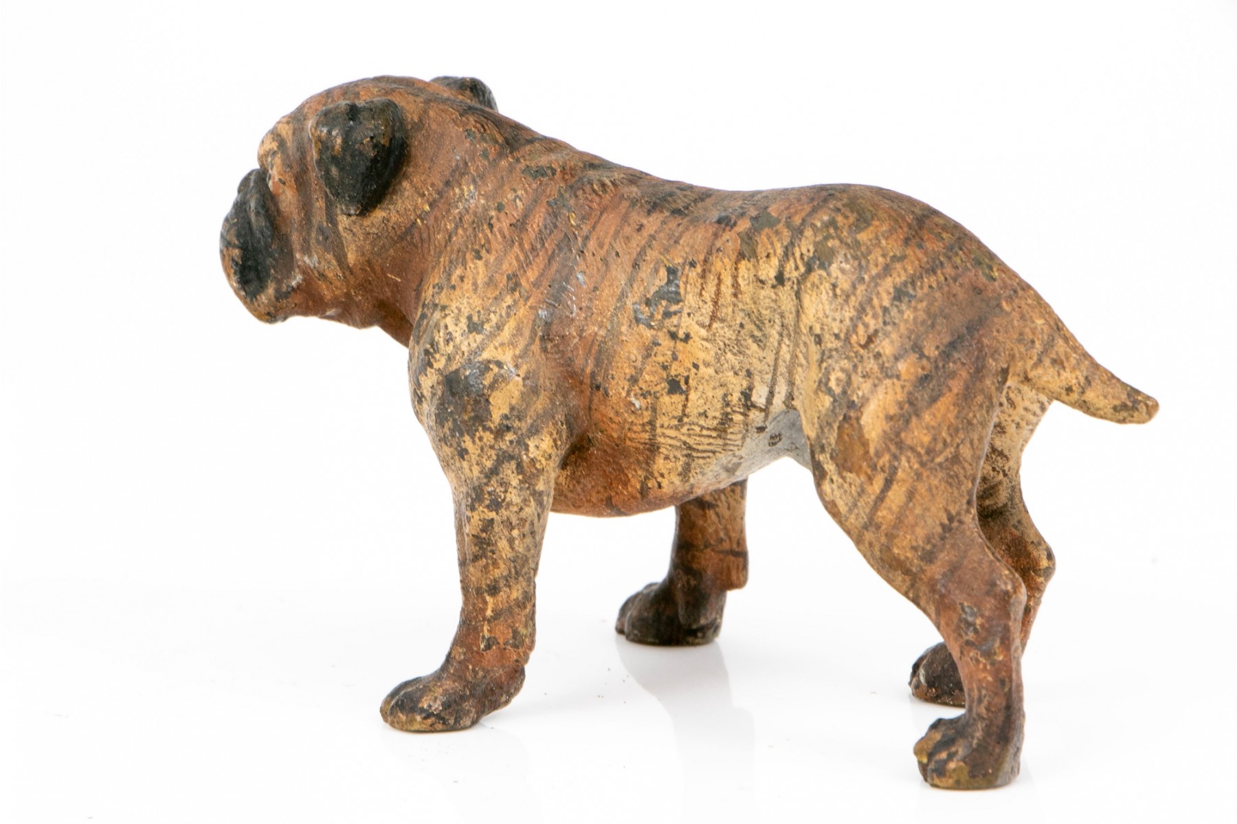 Cold painted brindle bull dog figure depict the dog standing erect. Stamped Austria on verso.