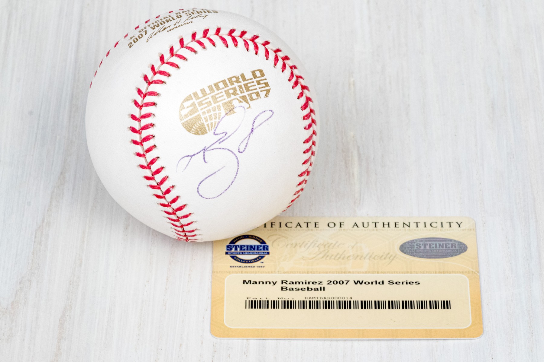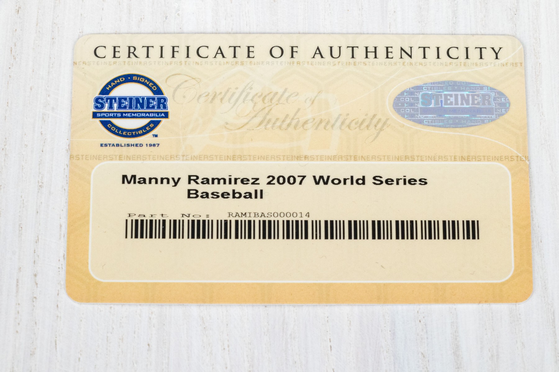 From Steiner Sports Memorabilia, with certificate of authenticity, 2007 World Series Boston Red Sox outfielder, Manny Ramirez autographed baseball.