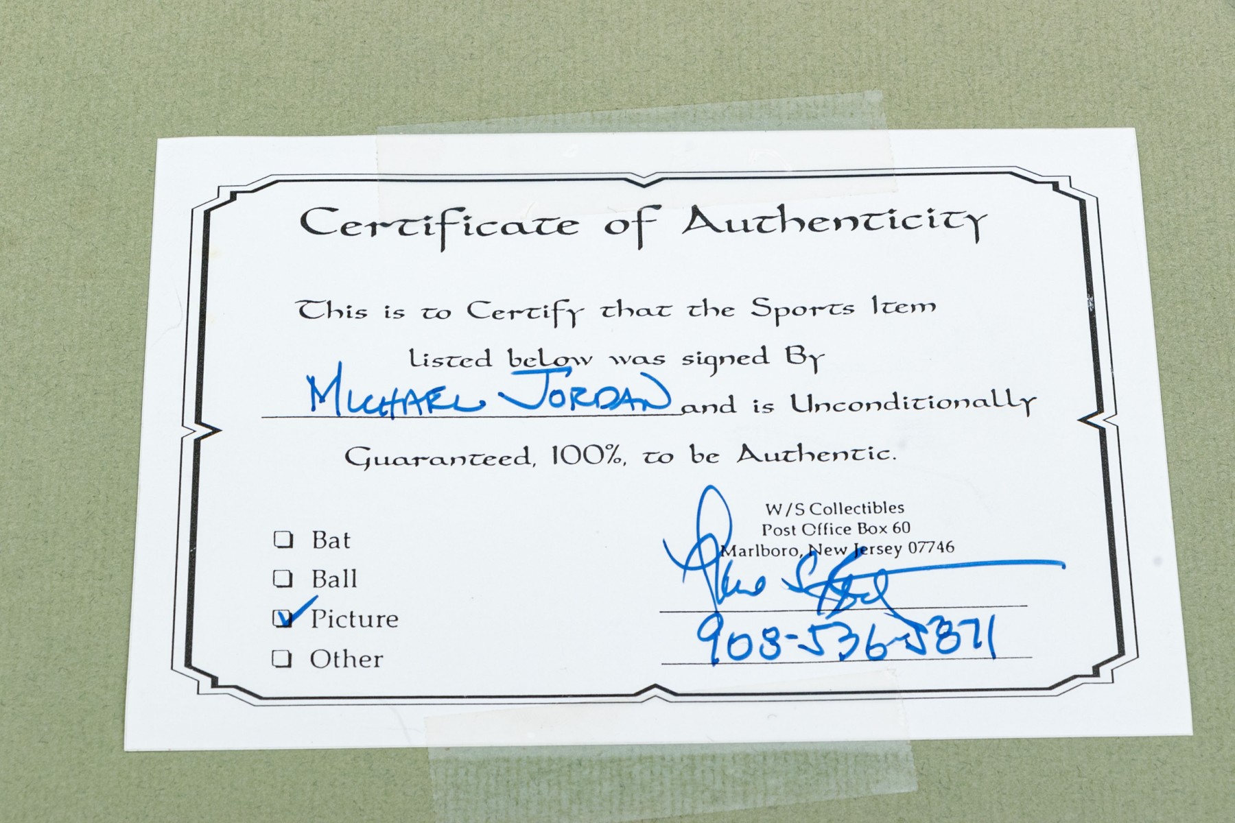 Signed and matted color photograph of Michael Jordan With certificate of authenticity verso.