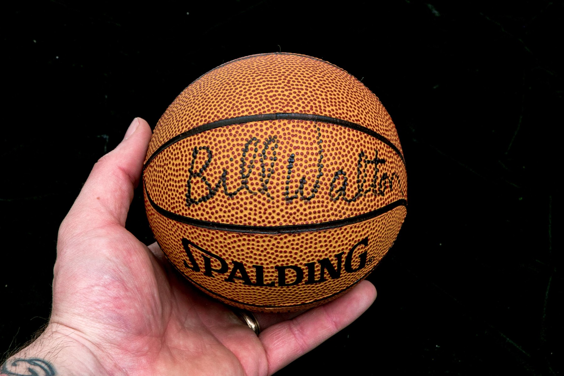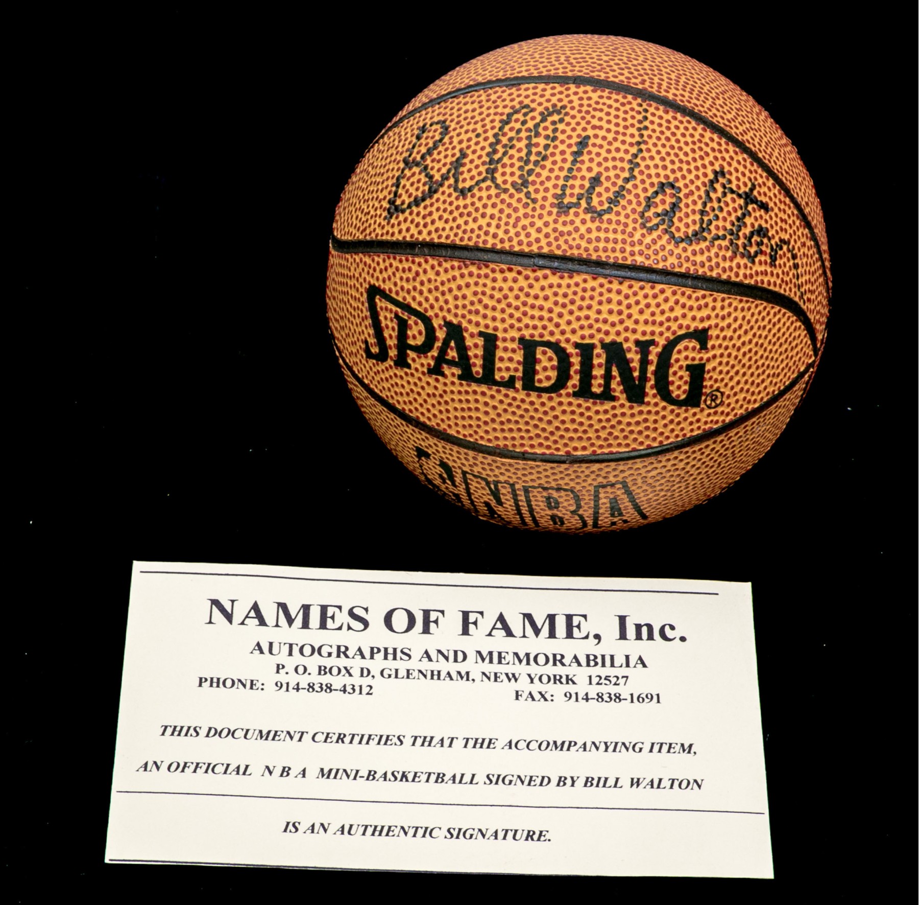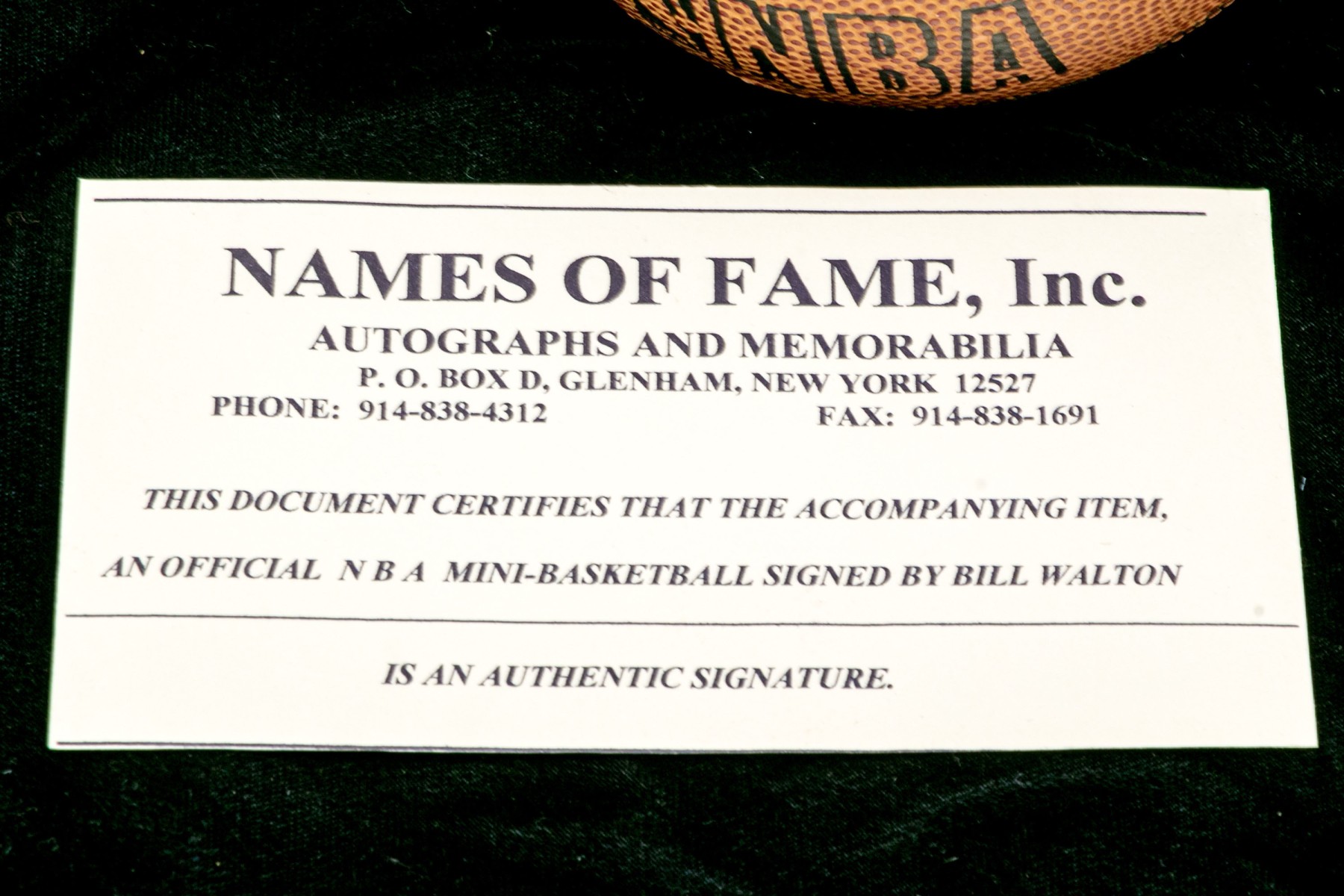 A signed miniature basketball signed by Bill Walton with a Certificate of Authentication.