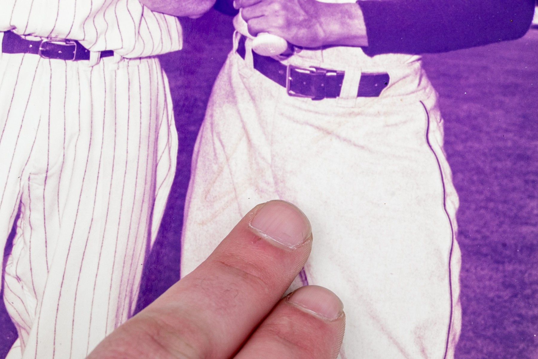 Condition: Signature is very faded on player's pants. Presented unframed. See images as they are part of the condition report.