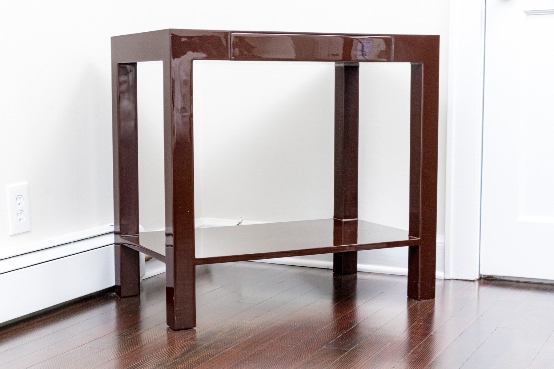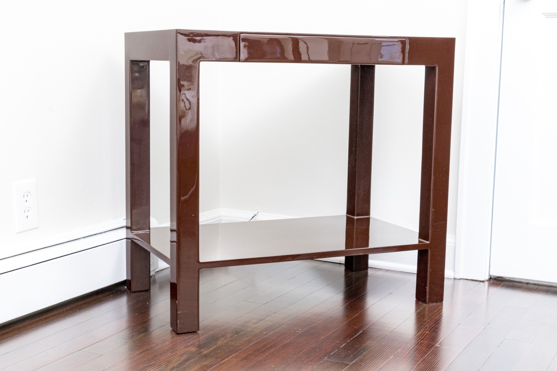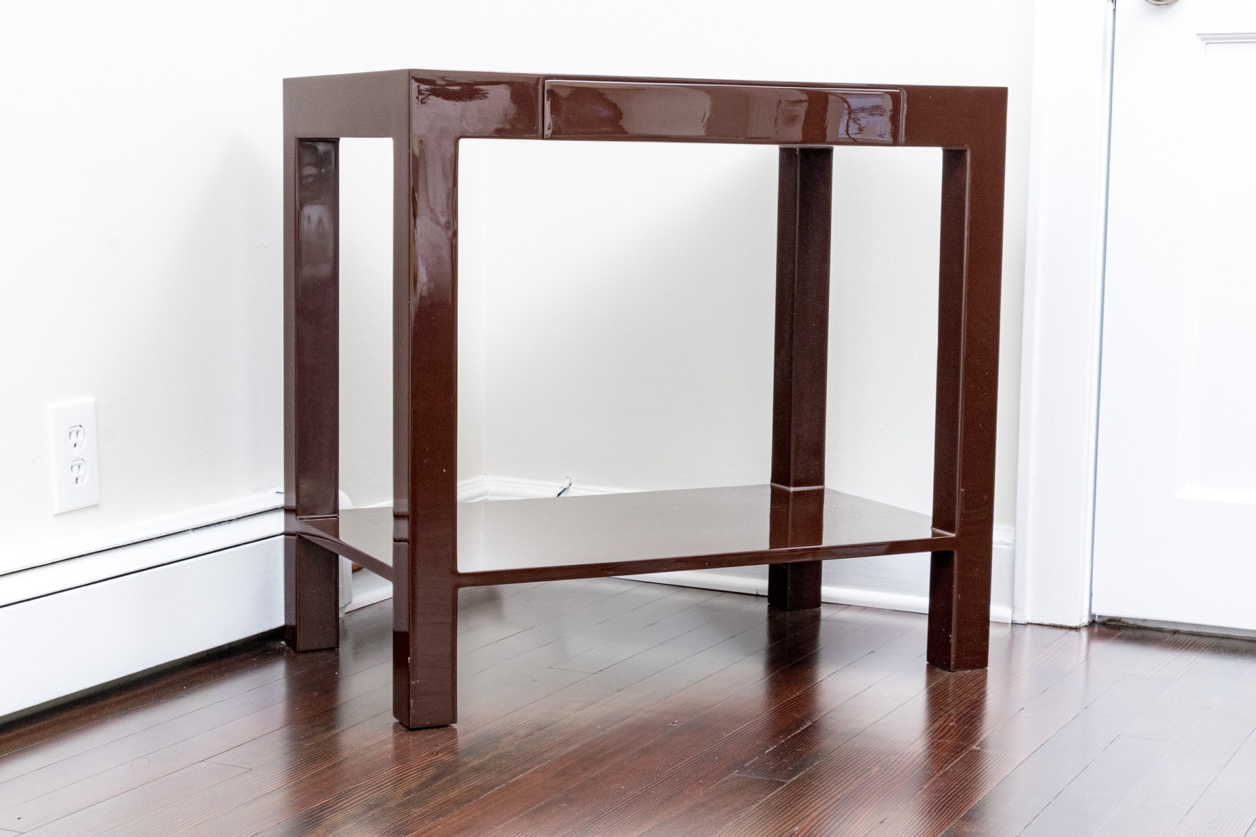 High gloss espresso brown lacquer finished, small Parson’s style table.