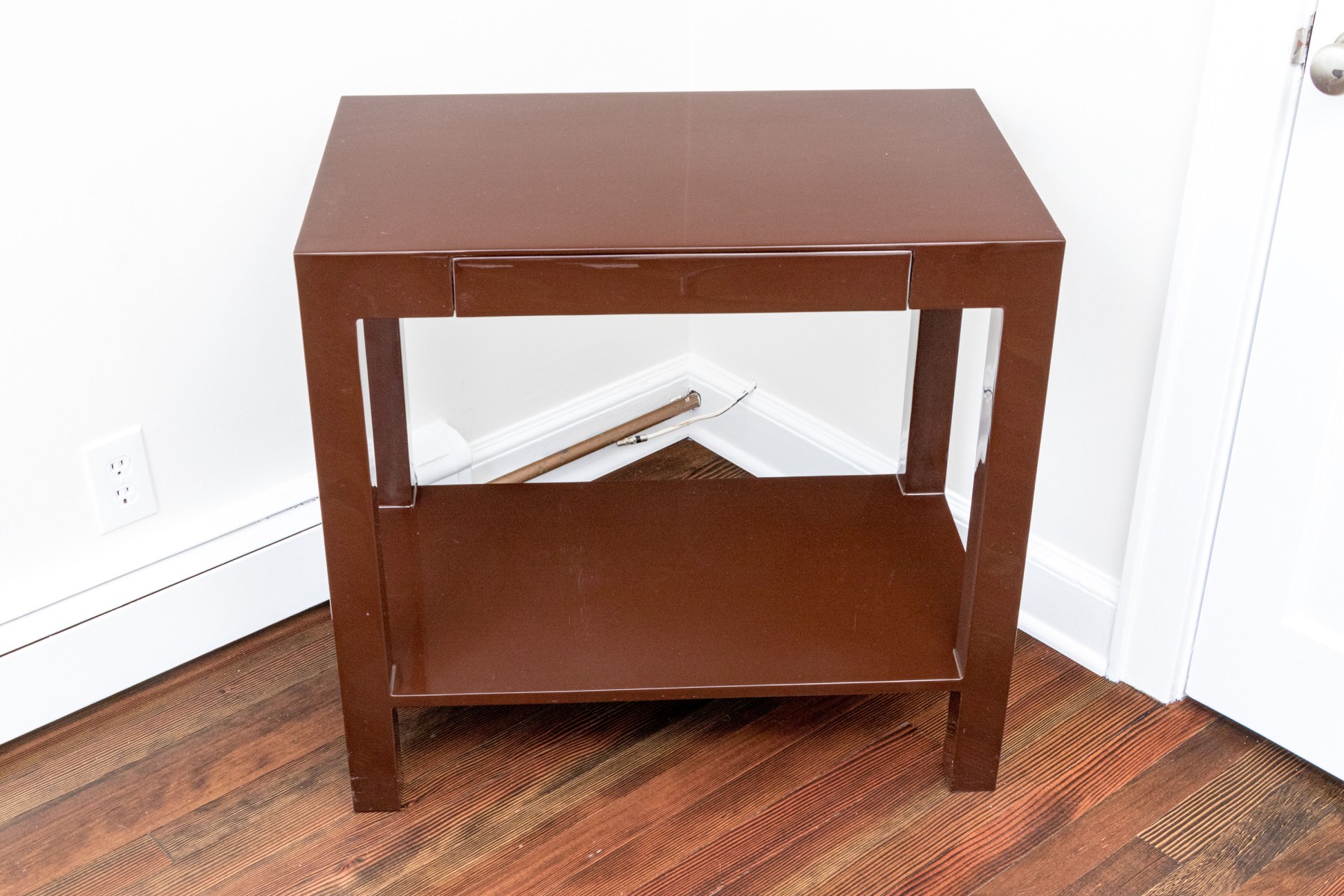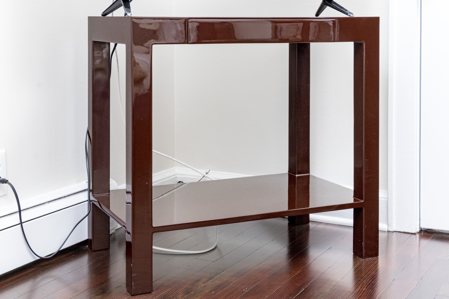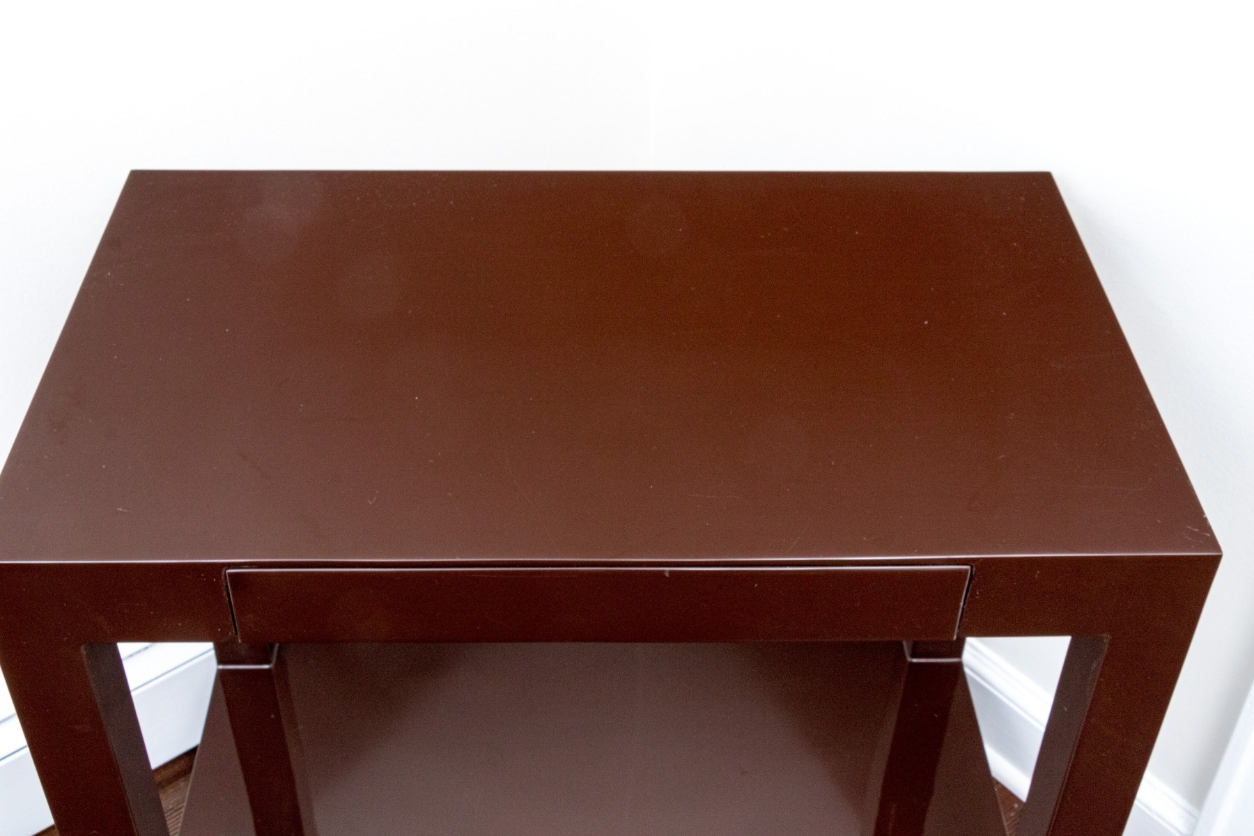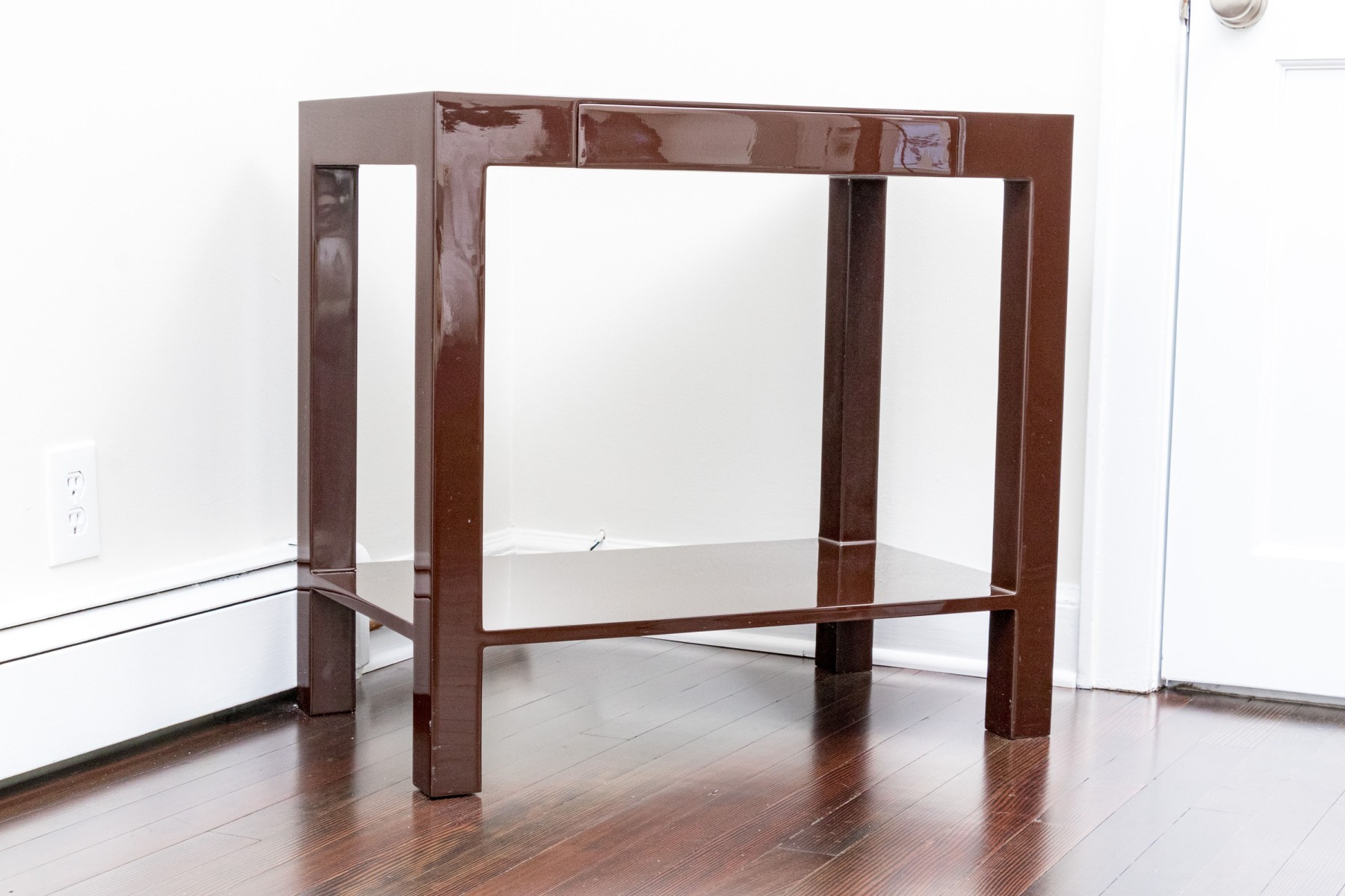 High gloss espresso brown lacquer finished, small Parson’s style table.