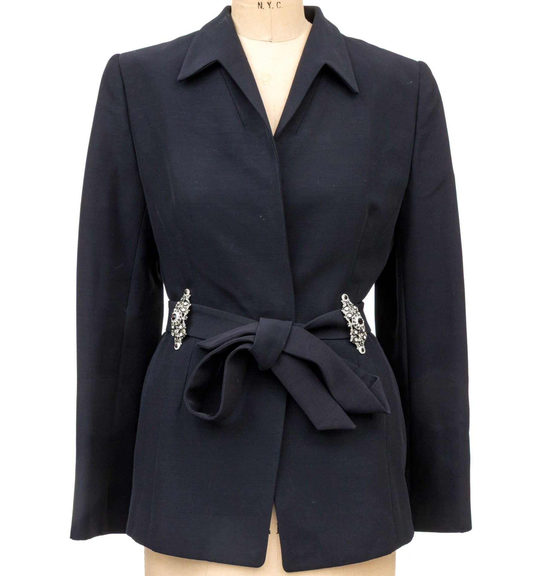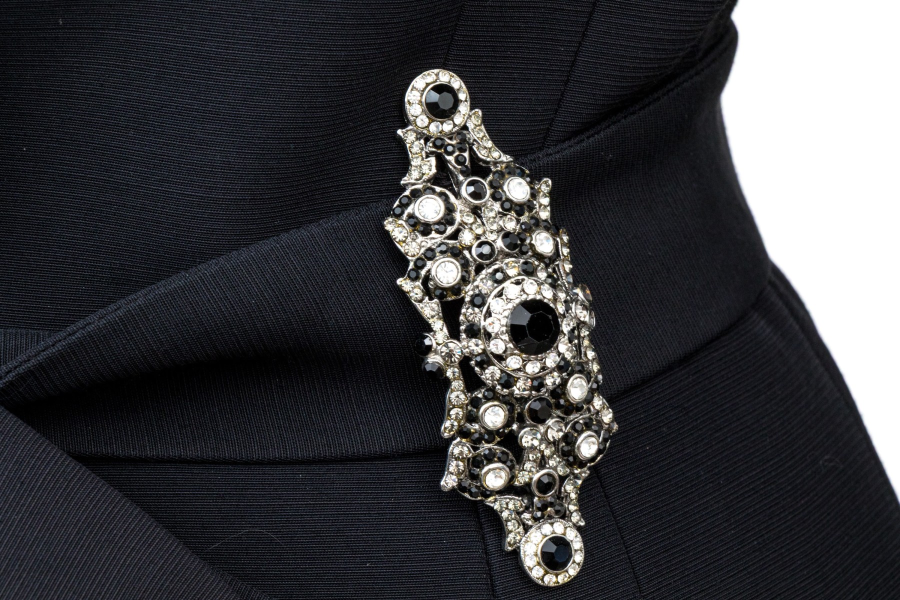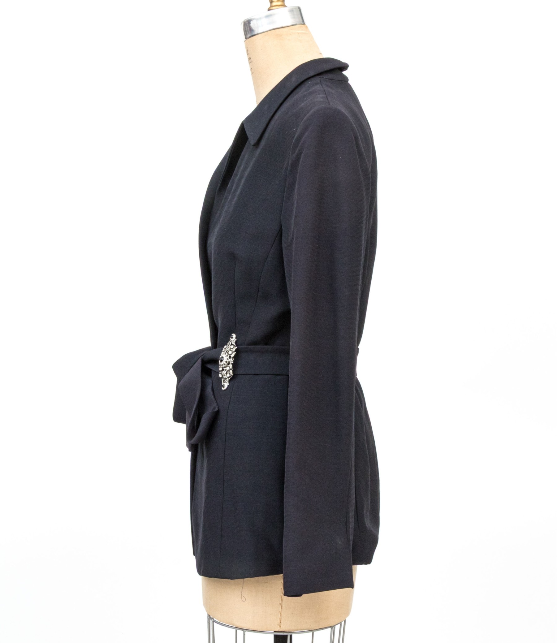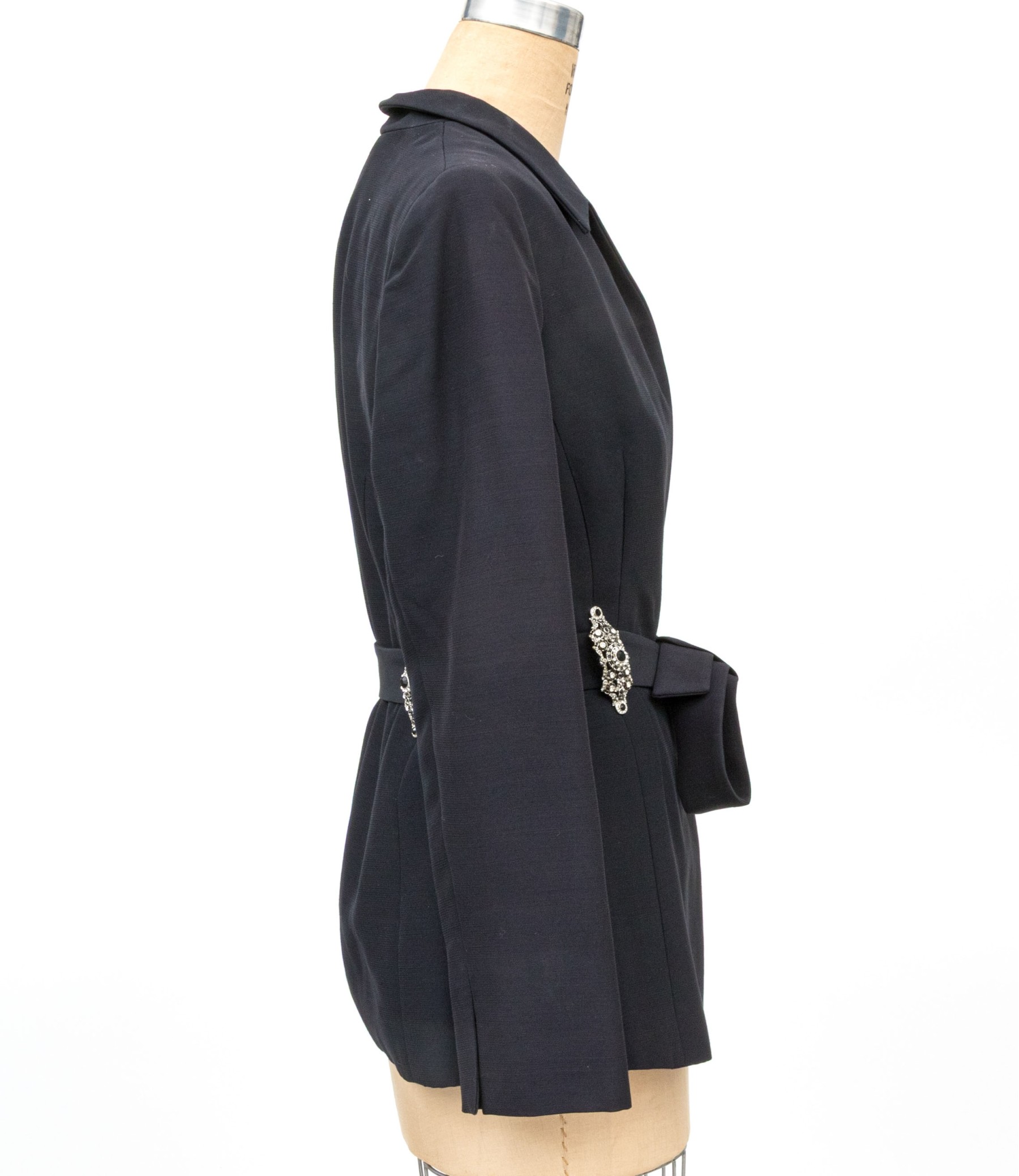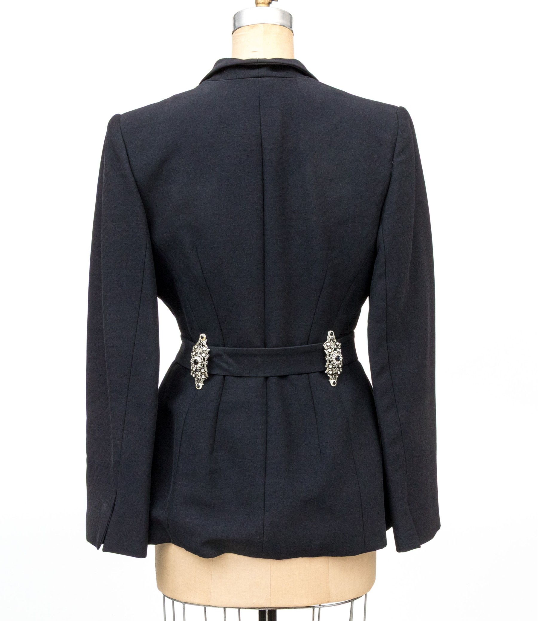 Badgley Mischka striking bejeweled black belted suit, size 10